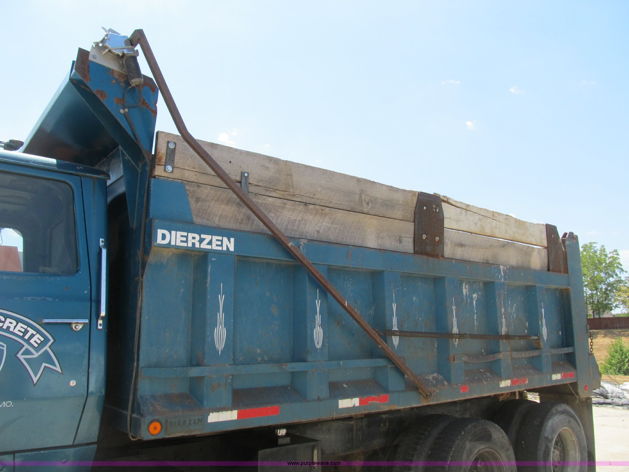 Purple Wave is selling a used Construction Dump Truck in Missouri. This item is a 1986 Ford LT9000 tandem axle dump truck with the following: 225,909 miles on odometer, 2,713 hours on meter, Cummins Power Torque 240 14.0L L6 diesel engine, 240 HP, Serial 11334707, Road Ranger manual transmission, Model RTO-1160 7LL, Differential lockout, Heater, Classic Aire air suspension seat, Dierzen 10 steel dump bed, 16'L x 64"H, Side boards, Air end gate, Exterior visor, Chrome bumper, 50 gallon fuel tank, Spring suspension, PTO, Air brakes, Drivers axles, 385/65R22.5 front tires, 11R22.5 rear tires, GVWR 54,000 lbs, Unit# D119
