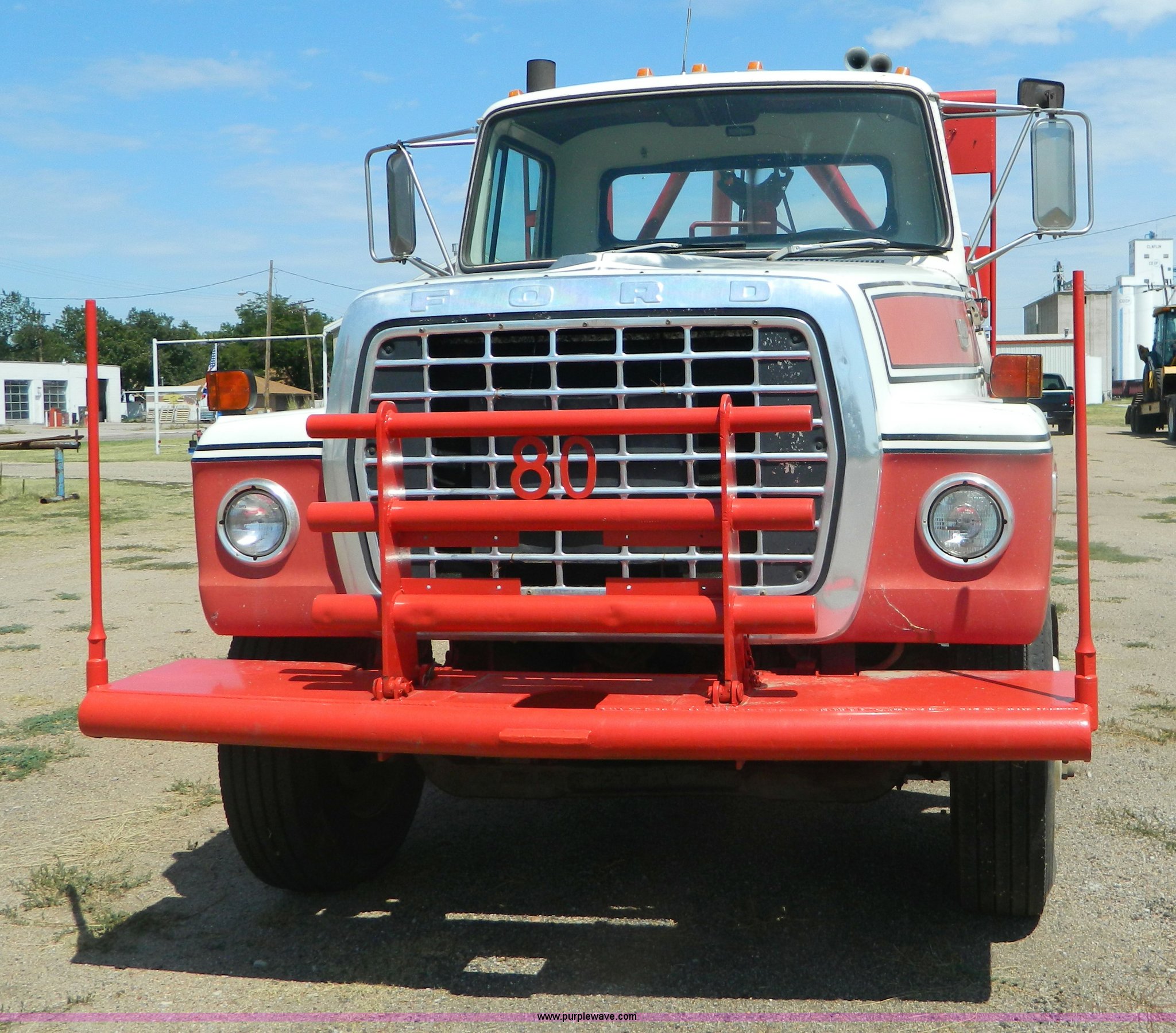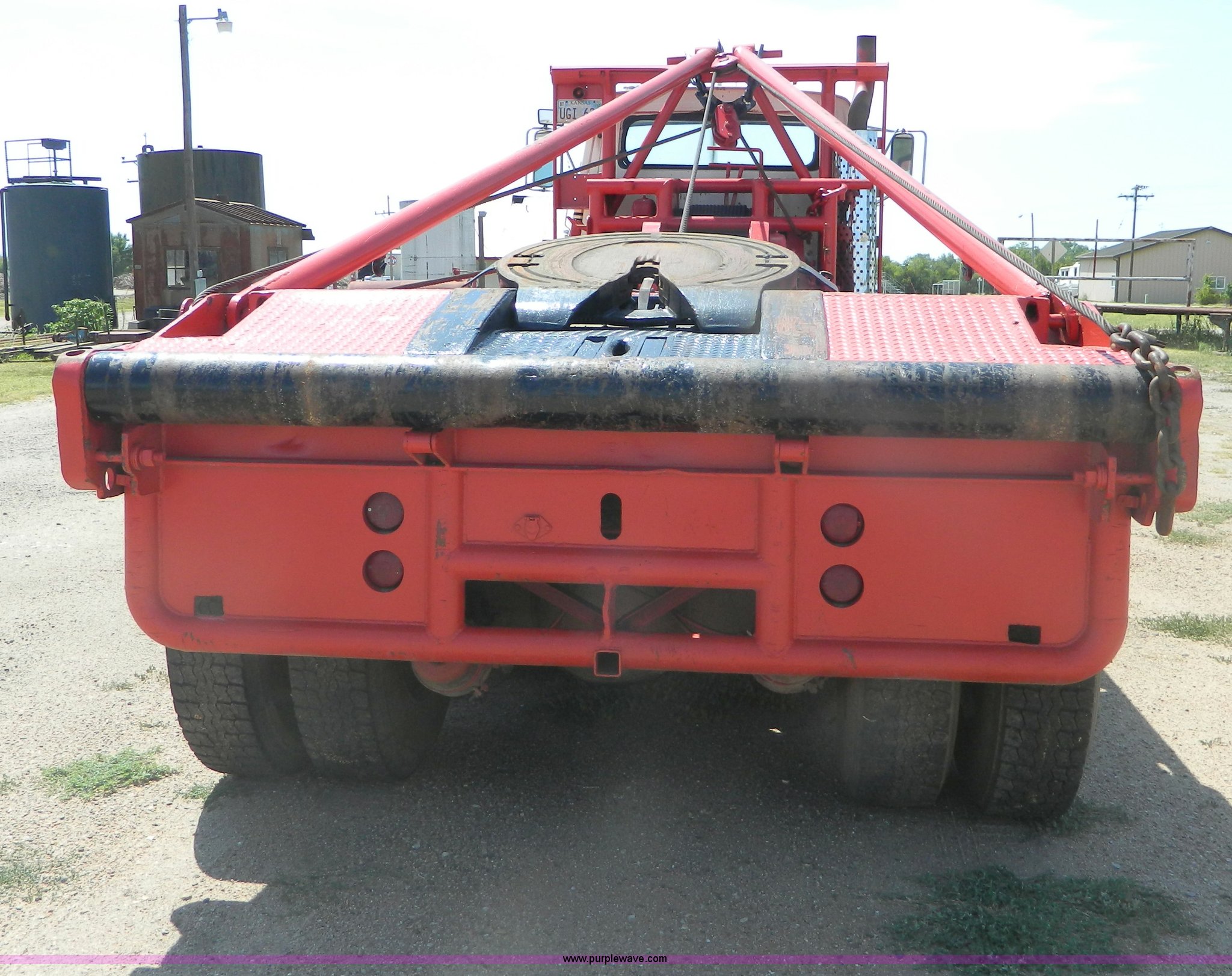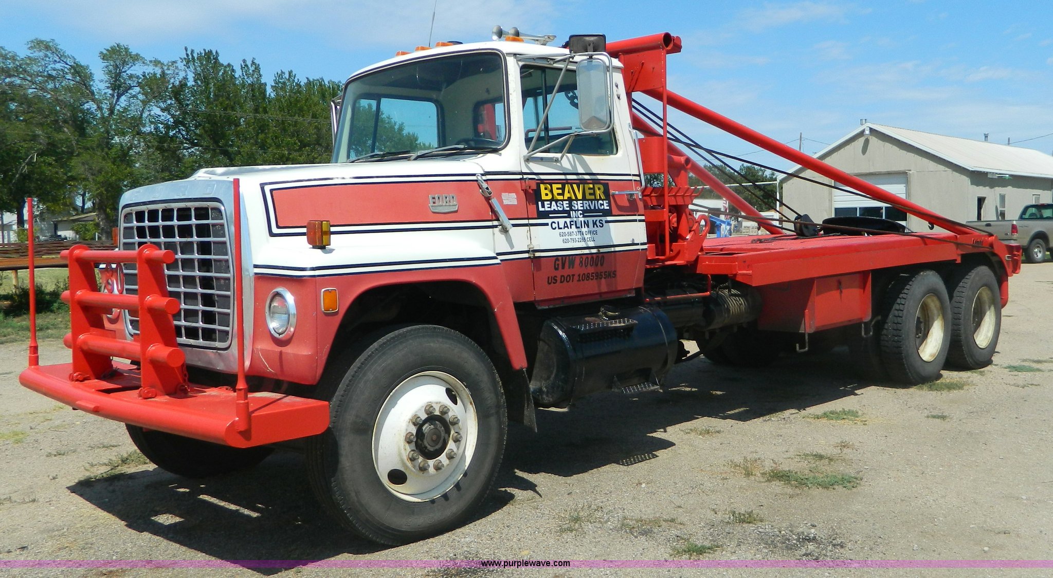 Purple Wave is selling a used Rollback or Tow Truck in Kansas. This item is a 1979 Ford 9000 winch truck with the following: 459,214 miles on odometer, Detroit 8V71T diesel engine, Dead cylinder, needs overhauled, Road Ranger 13 speed transmission, Two speed auxiliary transmission, Tulsa 64 and 34 winches, Double framed, 257" wheelbase, 11R24.5 tires, FAWR 12,000 lbs, RAWR 38,000 lbs, Recently replaced rear brakes and drums, Recently replaced springs, bushings, steering box, and 7/8" cable on both winches, Recent repairs documented, Cracked windshield, Decals will be removed