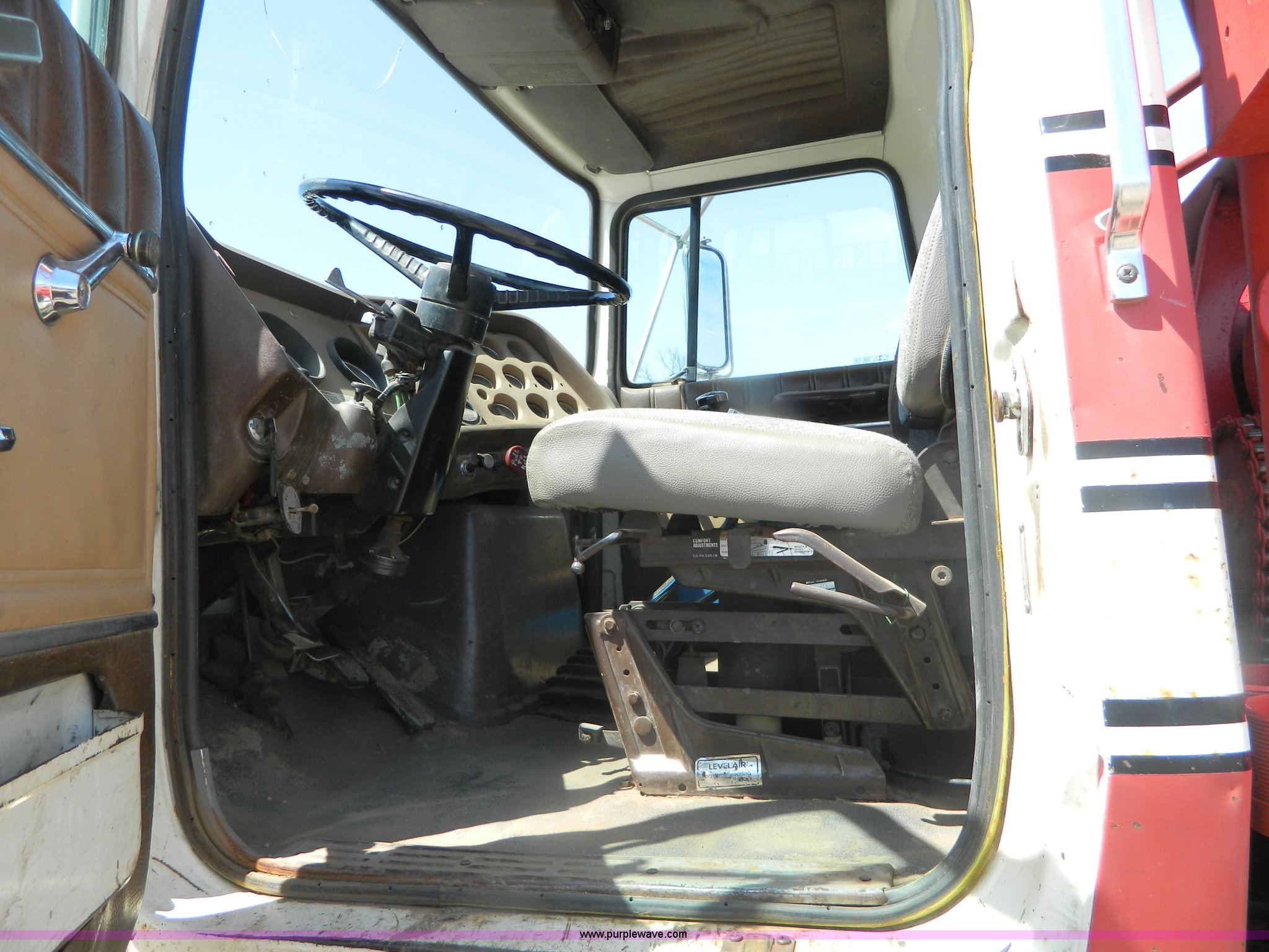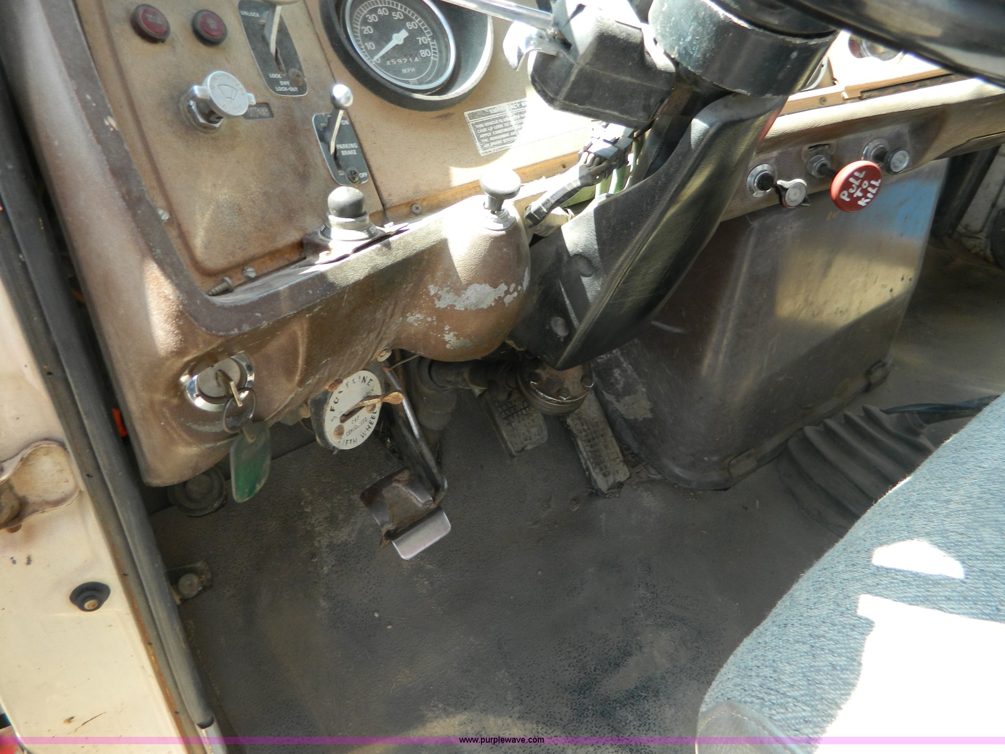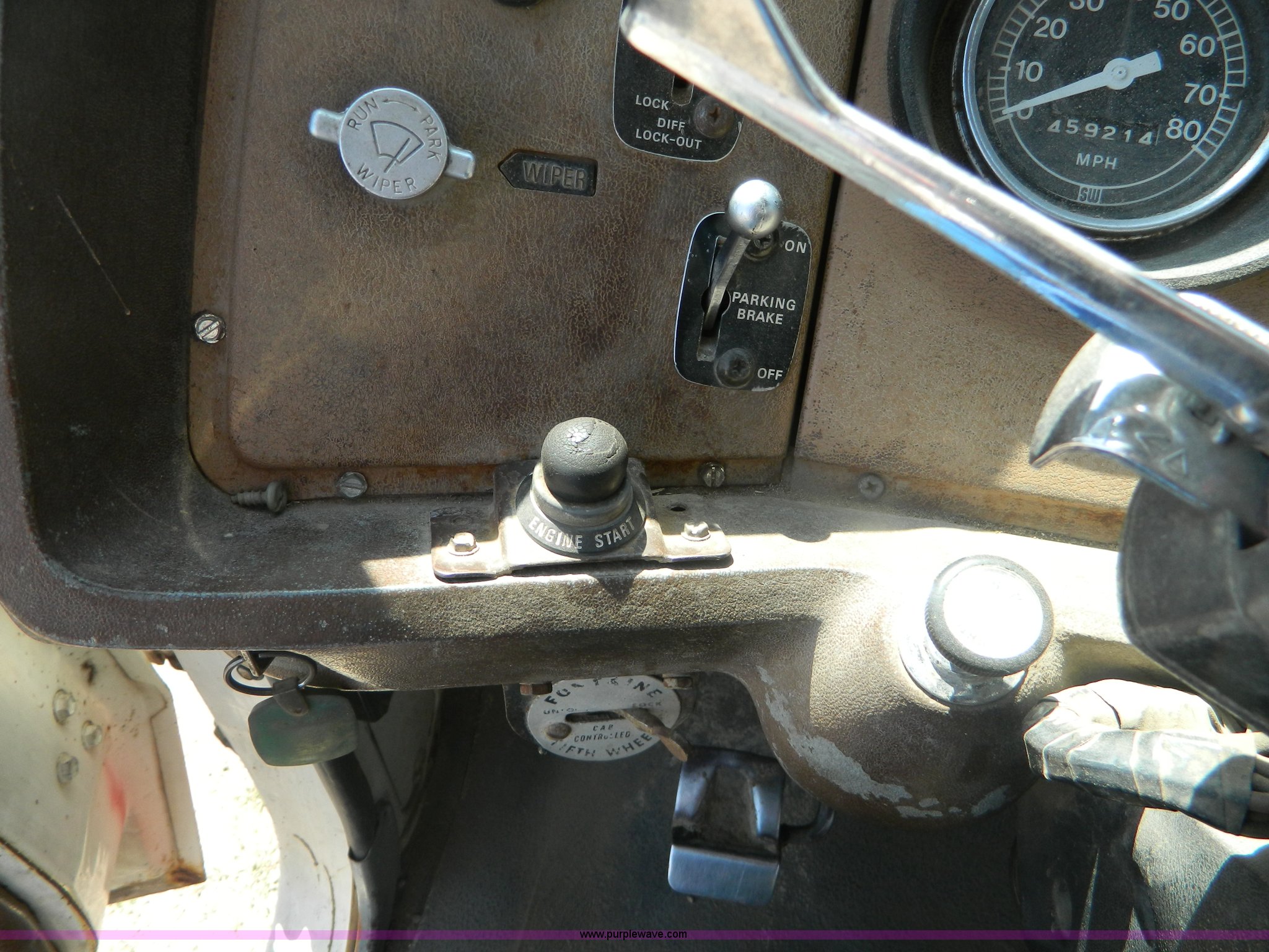Purple Wave is selling a used Rollback or Tow Truck in Kansas. This item is a 1979 Ford 9000 winch truck with the following: 459,214 miles on odometer, Detroit 8V71T diesel engine, Dead cylinder, needs overhauled, Road Ranger 13 speed transmission, Two speed auxiliary transmission, Tulsa 64 and 34 winches, Double framed, 257" wheelbase, 11R24.5 tires, FAWR 12,000 lbs, RAWR 38,000 lbs, Recently replaced rear brakes and drums, Recently replaced springs, bushings, steering box, and 7/8" cable on both winches, Recent repairs documented, Cracked windshield, Decals will be removed