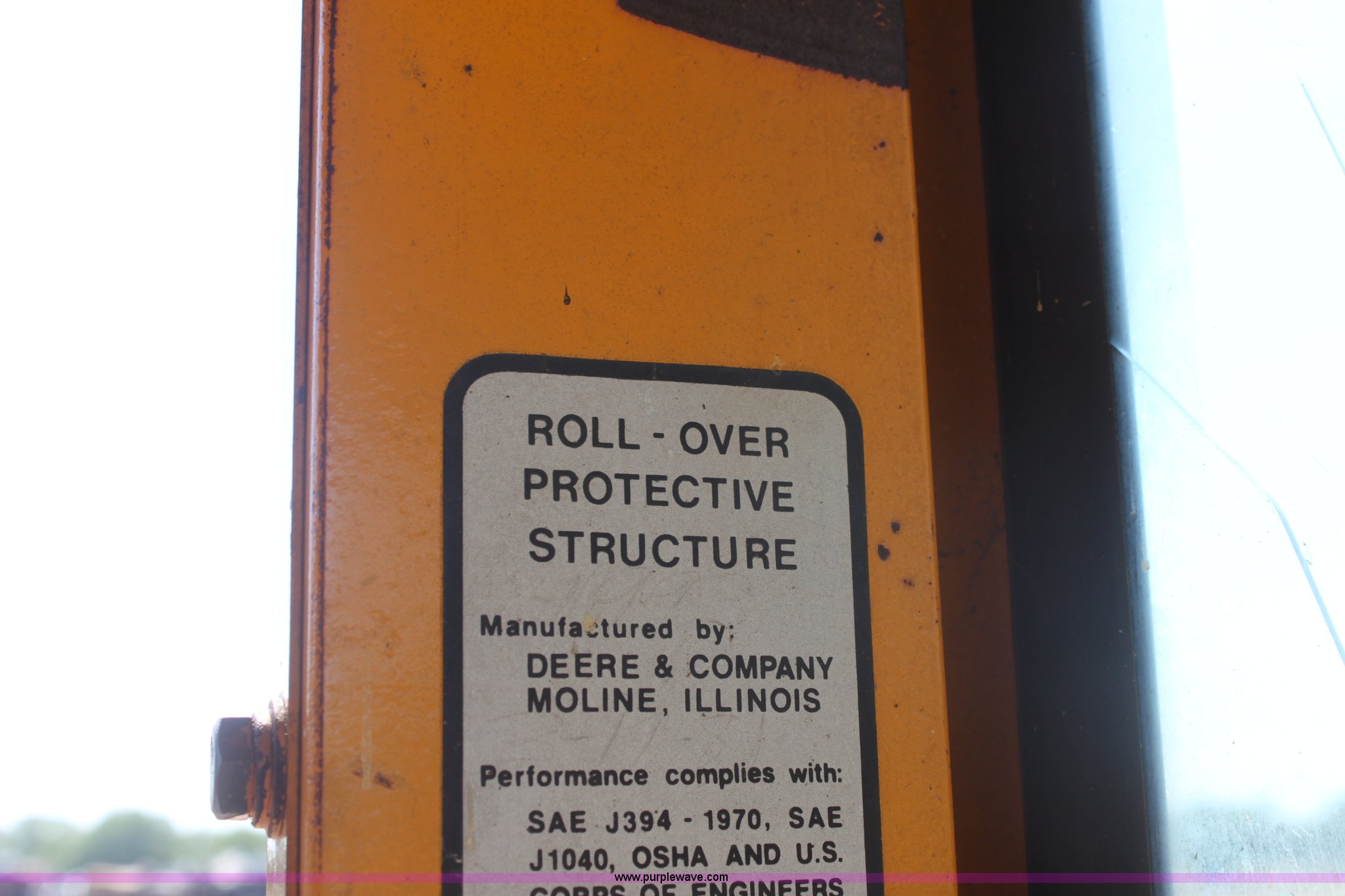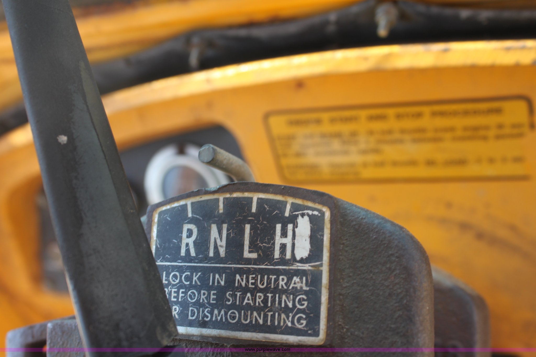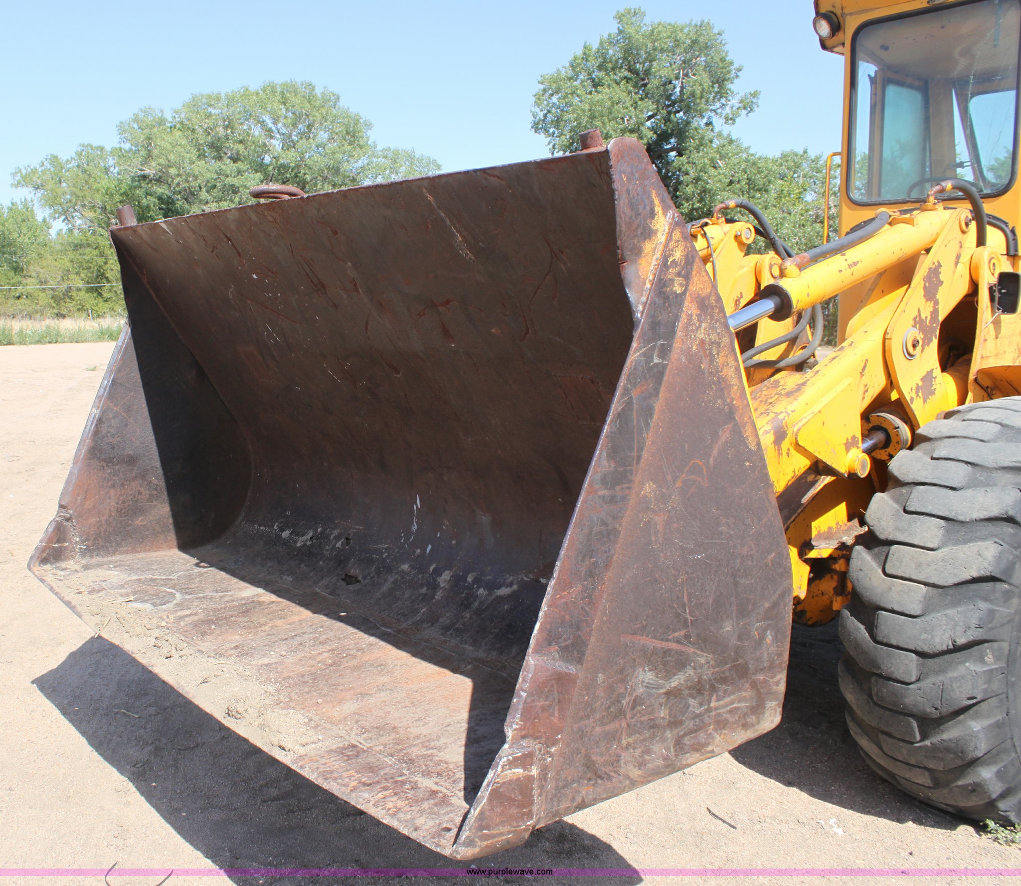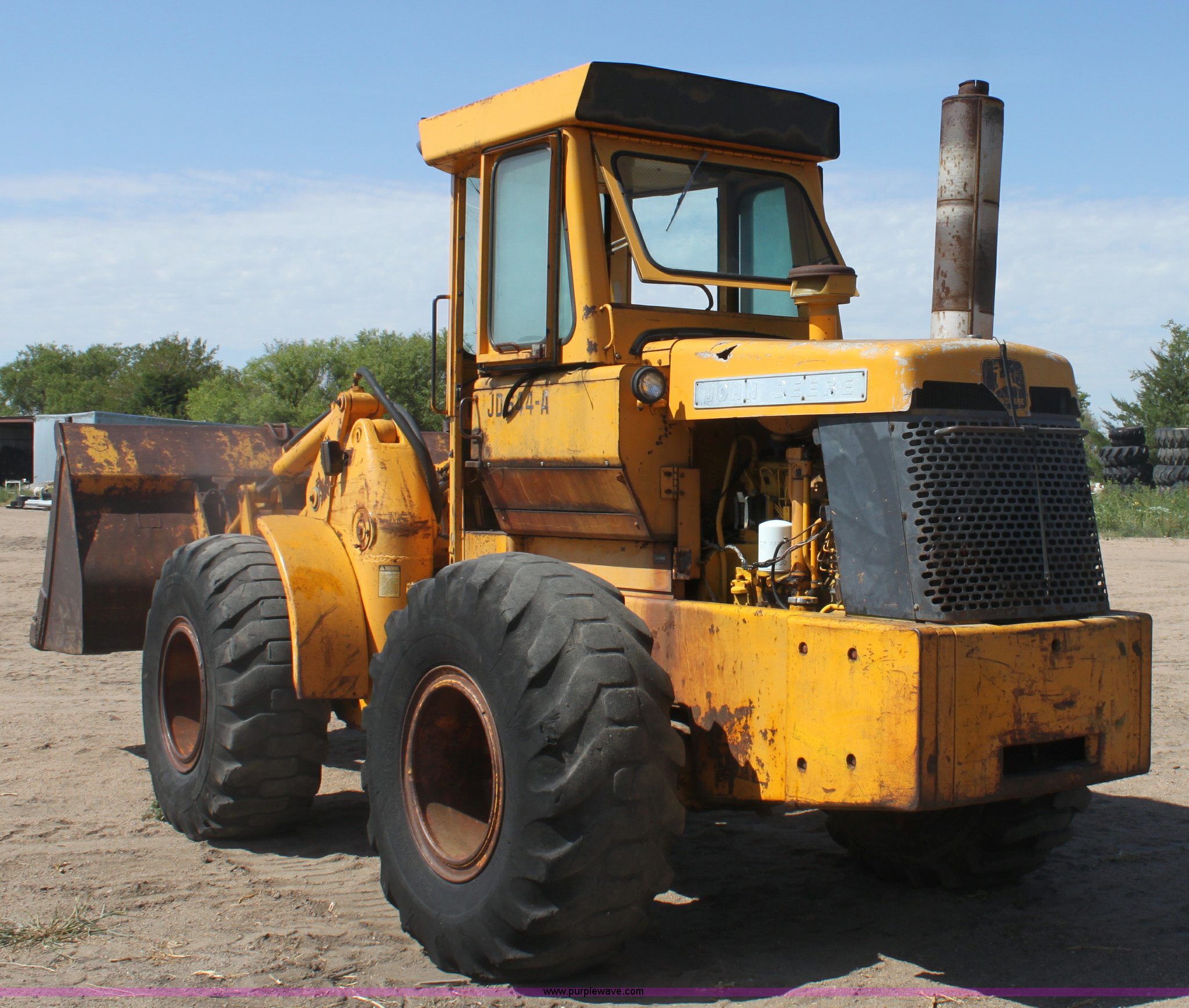 Purple Wave is selling a used Wheel Loader in Kansas. This item is a 1971 John Deere 644A wheel loader with the following: 6,873 hours on meter, John Deere six cylinder diesel engine, 131 HP, Manual transmission, 2F-1R gears, Enclosed cab, Heat, Wobble stick loader control, 3 cu. yd. bucket, Front work lights, Rear weights, Rear pin hitch, 20.5-25 tires, 27,095 lbs. base operating weight, Cracked windshield, Serial 139981T