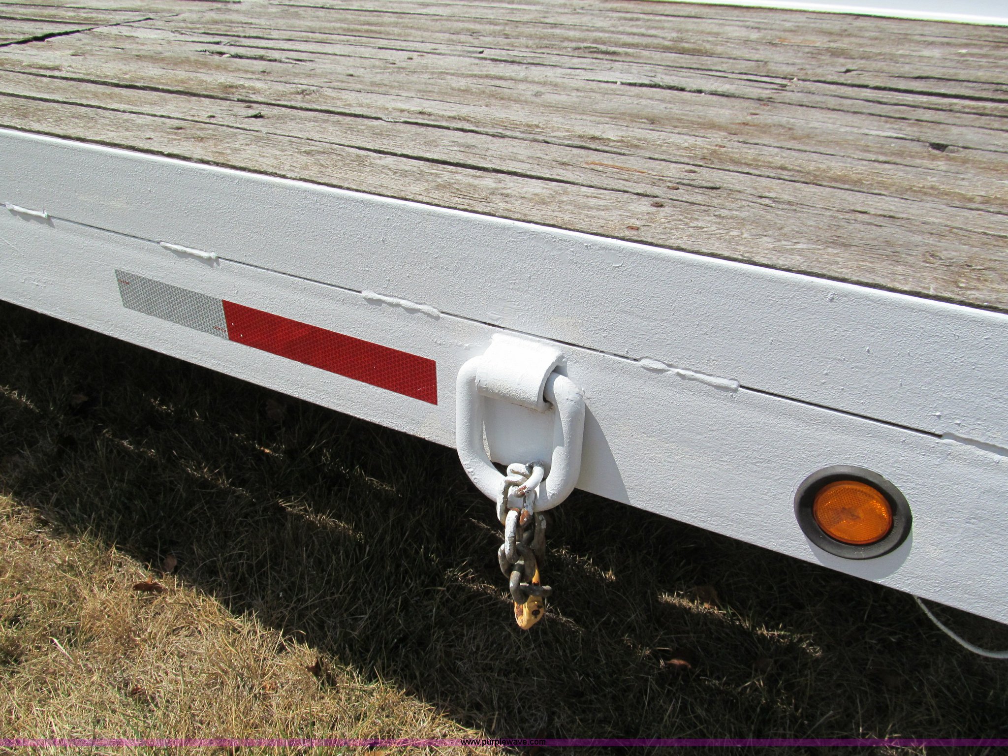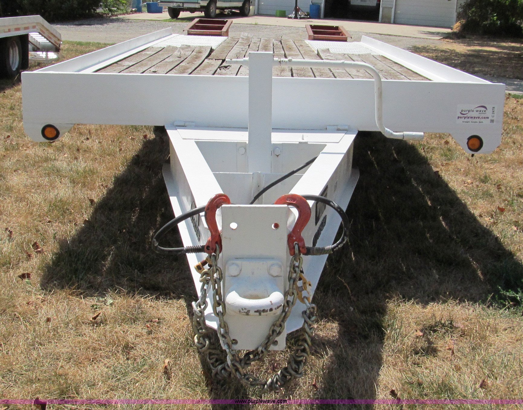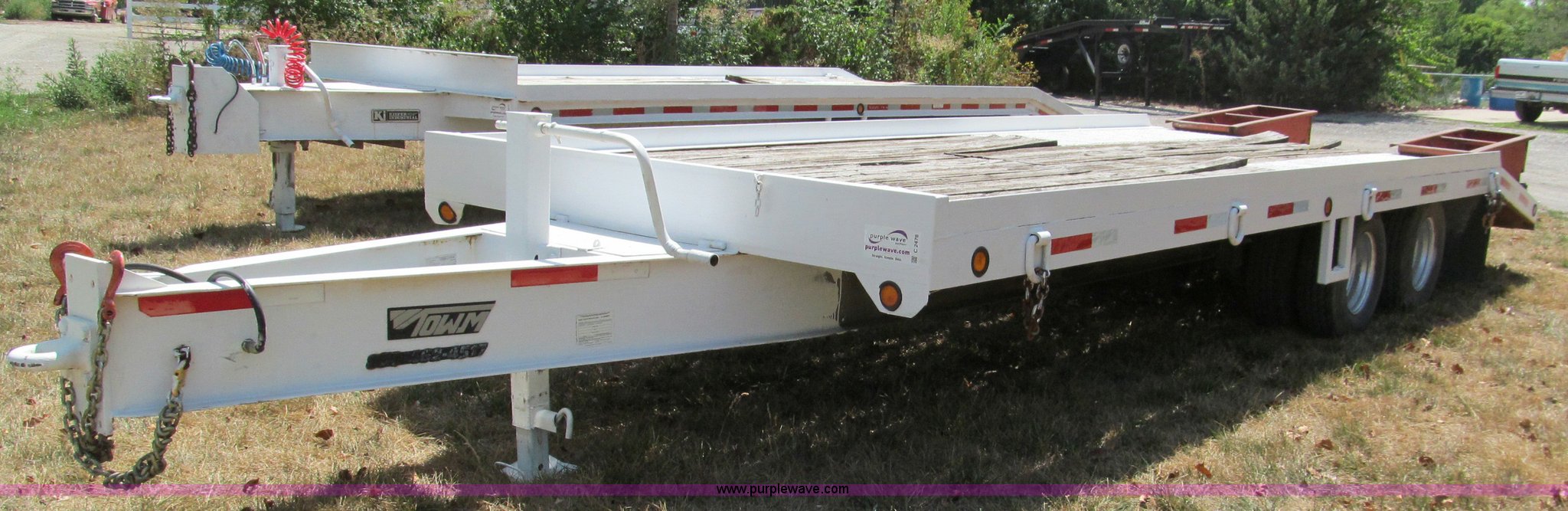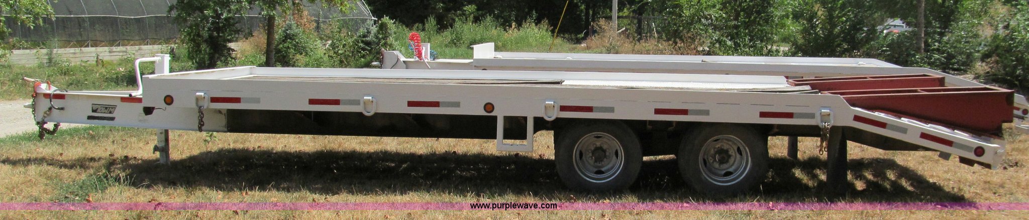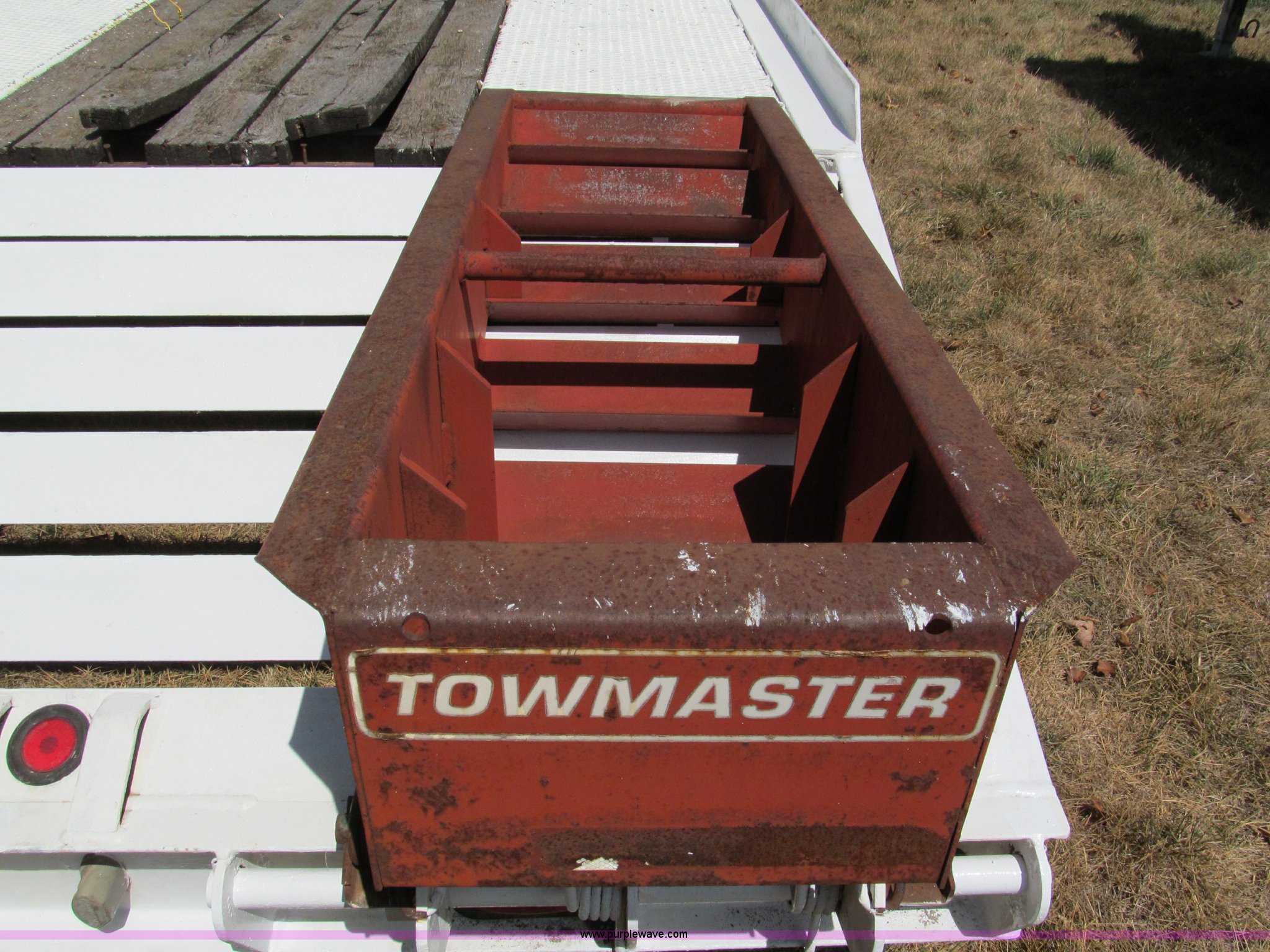 Purple Wave is selling a used Equip. Trailer in Missouri. This item is a 1997 Towmaster T20 equipment trailer with the following: 20' flat, 4' dovetail, (2) 48" fold down ramps, Spring suspension, Adjustable height pintle hitch, D-rings, Wood floor, Steel over wheels, Single tongue jack, Dual 10,000 lb axles, 9.50-16.5 tires, 10 ply