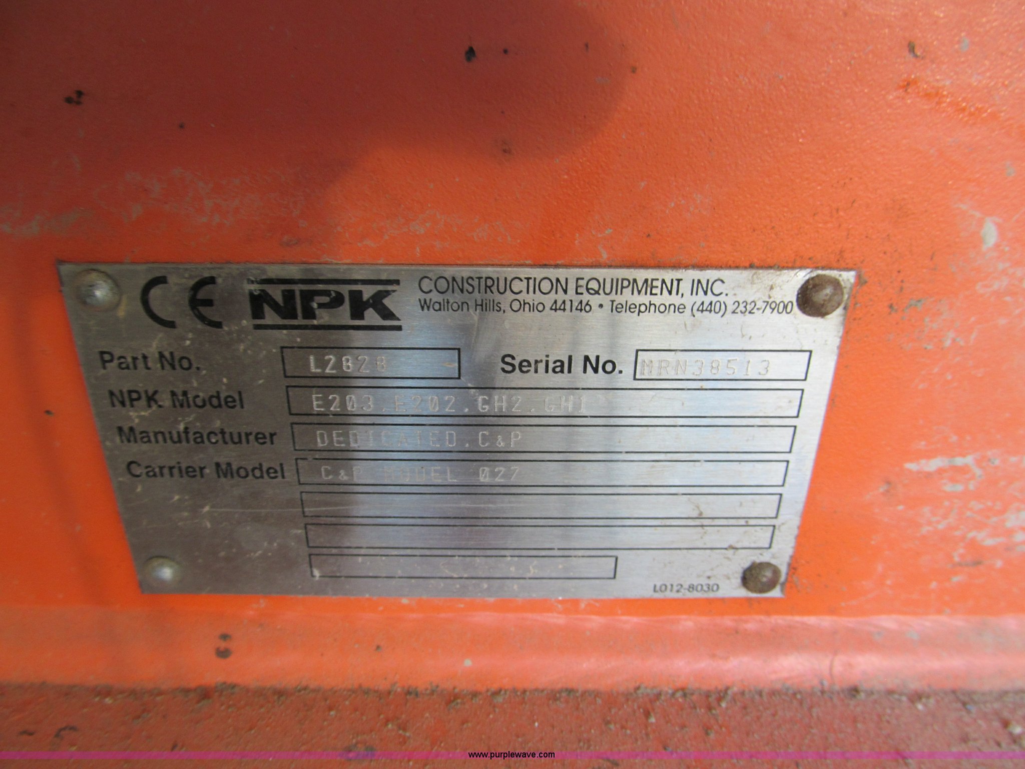 Purple Wave is selling a used Excavator Attach. in Missouri. This item is a NPK quick attach with the following: Model E203.E202.GHZ.GHI, C&P carrier 027, Serial MRN.38513