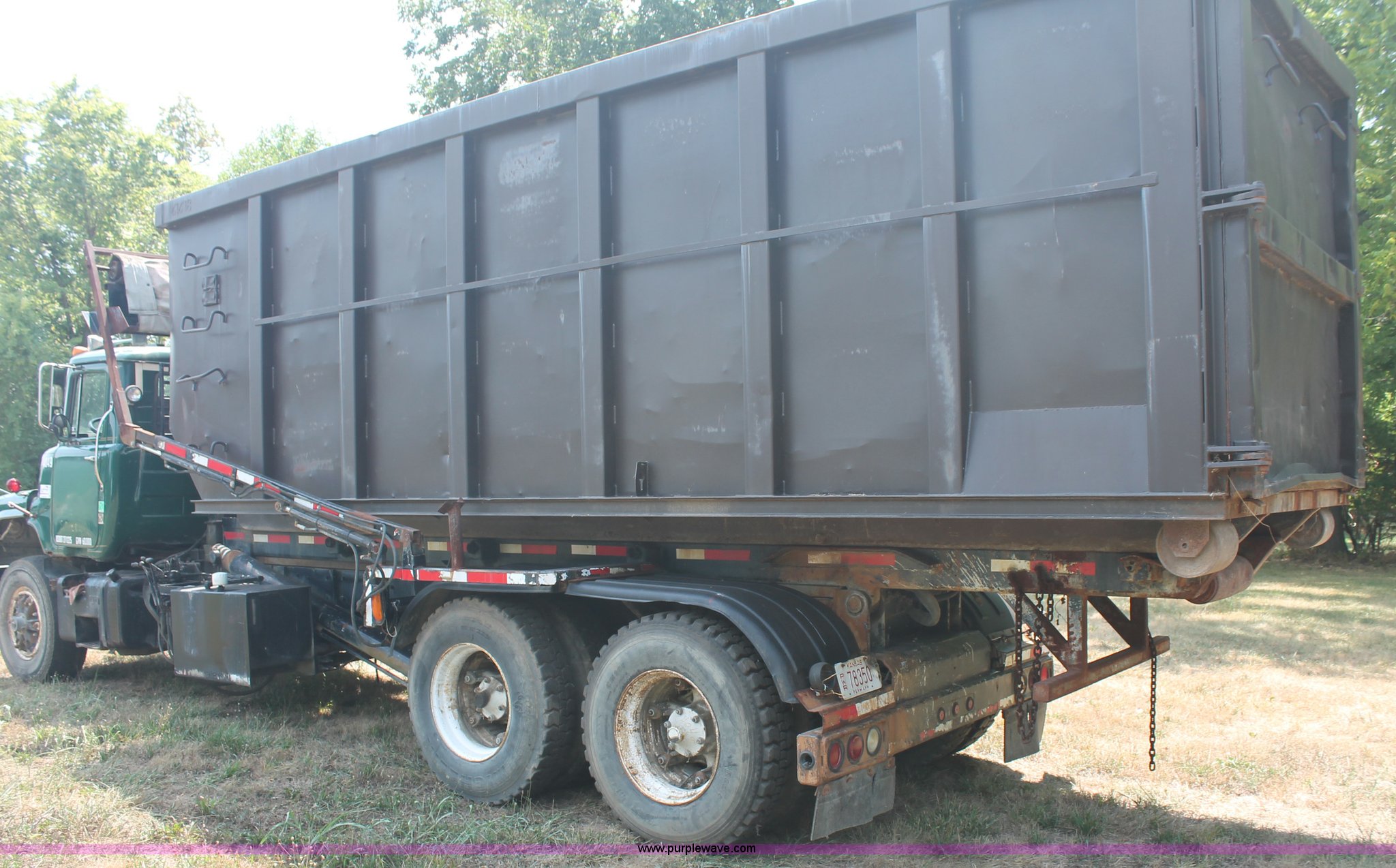 1985 Mack DM685S roll off truck. 147,409 miles on odometer, 1,025 engine hours on meter, 3,833 electronic hours on meter, Mack E6 11.0L six cylinder diesel engine, Compact 12 speed manual transmission, Twin screw, AC and heat, AM/FM/cassette, 22' hydraulic roll off bed Cab and exterior controls, Inside/outside rail, Hydraulic tarp, Quick fill hydraulic tank, Reeving cylinders, Recently replaced cables, Dual rams, single stage, Block heater, Dual fuel tanks 100 and 50 gallon tanks, Poly fenders, Tow hooks, Mack Camelback suspension, PTO, Air brakes, 240" wheelbase, 11R22.5 tires, GVWR 68,000 lbs, Recently replaced turbo and fuel injection pump, Box not included. 1M2B120C6FA055594. View equipment video. Shipping quotes available. 13502 Kentucky Rd. Independence, MO 64050