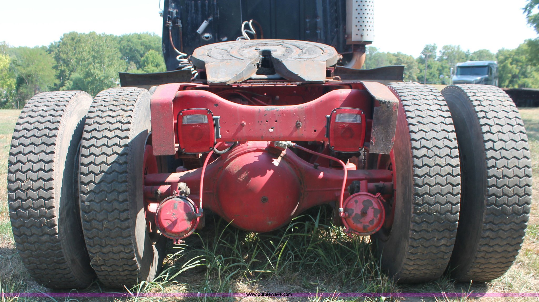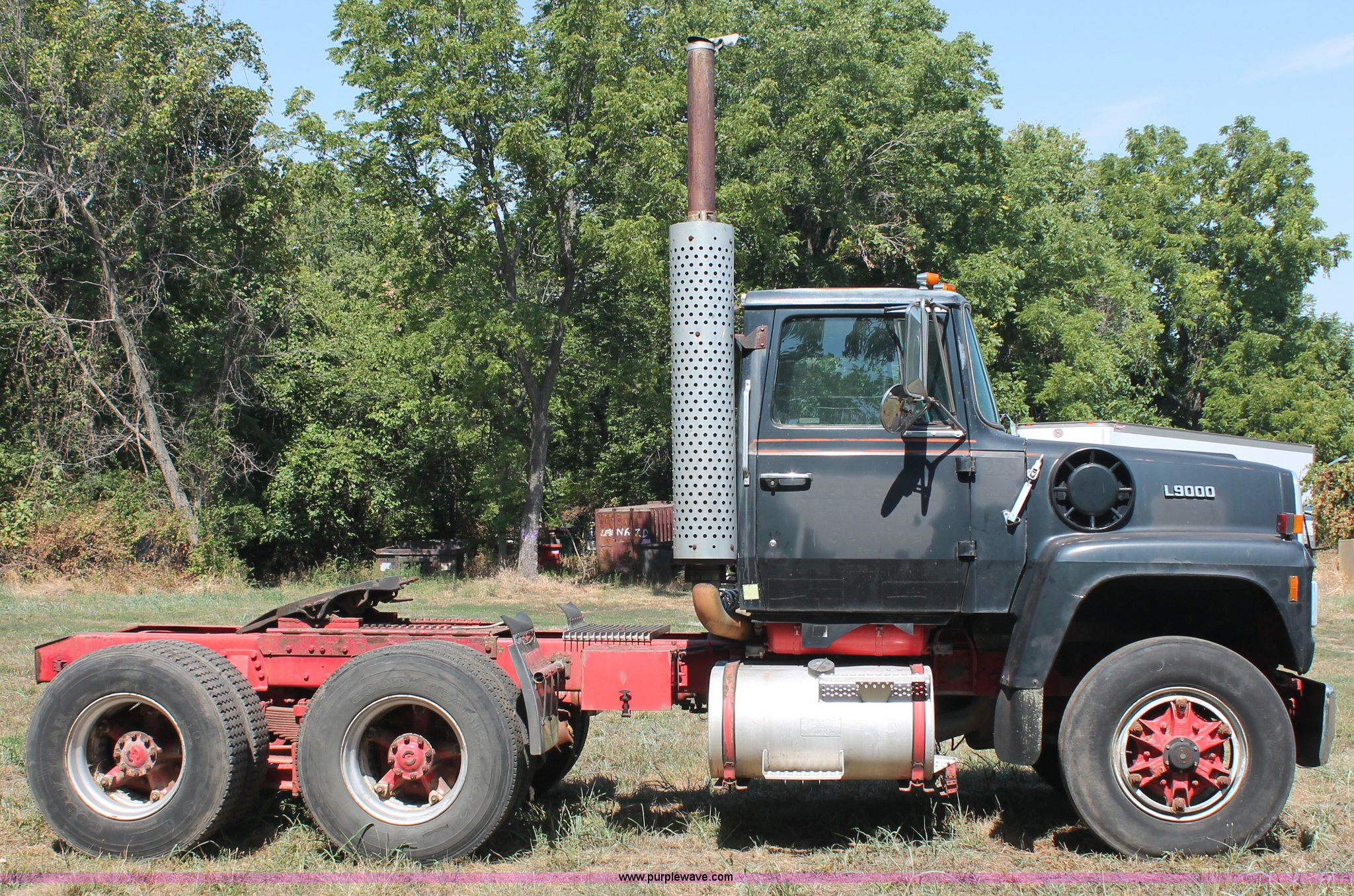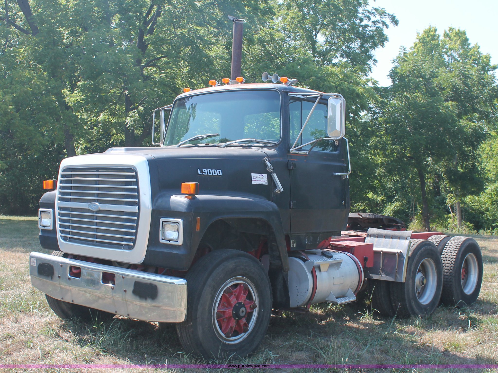 Purple Wave is selling a used Truck Tractor in Missouri. This item is a 1988 Ford LT9000 semi truck with the following: 88,252 miles on odometer, Cummins 350 N14 14.0L diesel engine, Eaton Fuller manual transmission, Twin screw, Differential lock, AC and heat, Air ride seat, Throttle lock, Dual 100 gallon fuel tanks, Single rear exhaust stack, Steel deck plate, Aluminum quarter fenders, PTO, Hendrickson suspension, Air brakes, Sliding fifth wheel, 11R22.5 tires, 162" wheelbase, GVWR 50,000 lbs