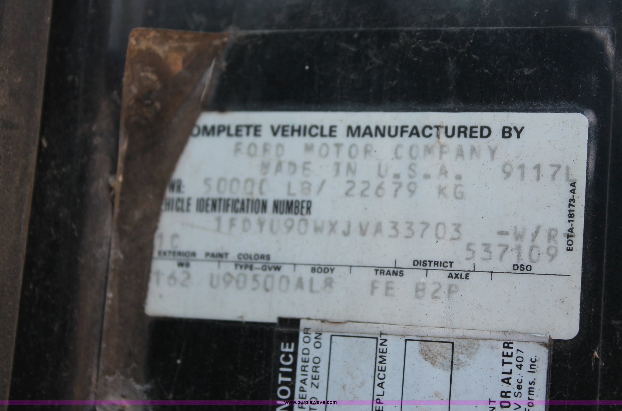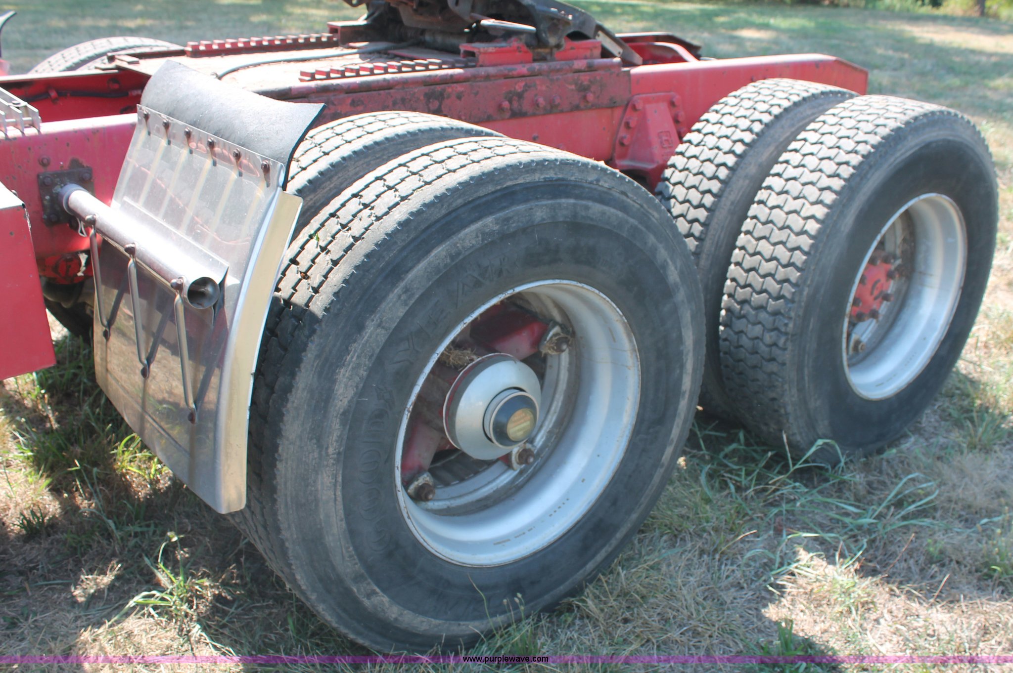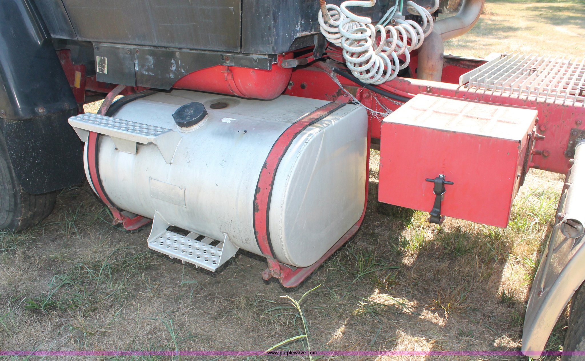 Purple Wave is selling a used Truck Tractor in Missouri. This item is a 1988 Ford LT9000 semi truck with the following: 88,252 miles on odometer, Cummins 350 N14 14.0L diesel engine, Eaton Fuller manual transmission, Twin screw, Differential lock, AC and heat, Air ride seat, Throttle lock, Dual 100 gallon fuel tanks, Single rear exhaust stack, Steel deck plate, Aluminum quarter fenders, PTO, Hendrickson suspension, Air brakes, Sliding fifth wheel, 11R22.5 tires, 162" wheelbase, GVWR 50,000 lbs