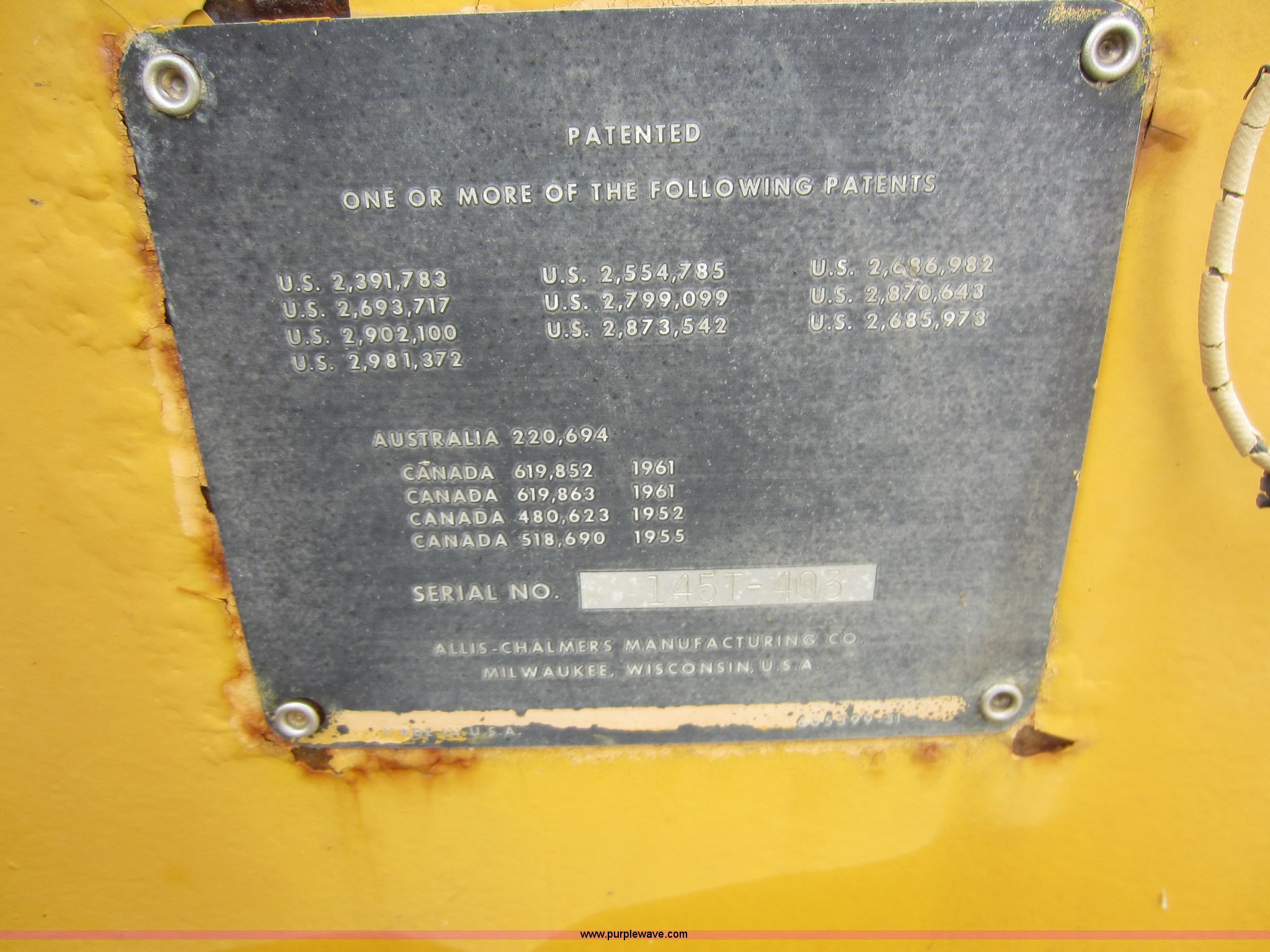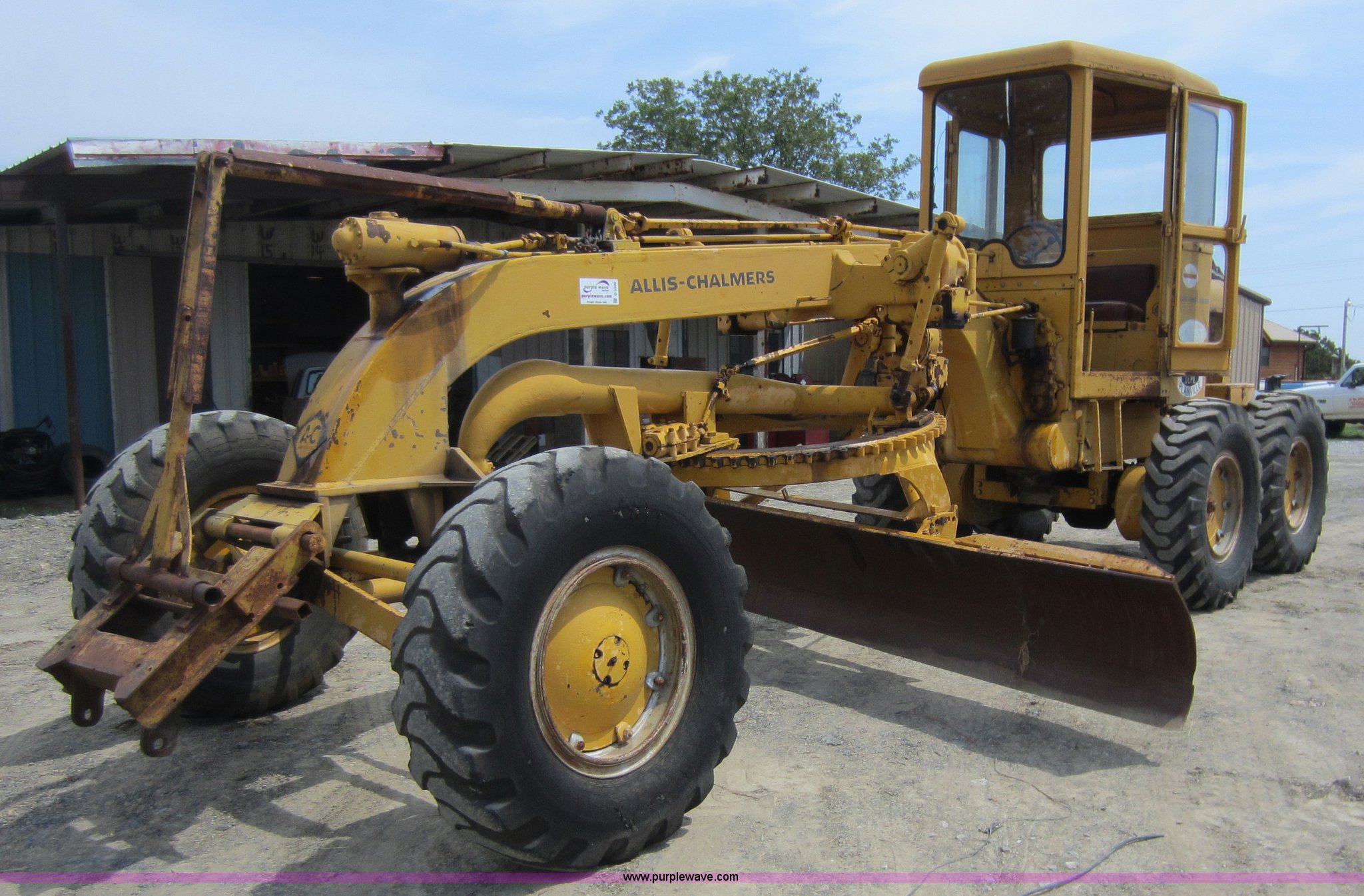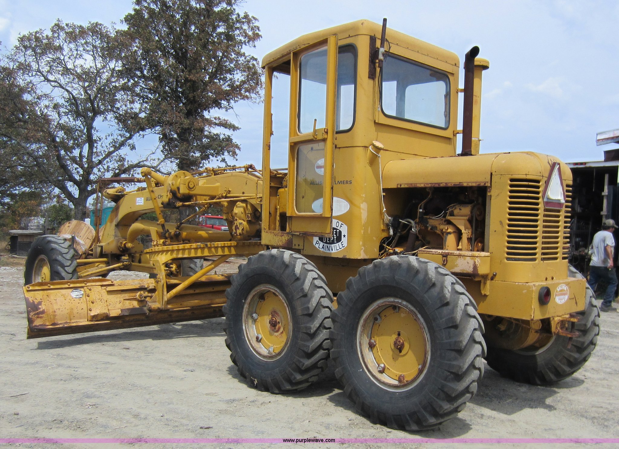 Purple Wave is selling a used Motor Grader in Oklahoma. This item is a 1962 Allis-Chalmers 145T motor grader with the following: 6,871 hours on meter, Allis-Chalmers 7000 four cylinder diesel engine, 105 HP, Direct-drive transmission, 6F-3R gears, Four wheel drive, Heat, Rigid frame, 14'L moldboard, Tip control, Side shift, 13.00-24 front tires, 13.00-24TG rear tires, 21,640 lbs. base operating weight, Serial 145T-403