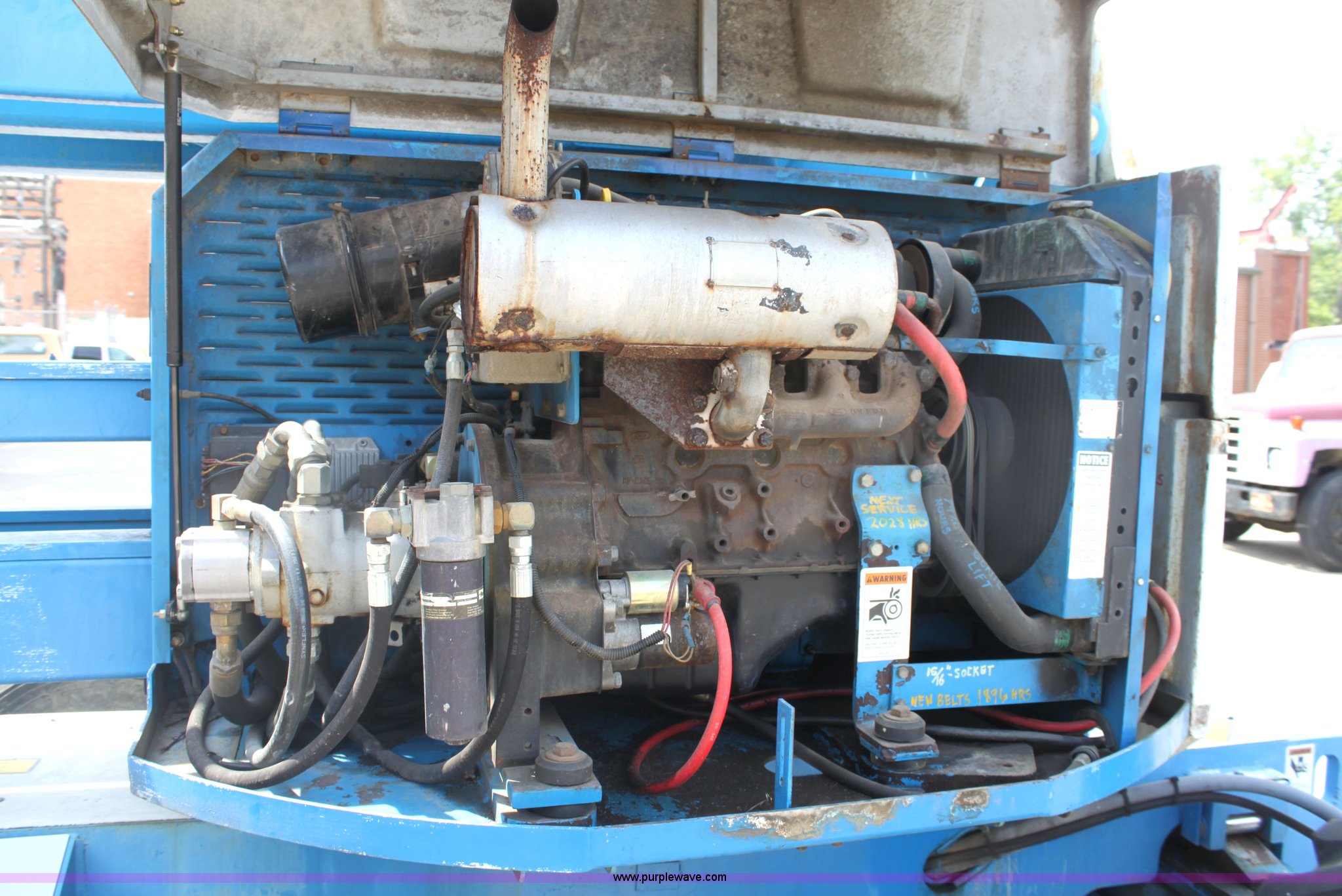 Purple Wave is selling a used Boom Lift in Kansas. This item is a 1994 Genie Z-60/34 boom lift with the following: 1,947 hours on meter, Four four cylinder gas engine, LSG-423, Four wheel drive, 60' max platform height, 34' max platform reach, Two occupant platform capacity, 94" x 34" basket, 8'4"H transport, Ground and platform controls, 15x19.5NHS tires, 22,055 lbs. base operating weight, Turret motor leaking oil, Short in upper boom control cable, Small leak on rear stabilizer cylinder, Serial 314
