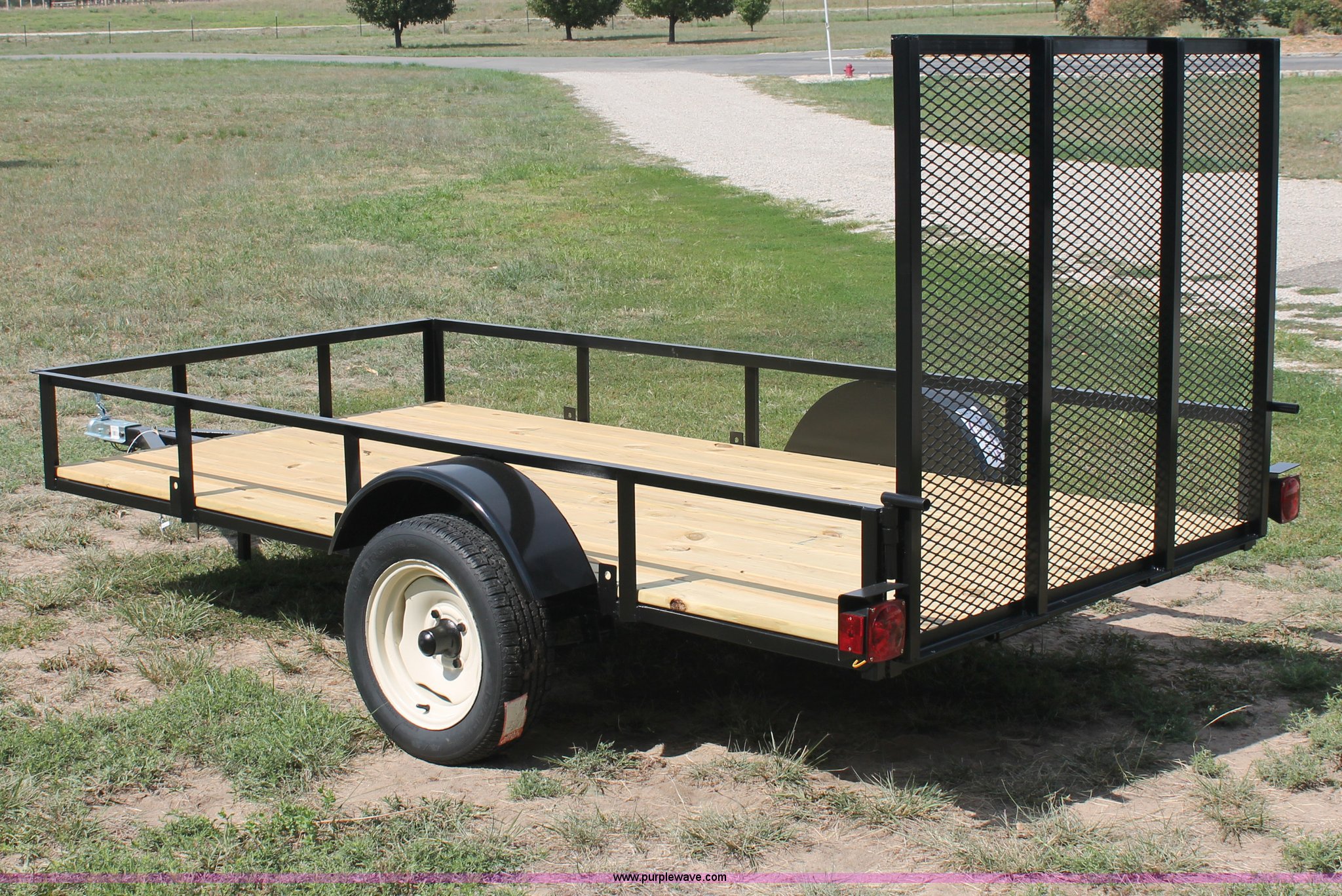 Purple Wave is selling a used Car or Utility Trailer in Kansas. This item is a 2012 custom 5 x 10 utility trailer with the following: Unused, 4'H end gate, 2" ball hitch, Pressure treated lumber, 185/75R14 tires, New hitch and lights