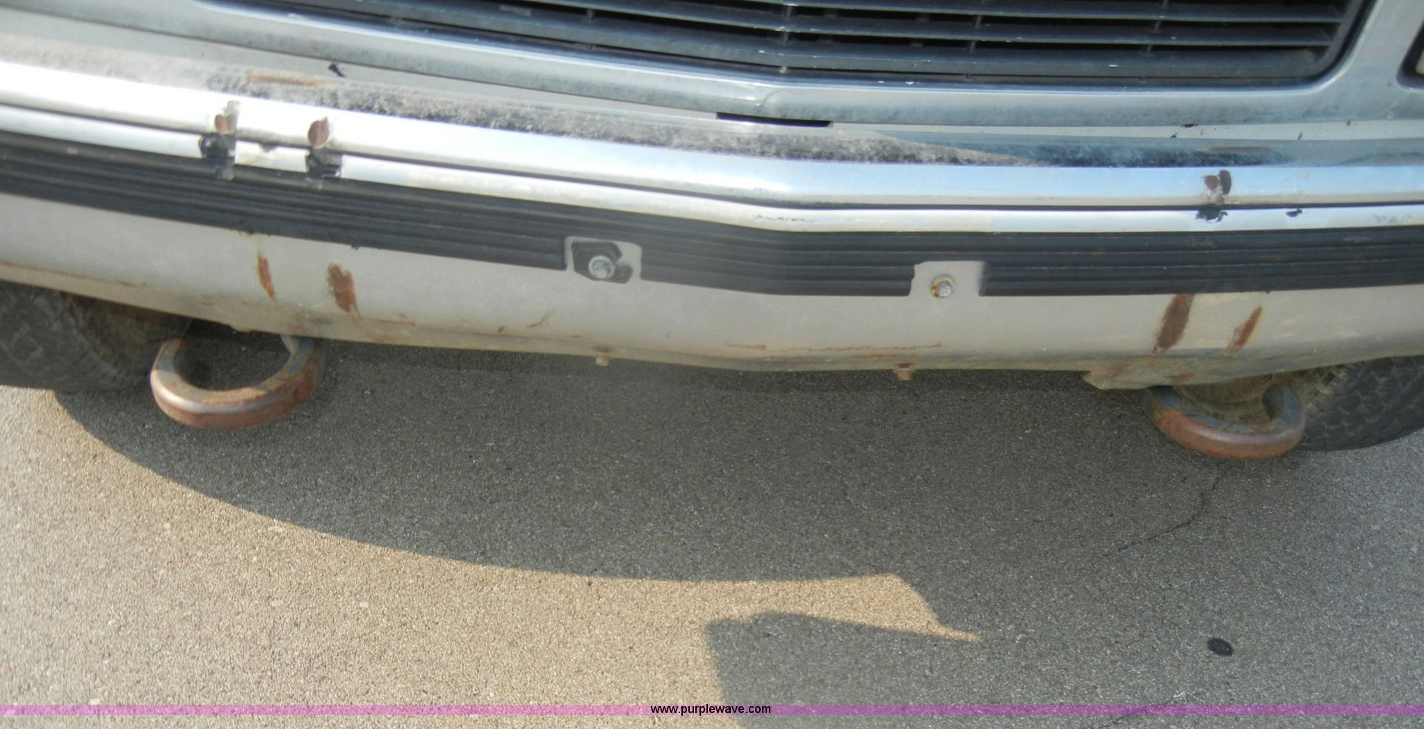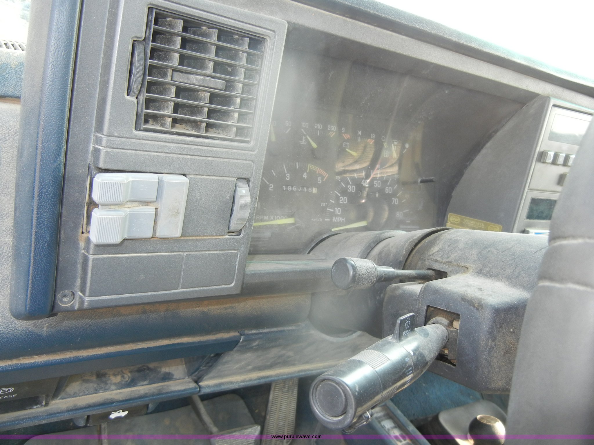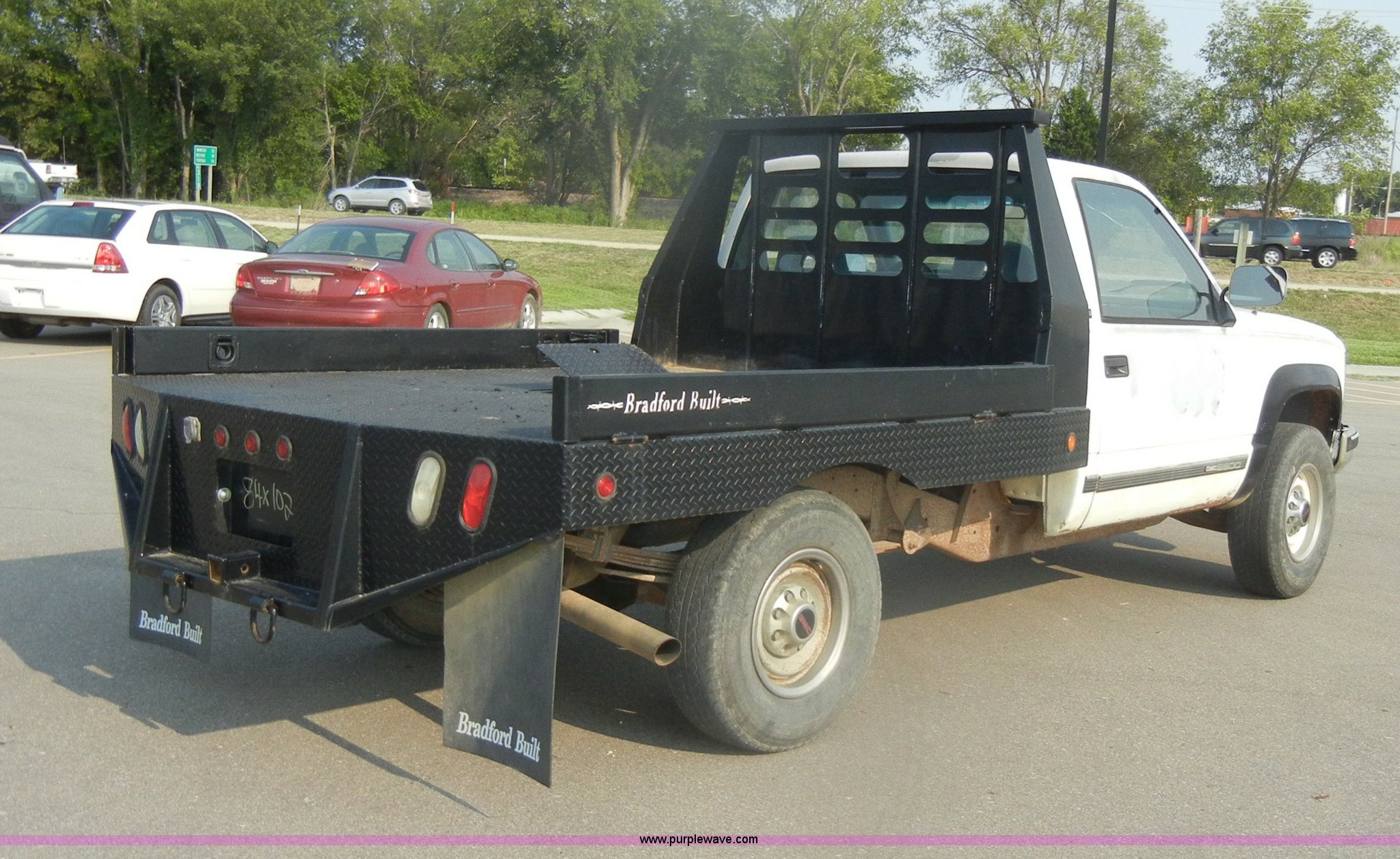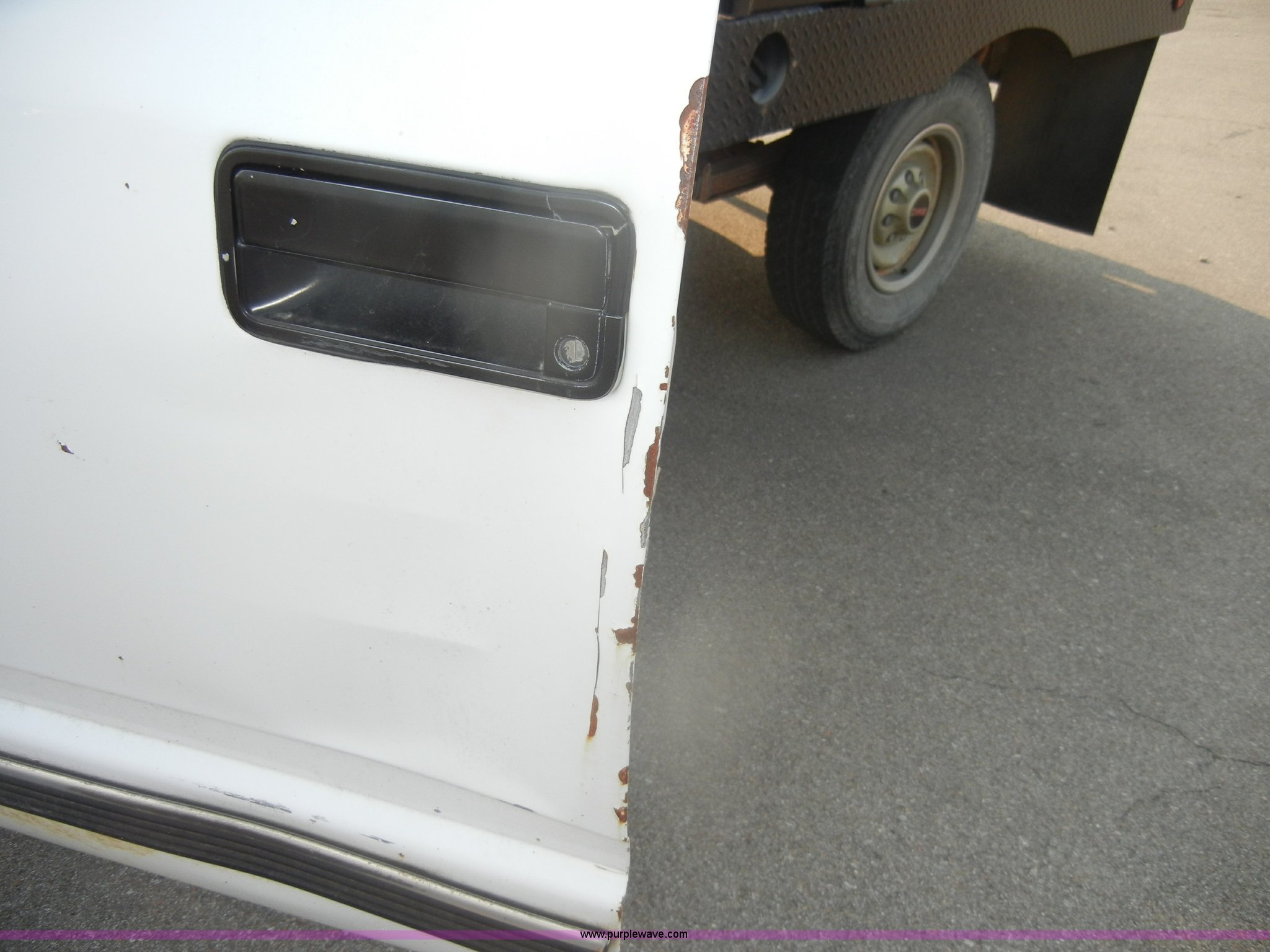 Purple Wave is selling a used Passenger Vehicle in Kansas. This item is a 1992 GMC Sierra SLE 2500 HD flatbed pickup truck with the following: 186,716 miles on odometer, 5.7L V8 TBI gas engine, Replaced at 143,000 miles, Five speed manual transmission, Four wheel drive, AC and heat, Tilt, Cruise, AM/FM, Power windows and locks, Cloth interior, Bradford flatbed, 102" x 7', Hide away gooseneck ball, (4) eye hooks, Fold down sides, Front tow hooks, Receiver hitch, Trailer wiring, 235/85R16 tires, Will not idle on its own, Cracked windshield, Interior/exterior cosmetic damage, Paint peeling, Dents and scratches, Rust spots, Passenger side door will not unlock from outside, Engine hood will not unlatch, Weak brakes
