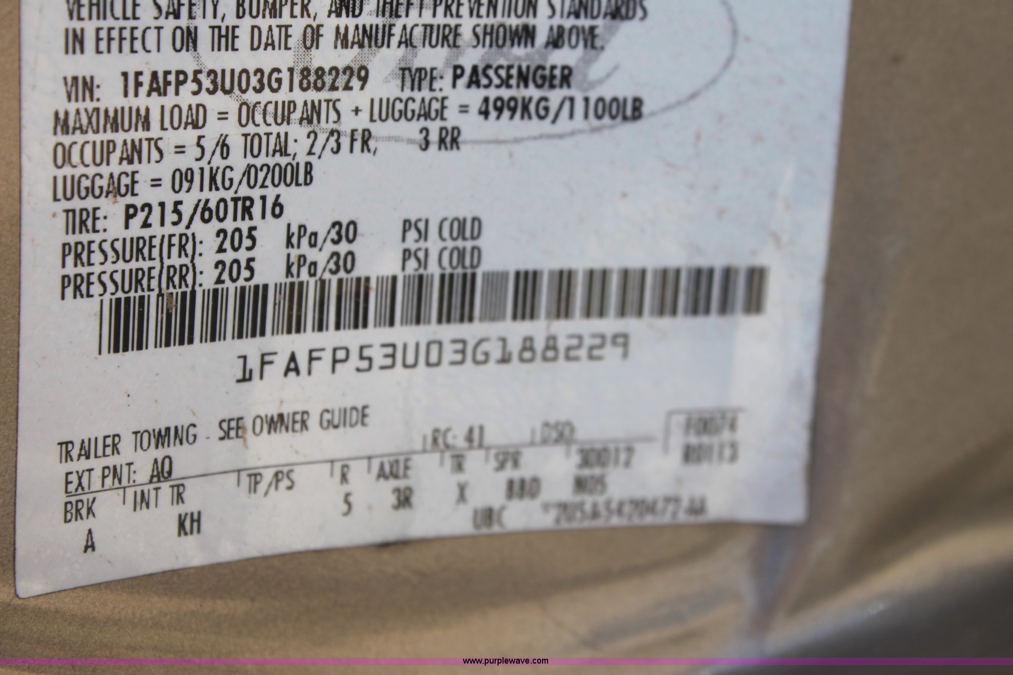 Take a look at this used 2003 Ford Taurus SE being sold on September 6th, 2012 in the SOLD! Thursday September 6 City of Wichita Towed Vehicle Auction made by Ford. Take a look at all of the item information below or take a look at similar auctions for Passenger Vehicles.