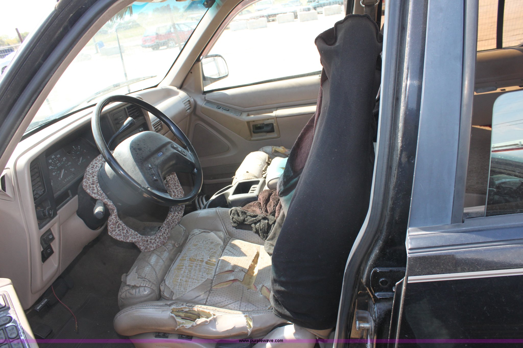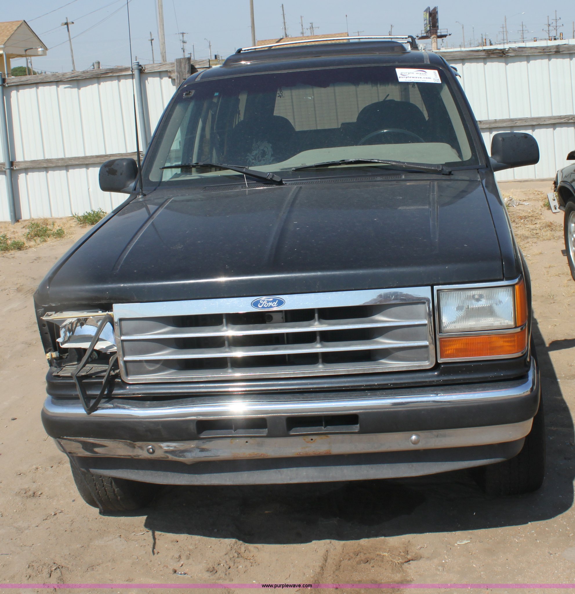 Purple Wave is selling a used Passenger Vehicle in Kansas. This item is a 1994 Ford Explorer XLT SUV with the following: 177,071 miles on odometer, 4.0L V6 MPI engine, Automatic transmission, Four wheel drive, AC and heat, Tilt, Cruise, AM/FM/cassette, Power windows, locks, and mirrors, Leather interior, Sunroof, 235/75R15 tires, Windows are down, Interior/exterior cosmetic damage, Headliner ripped and torn, Damage to passenger side front fender, Must be towed, Case# 12C042375