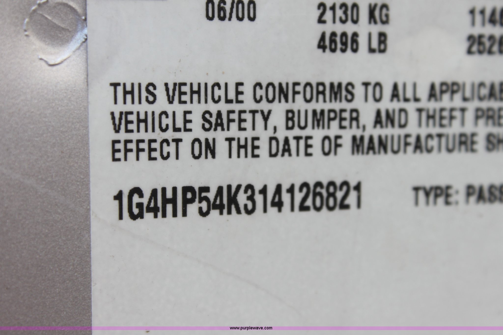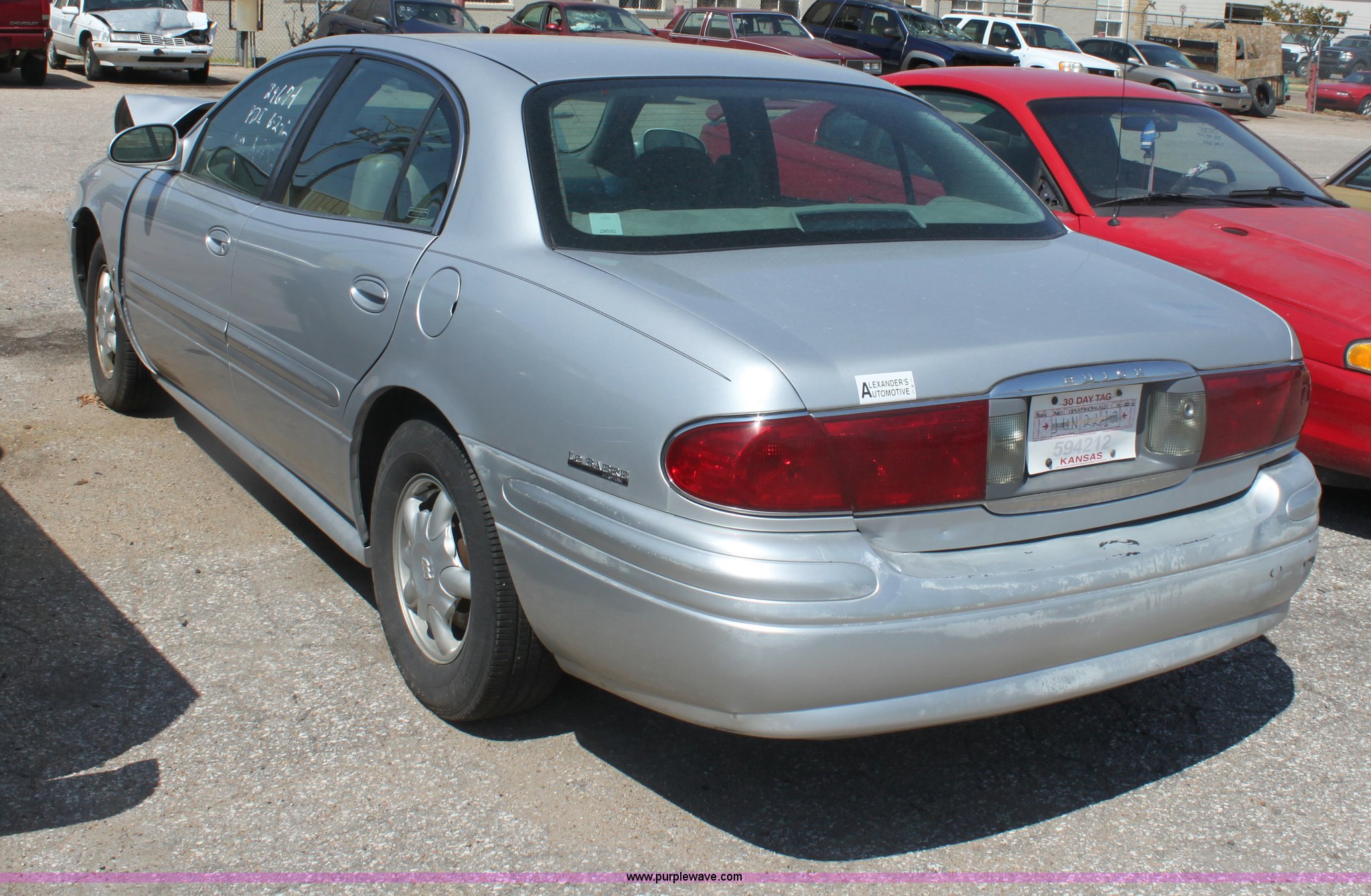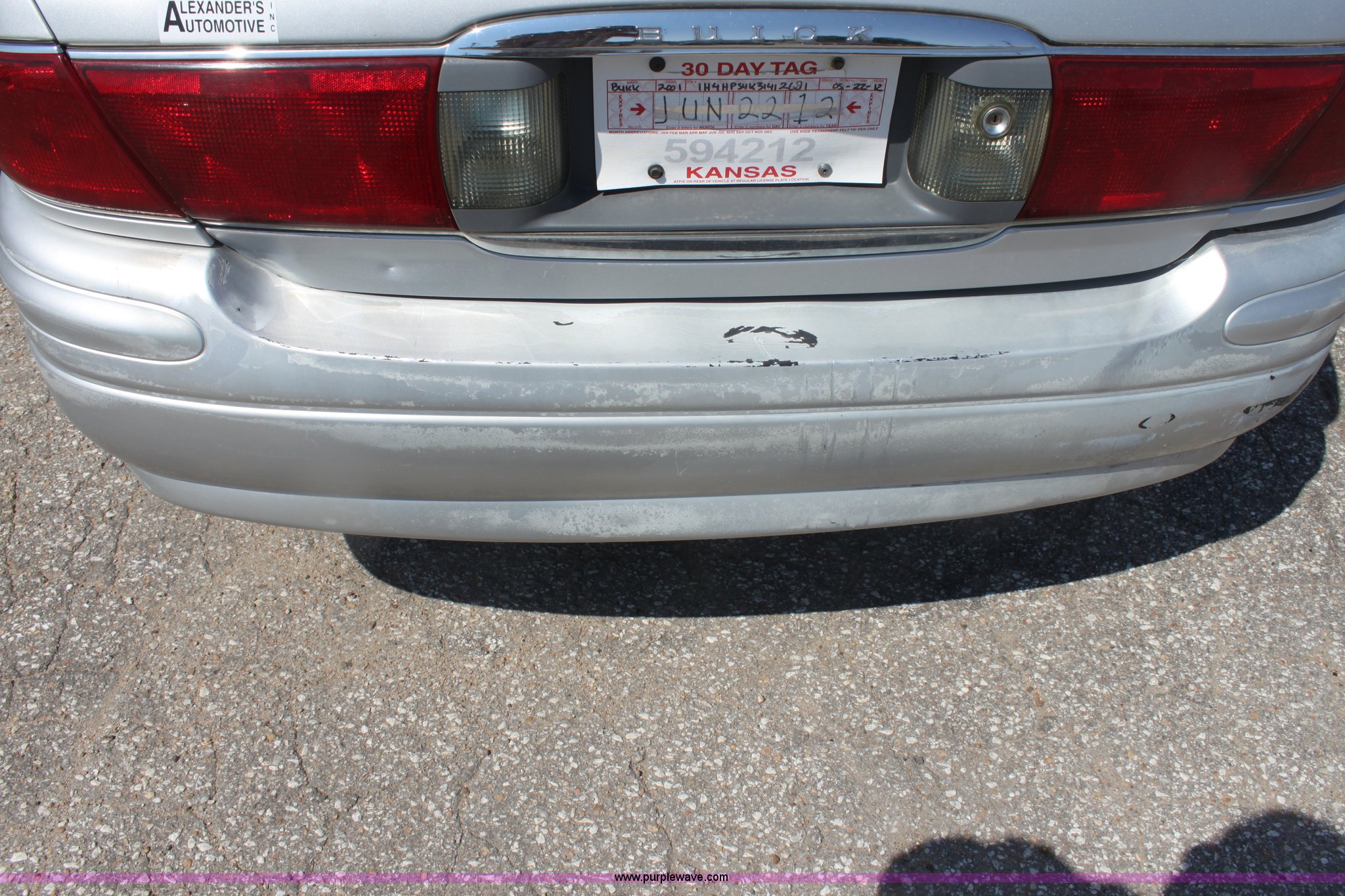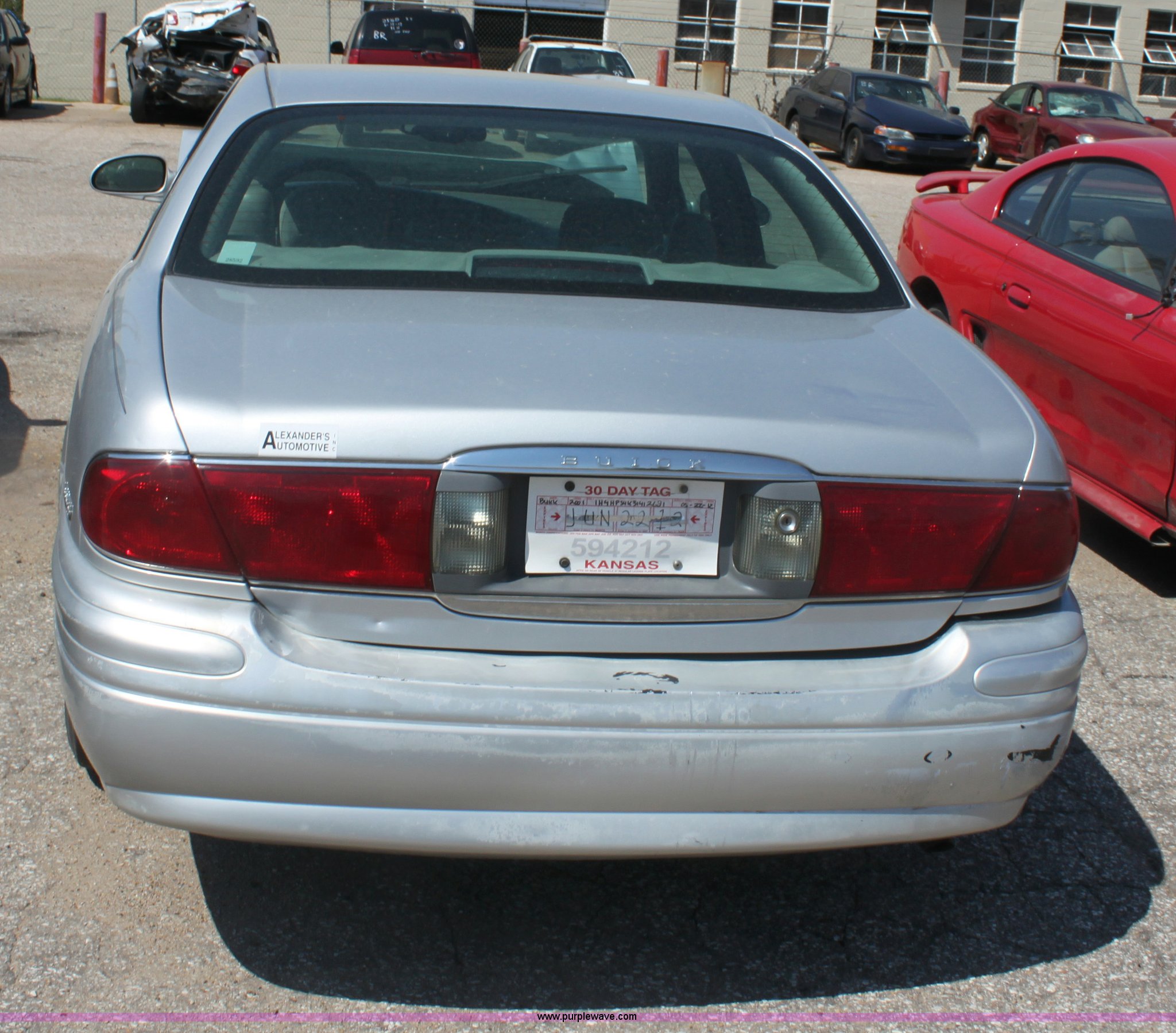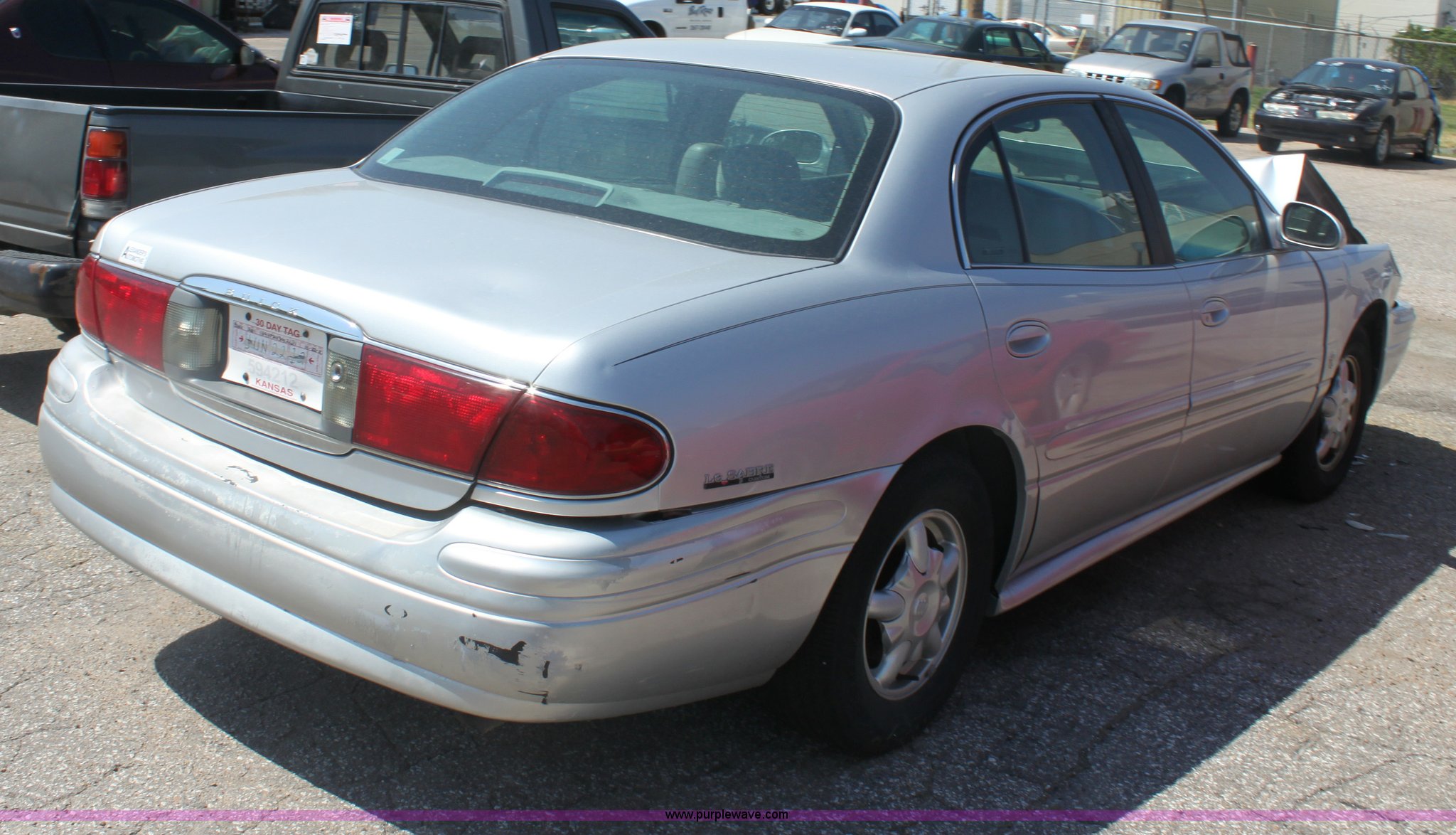 Purple Wave is selling a used Passenger Vehicle in Kansas. This item is a 2001 Buick LeSabre Custom with the following: 3.8L V6 MPI gas engine, Automatic transmission, AC and heat, Tilt, Cruise, AM/FM/CD, Power windows, locks, mirrors, and seats, Cloth interior, 215/70R15 tires, Vehicle has keys, Substantial front end damage, Paint peeling on bumper, Dent in truck lid, Vehicle not operable, must be towed, Case# 12C038175