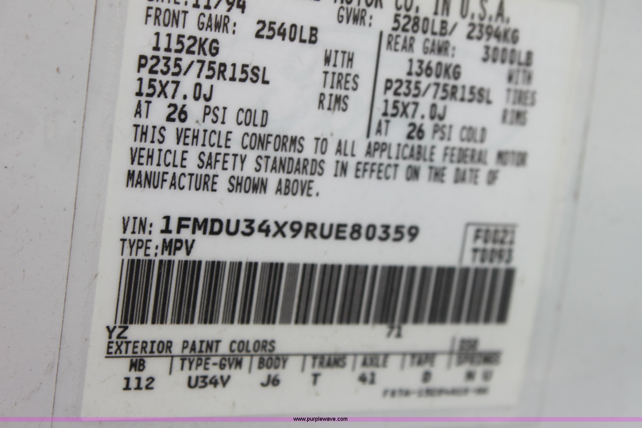 Purple Wave is selling a used Passenger Vehicle in Kansas. This item is a 1994 Ford Explorer XLT SUV with the following: 216,009 miles on odometer, 4.0L V6 MPI gas engine, Automatic transmission, Four wheel drive, AC and heat, Tilt, Cruise, AM/FM/CD, Power windows, locks, and mirrors, Cloth interior, 235/75R15 tires, Windshield cracked, Interior/exterior cosmetic damage, Front bumper and passenger front fender dented, Case# 12C042023