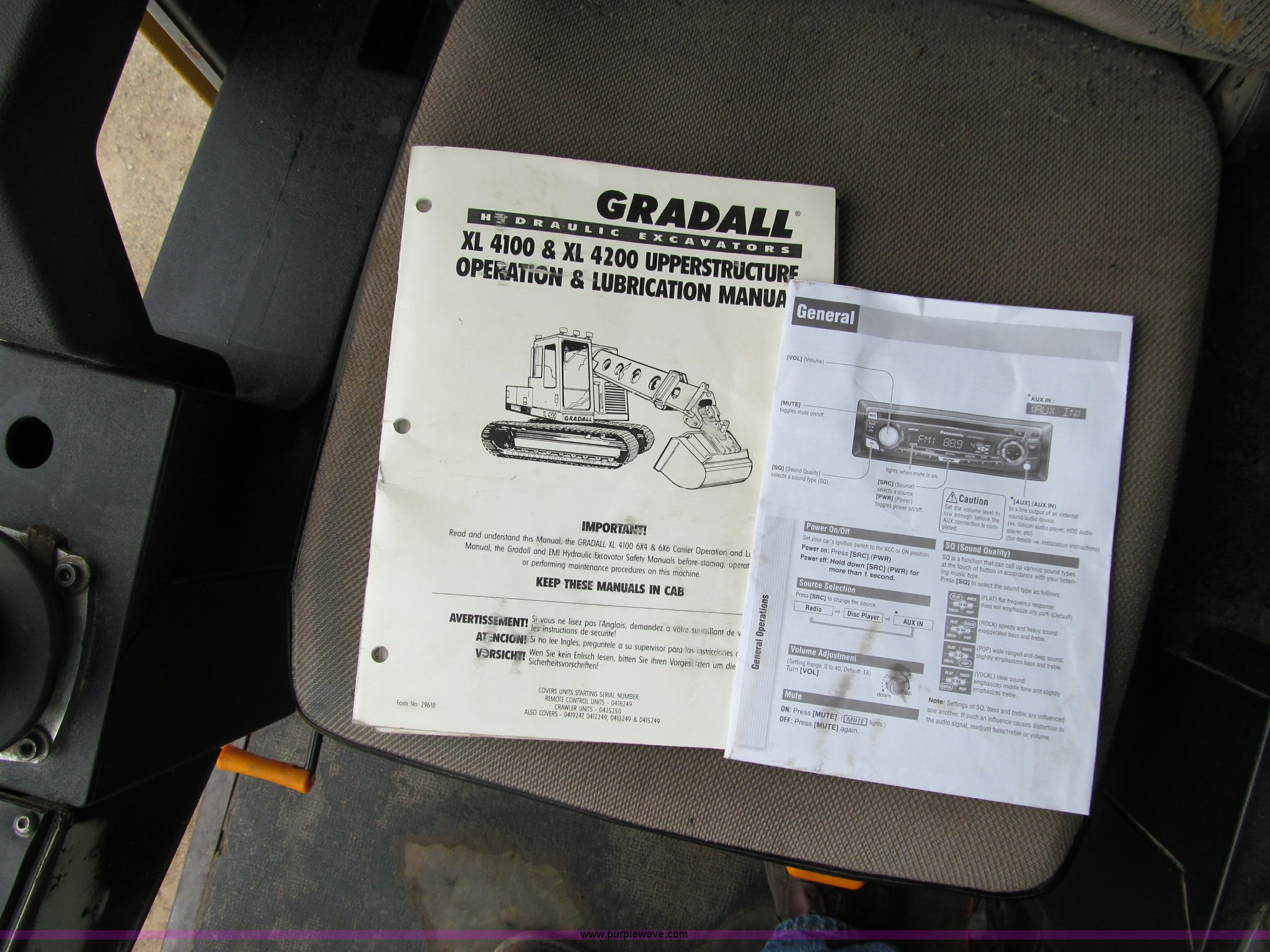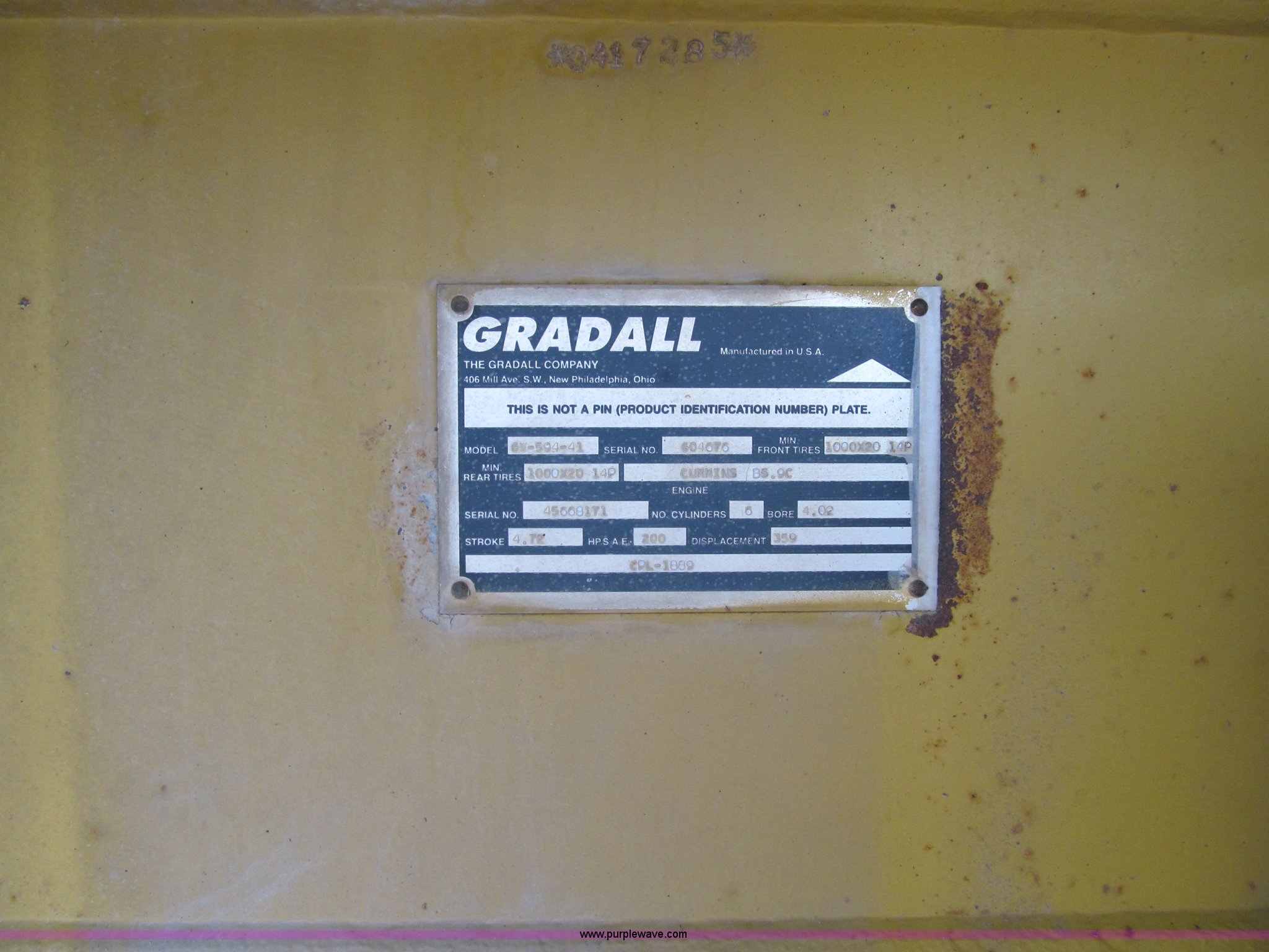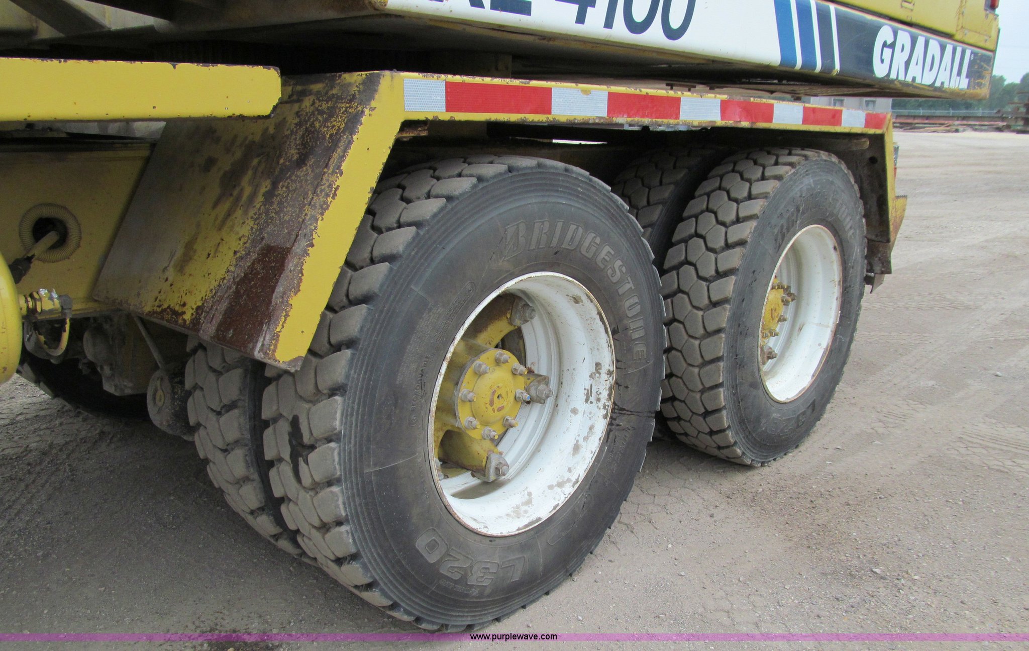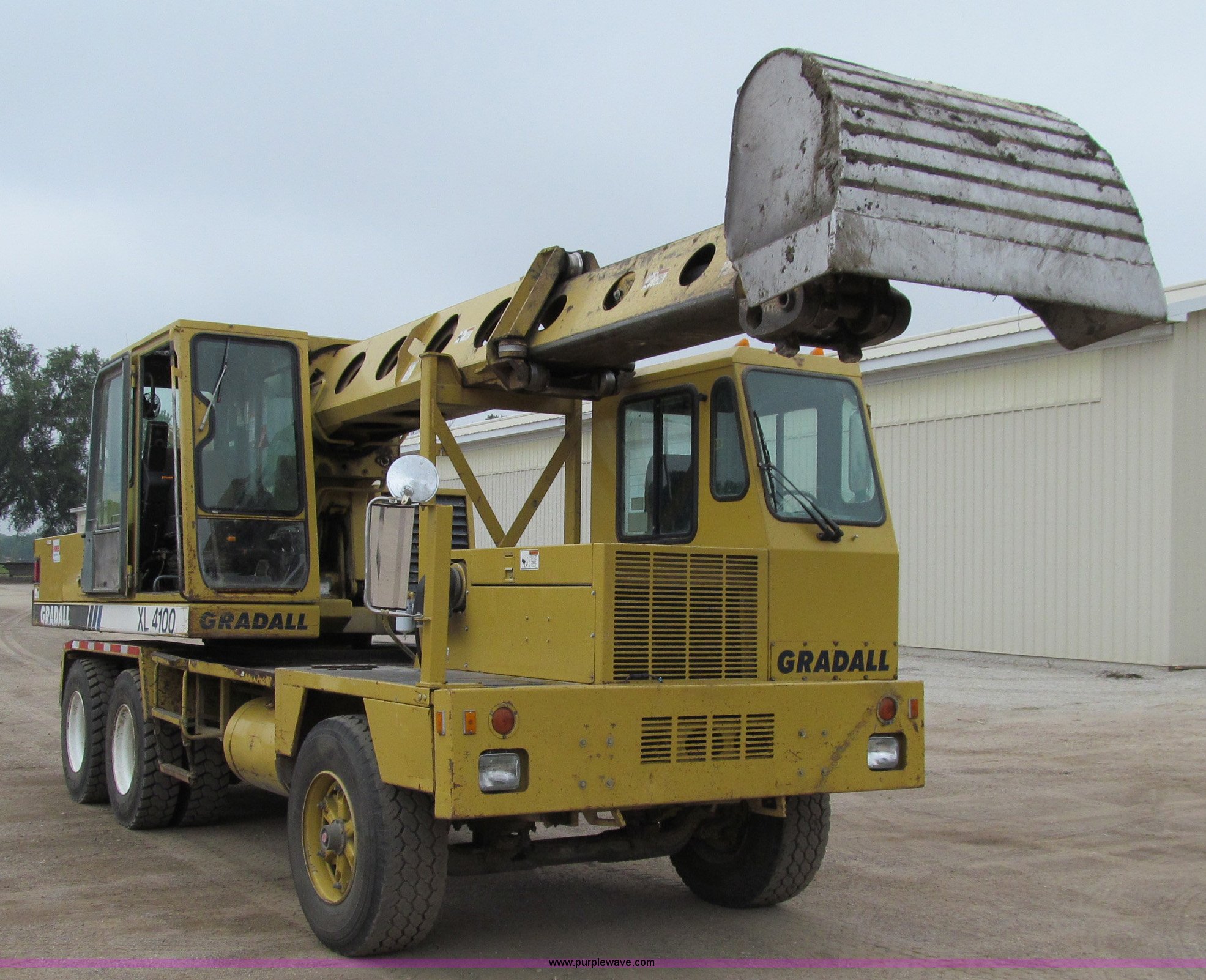Purple Wave is selling a used Rubber Tired Excavator in Iowa. This item is a 1998 Gradall XL4100 mobile hydraulic excavator with the following: 90,003 miles on odometer, Cummins 5.9L six cylinder turbo diesel engine, 90,003 miles on odometer, Lower engine, 4,395 hours on meter, Cummins six cylinder turbo diesel engine, Upper engine, Model 6BT-148-2200, 7,904 hours on meter, Fuller 8LL transmission, Remote steering, AC and heat, AC inoperable, AM/FM/CD, Windshield wiper, Upper cab joystick controls, Foot travel pedals, Gradall electronic monitor, 60" ditching bucket, Digging brake, Water separator, Block heater, Front axle lock-outs, Inter-axle differential, Approx. 50 gallon fuel tank, 385/65R22.5 front tires, 11R22.5 rear tires, 171" wheelbase, Serial 0417285