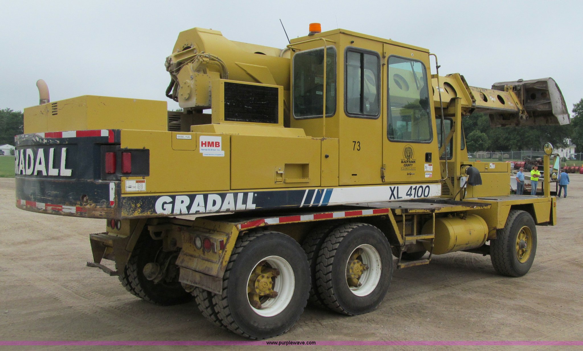 1998 Gradall XL4100 mobile hydraulic excavator. 90,003 miles on odometer, Cummins 5.9L six cylinder turbo diesel engine 90,003 miles on odometer, Lower engine, 4,395 hours on meter, Cummins six cylinder turbo diesel engine Upper engine, Model 6BT-148-2200, 7,904 hours on meter, Fuller 8LL transmission, Remote steering, AC and heat AC inoperable, AM/FM/CD, Windshield wiper, Upper cab joystick controls, Foot travel pedals, Gradall electronic monitor, 60" ditching bucket, Digging brake, Water separator, Block heater, Front axle lock-outs, Inter-axle differential, Approx. 50 gallon fuel tank, 385/65R22.5 front tires, 11R22.5 rear tires, 171" wheelbase, Serial 0417285. View Additional Information. Load-out by RGN only. No dock available. View equipment video. Shipping quotes available. Black Hawk County Highway Department. 1329 Longfellow. Waterloo, IA 50703