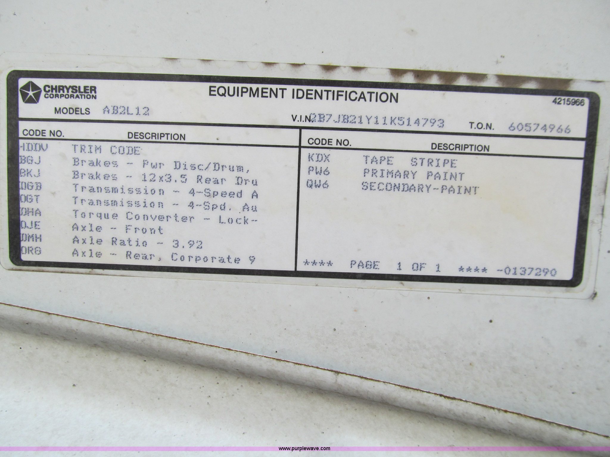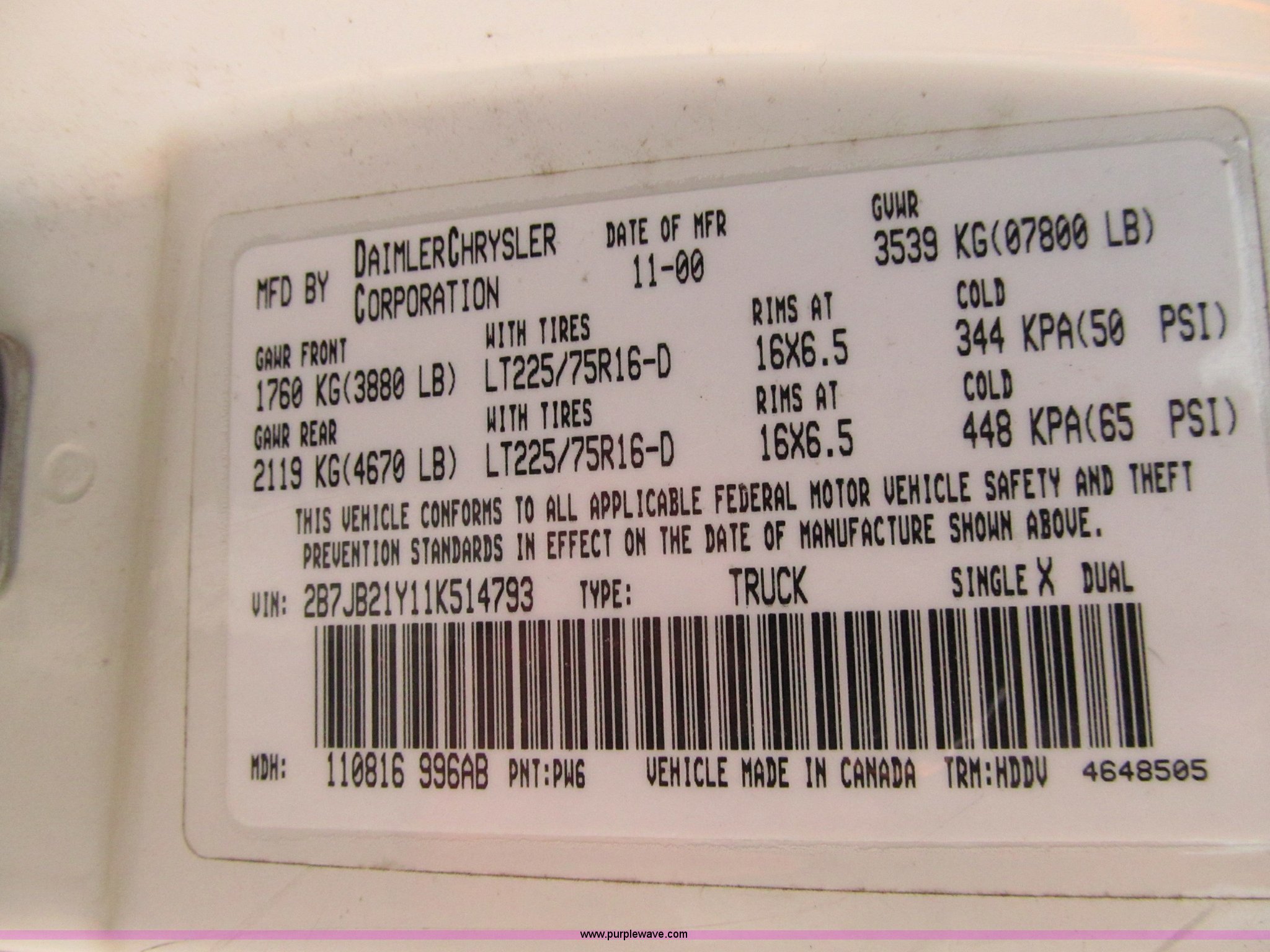 Purple Wave is selling a used Passenger Vehicle in Iowa. This item is a 2001 Dodge Ram 2500 cargo van with the following: 33,800 actual miles, 5.2L V8 SFI gas engine, Runs rough, Automatic transmission, AC and heat, Tilt, Cruise, AM/FM/cassette, Manual windows and locks, Vinyl interior, 3.92 axle ratio, LT225/75R16 tires, GVWR 7,800 lbs, FAWR 3,880 lbs, RAWR 4,670 lbs, Check engine light is on, Engine runs rough, ID# 0174