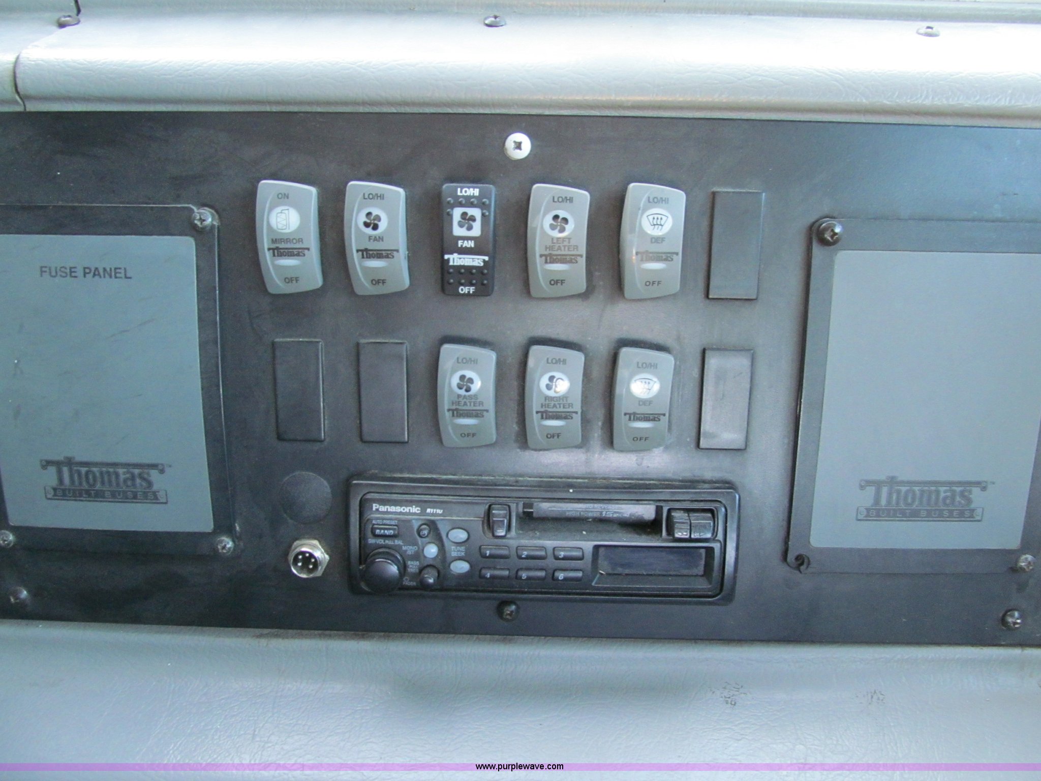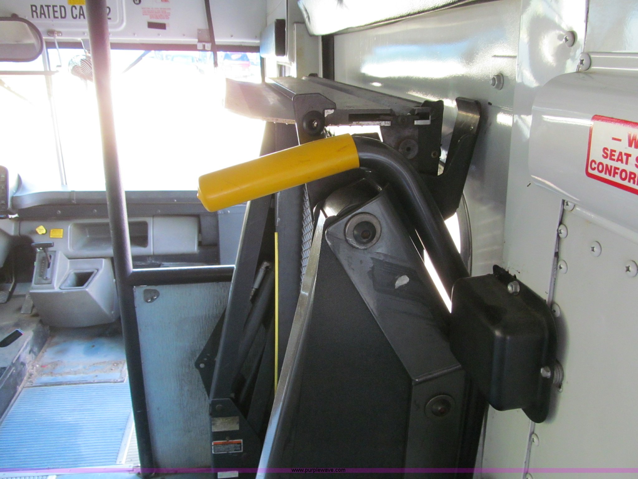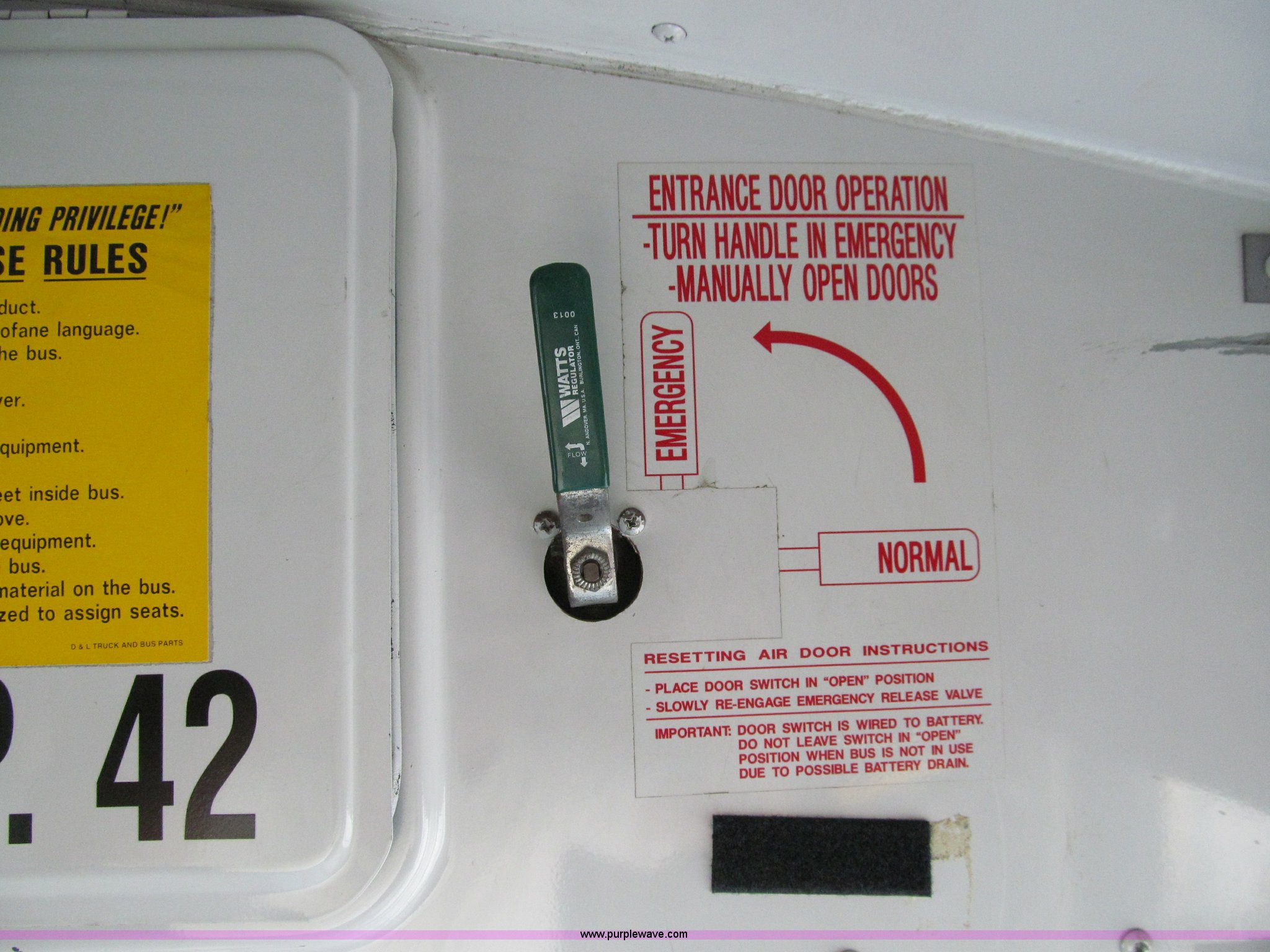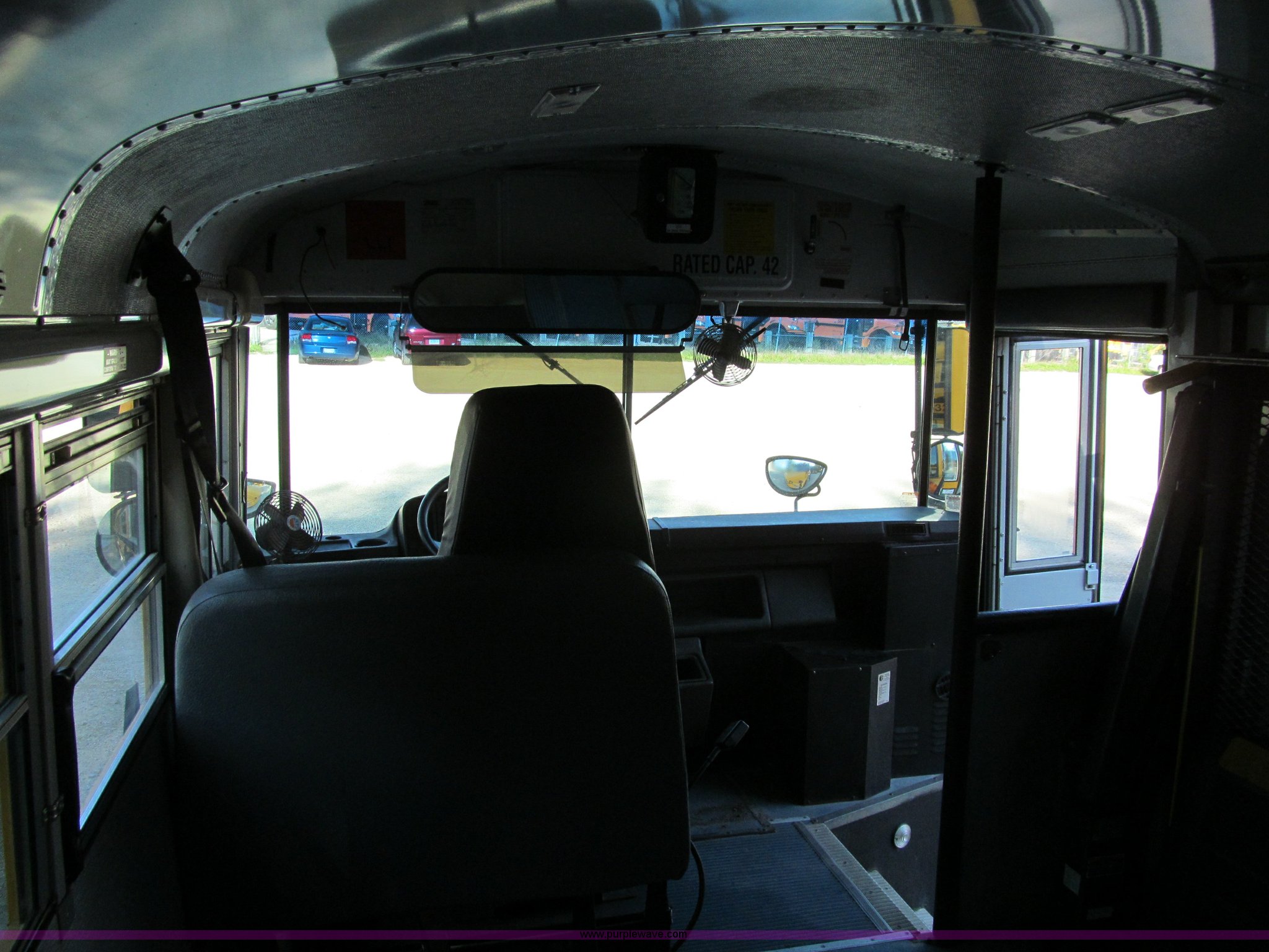 Purple Wave is selling a used Bus in Iowa. This item is a 2001 Freightliner FS65 school bus with the following: 127,621 actual miles, Thomas Built, 42 passenger, Cummins 5.9L six cylinder 24 valve diesel engine, Heater, Tilt, Cruise, AM/FM/cassette, Manual windows, Vinyl interior, Cush-N-Aire drivers seat, Braun Corporation L917 wheelchair lift, (7) emergency egresses, Freightliner chassis, Air suspension, Air brakes, 252" wheelbase, 10R22.5 tires, GVWR 28,960 lbs, FAWR 10,000 lbs, RAWR 18,960 lbs, V30 camera/monitor not included, ID# 642