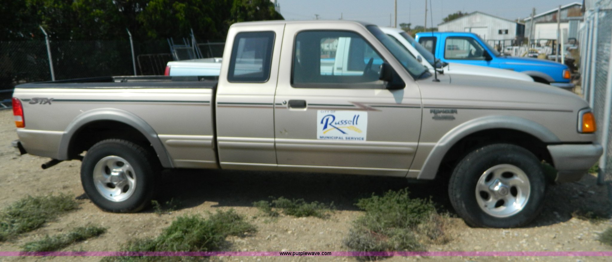 1996 Ford Ranger STX SuperCab pickup truck. 156,110 miles on odometer, 4.0L V6 EFI gas engine, Automatic transmission Transmission issues, Four wheel drive, AC and heat, Tilt, AM/FM/cassette, Manual windows, Power locks and seats, Receiver hitch, Interior/exterior cosmetic damage, Transmission issues. Title distribution may be delayed up to 14 days from verification of funds. 1FTCR15X4TPA20214. Shipping quotes available. City of Russell. 133 W 8th St. Russell, KS 67665