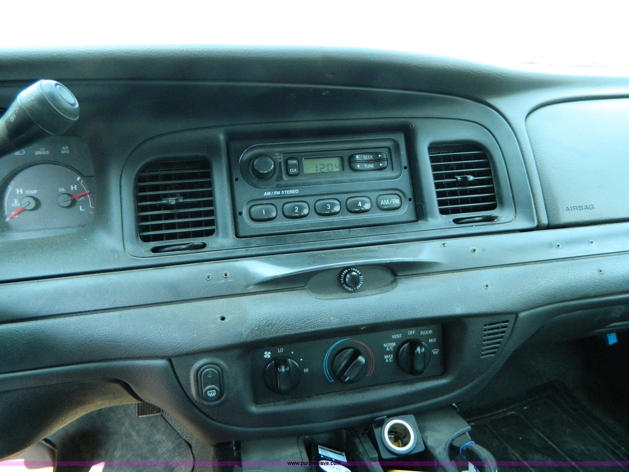 Purple Wave is selling a used Passenger Vehicle in Kansas. This item is a 2003 Ford Crown Victoria with the following: 106,034 miles on odometer, 4.6L V8 EFI gas engine, Automatic transmission, AC and heat, Tilt, AM/FM, Power windows, locks, mirrors, and seats, P225/60R16 tires, Interior/exterior cosmetic damage, Roof holes plugged, Paint peeling