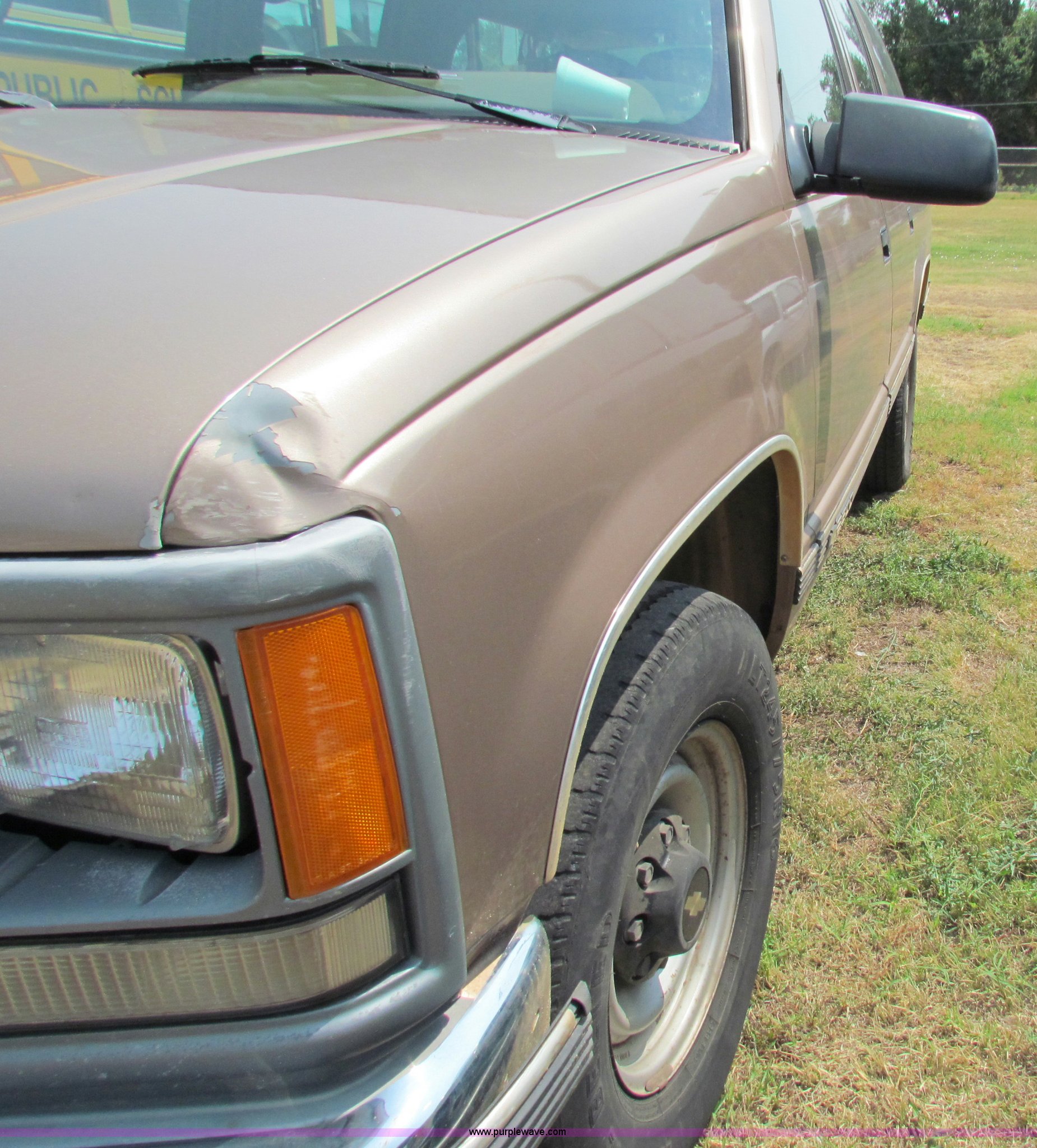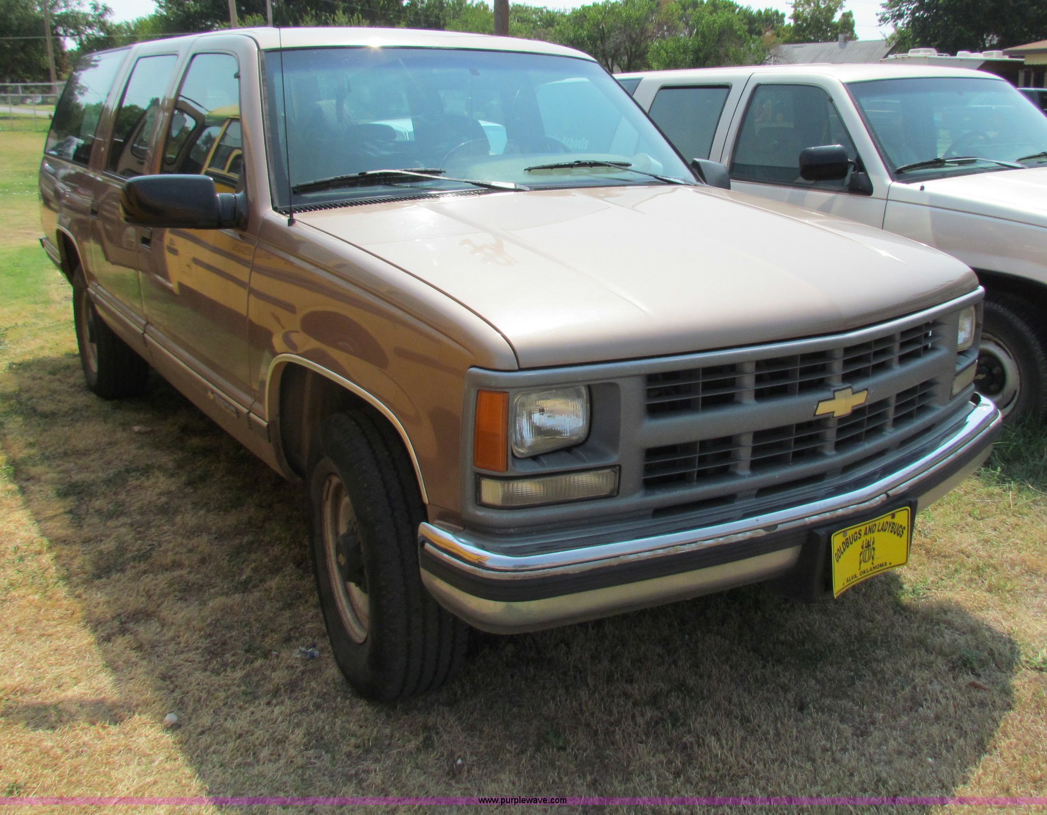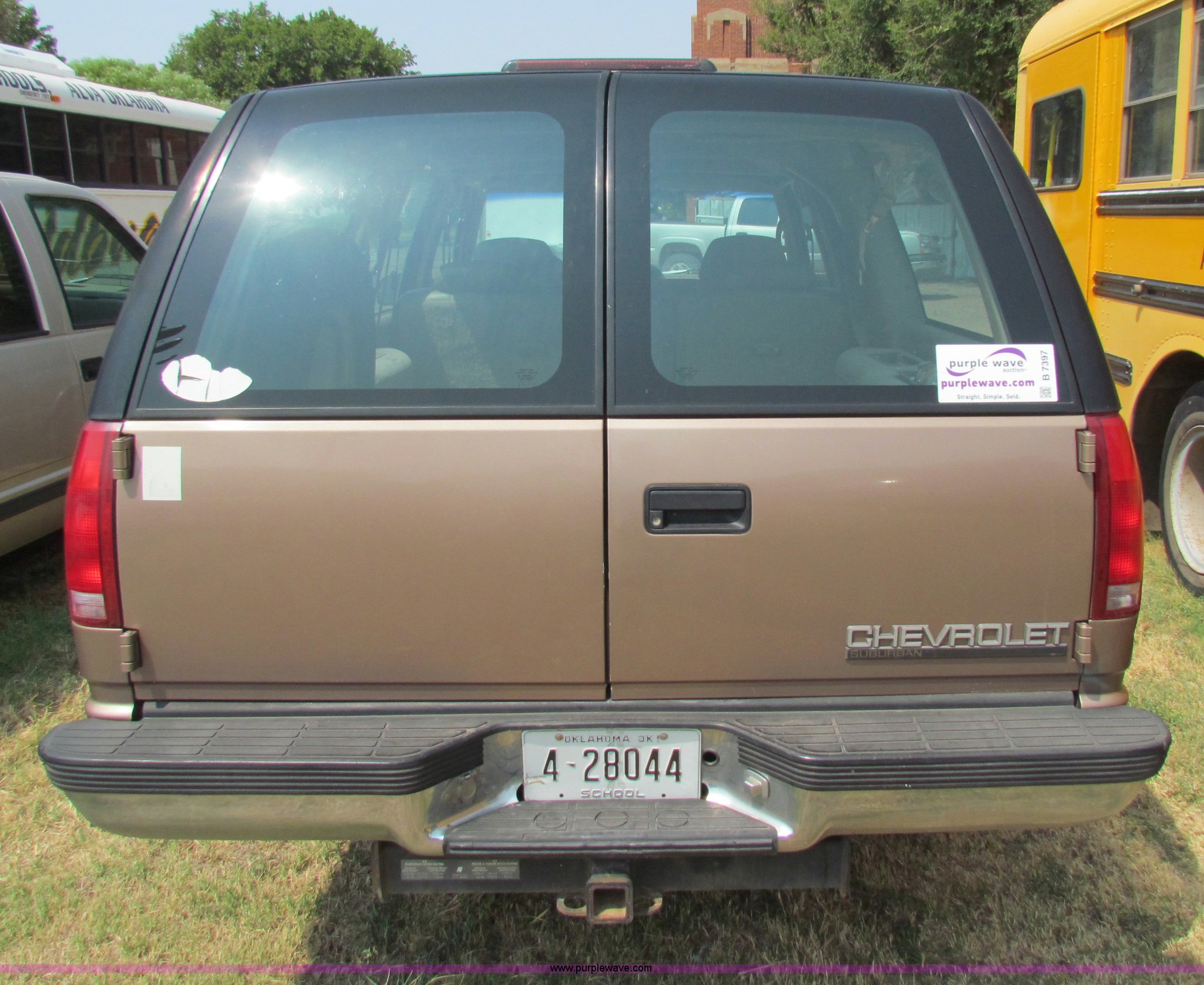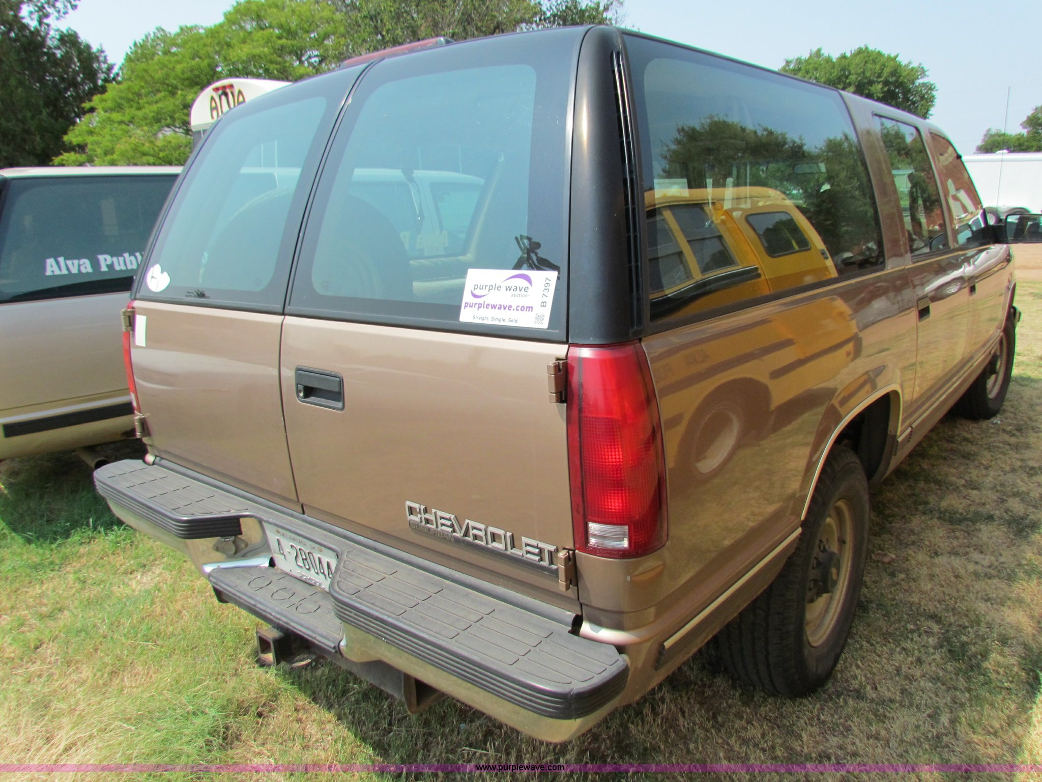 Purple Wave is selling a used Passenger Vehicle in Oklahoma. This item is a 1995 Chevrolet Suburban 2500 SUV with the following: 152,089 miles on odometer, 5.7L V8 TBI gas engine, Automatic transmission, AC and heat, Tilt, Cruise, AM/FM/cassette, Manual windows and locks, Vinyl interior, Third row seat included, Receiver hitch, 245/75R16 tires, Interior/exterior cosmetic damage, ID# 2
