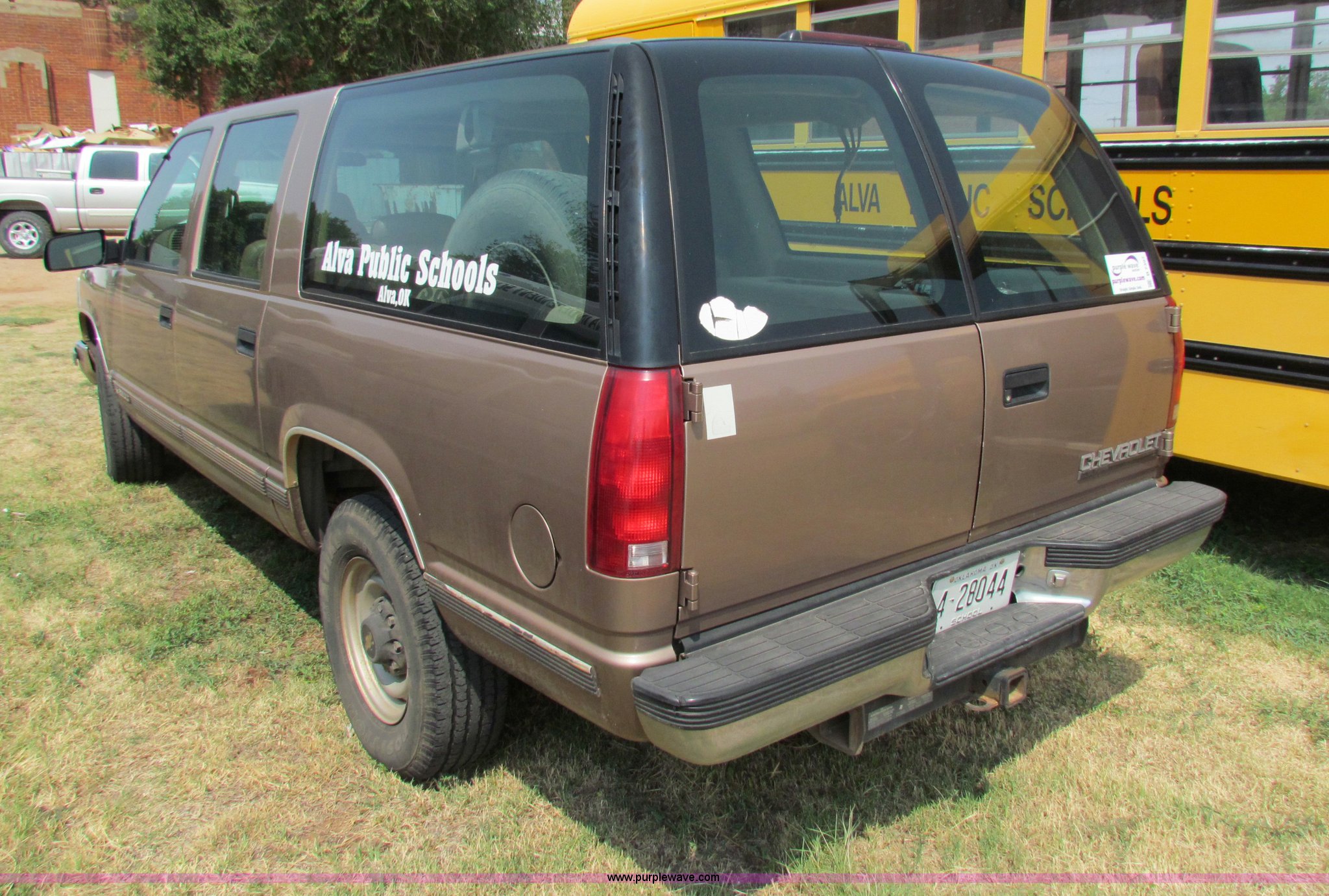 1995 Chevrolet Suburban 2500 SUV. 152,089 miles on odometer, 5.7L V8 TBI gas engine, Automatic transmission, AC and heat, Tilt, Cruise, AM/FM/cassette, Manual windows and locks, Vinyl interior, Third row seat included, Receiver hitch, 245/75R16 tires, Interior/exterior cosmetic damage, ID# 2. 1GNGC26K8SJ370112. Shipping quotes available. Alva Public Schools. Alva, OK 73717