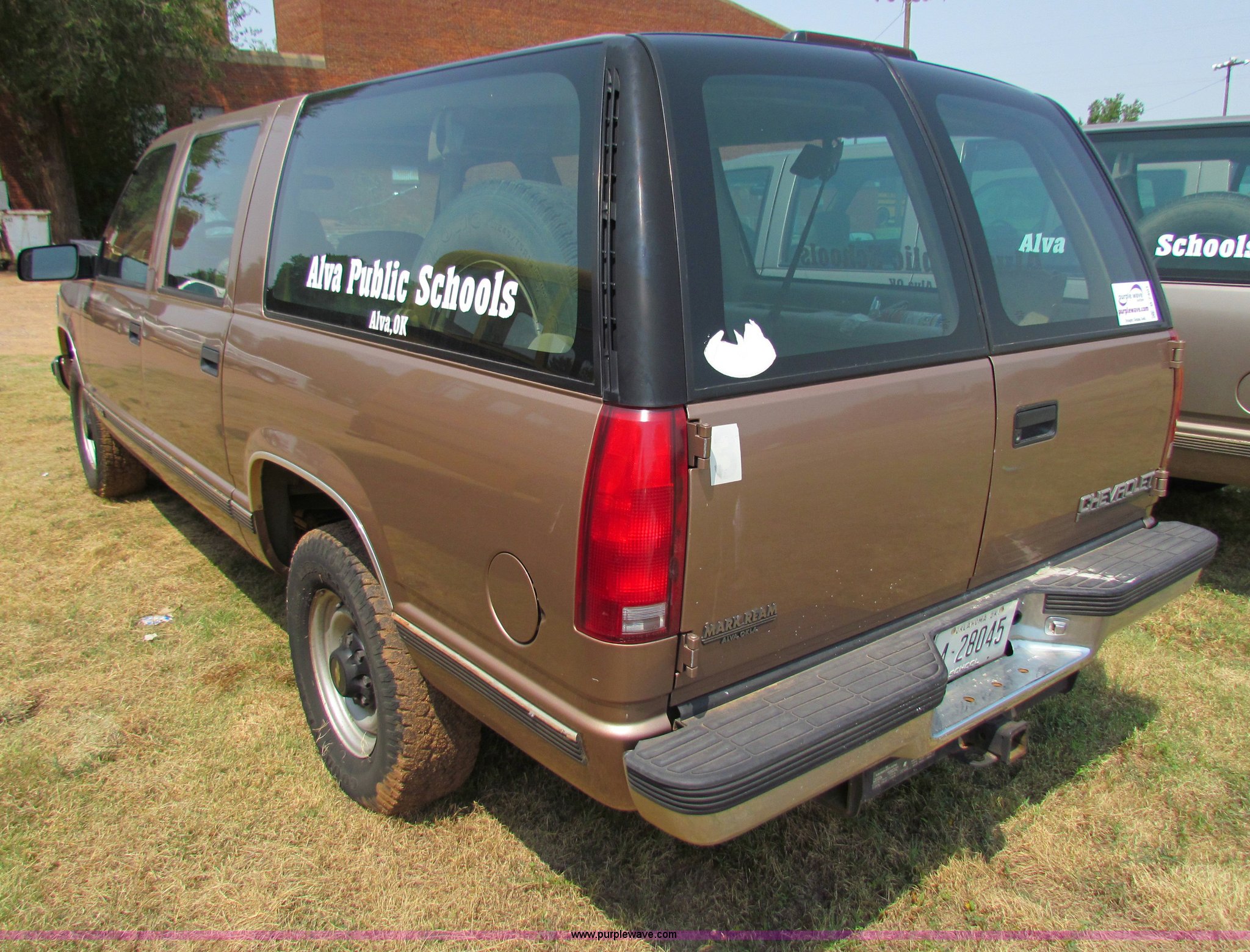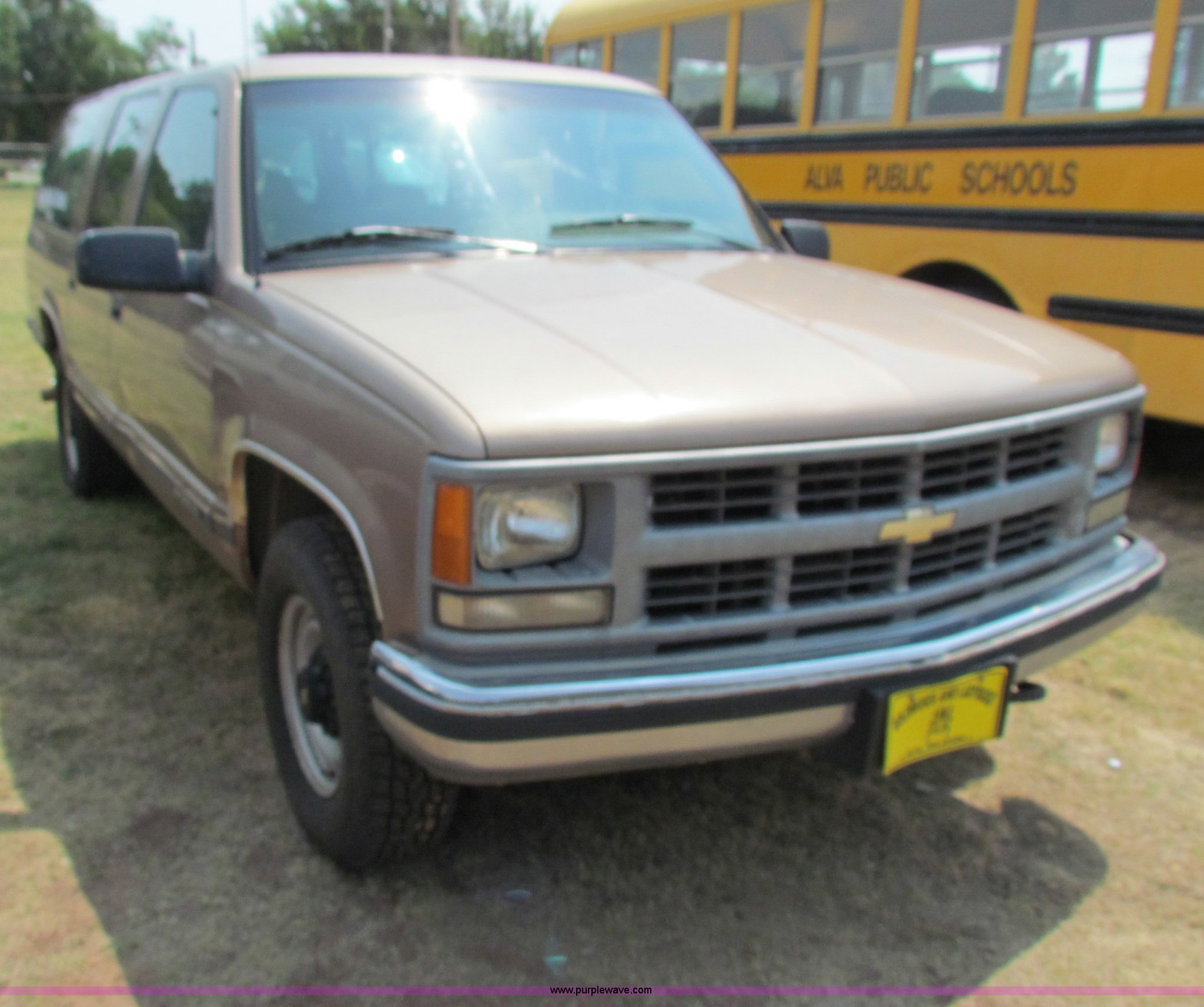 1995 Chevrolet Suburban 2500 SUV. 167,105 miles on odometer, 5.7L V8 TBI gas engine, Automatic transmission, AC and heat AC needs charged, Tilt, Cruise, AM/FM, Manual windows and locks, Vinyl interior, Receiver hitch, 245/75R16 tires, Third row seat included, Interior/exterior cosmetic damage, Broken rear view mirror, ID# 3. 1GNGC26KXSJ378857. Shipping quotes available. Alva Public Schools. Alva, OK 73717