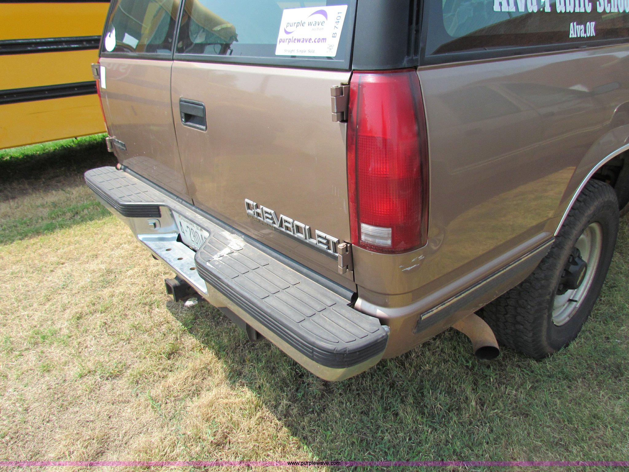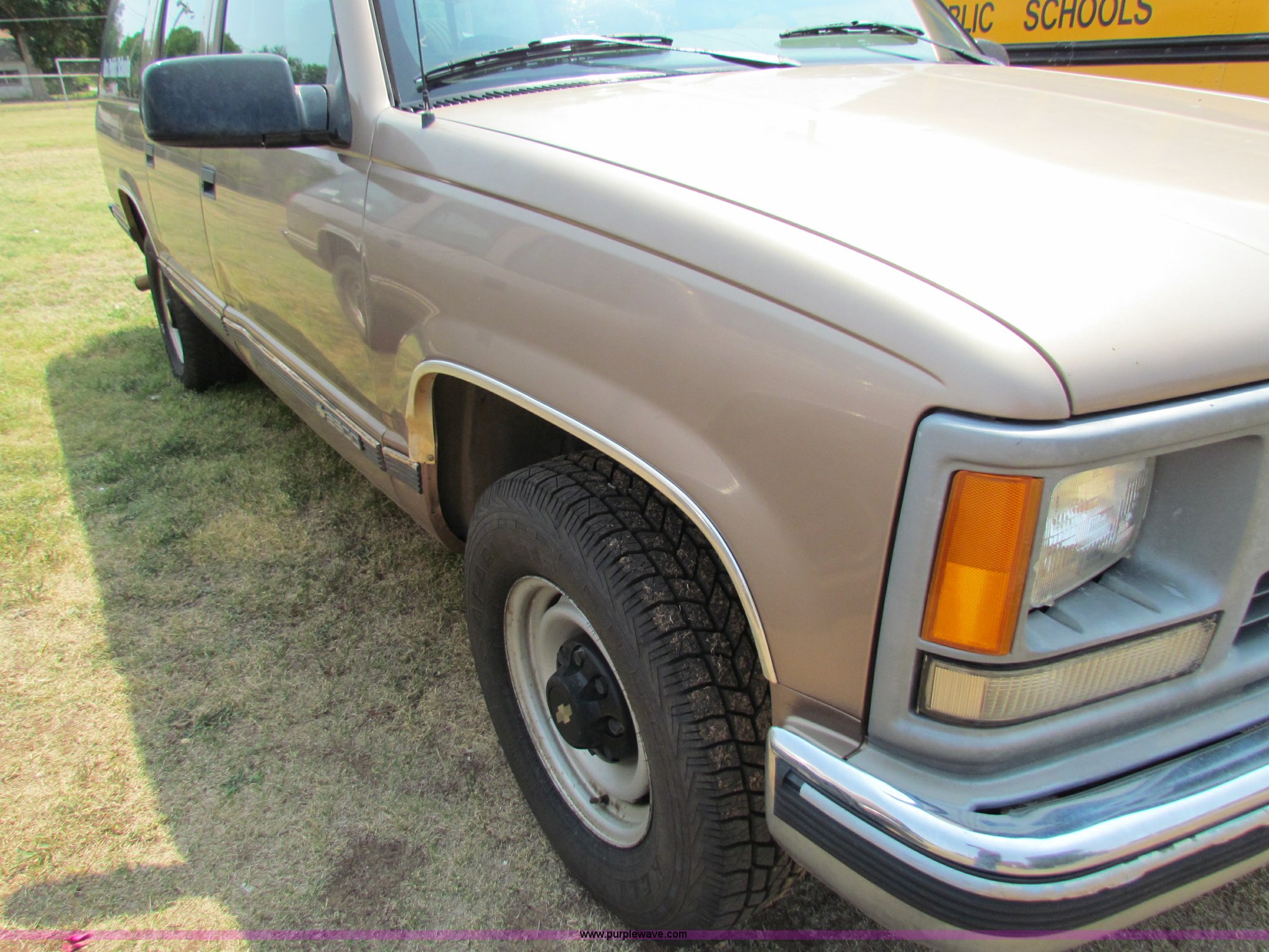 Purple Wave is selling a used Passenger Vehicle in Oklahoma. This item is a 1995 Chevrolet Suburban 2500 SUV with the following: 167,105 miles on odometer, 5.7L V8 TBI gas engine, Automatic transmission, AC and heat, AC needs charged, Tilt, Cruise, AM/FM, Manual windows and locks, Vinyl interior, Receiver hitch, 245/75R16 tires, Third row seat included, Interior/exterior cosmetic damage, Broken rear view mirror, ID# 3