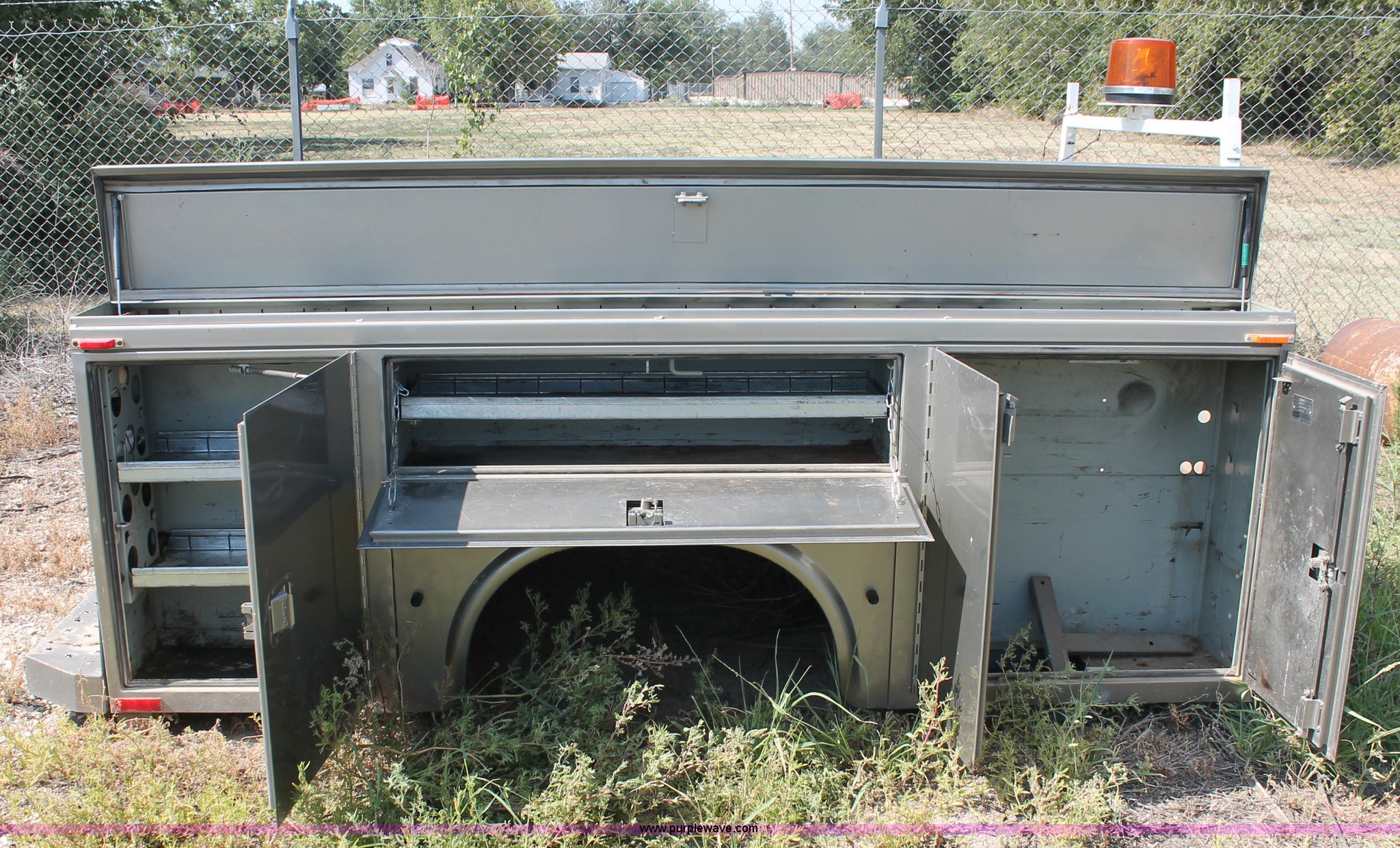 Knapheide 9' utility truck bed. (6) side storage compartments, (2) top rail storage compartments. Shipping quotes available. Dickinson County. 408 SE 2nd St. Abilene, KS 67410