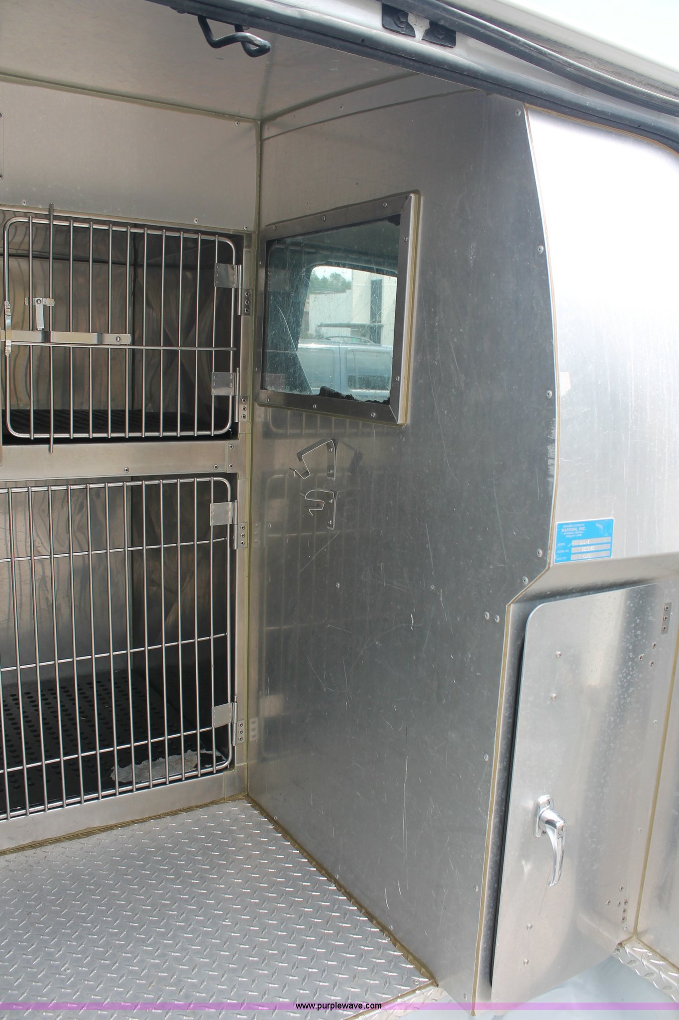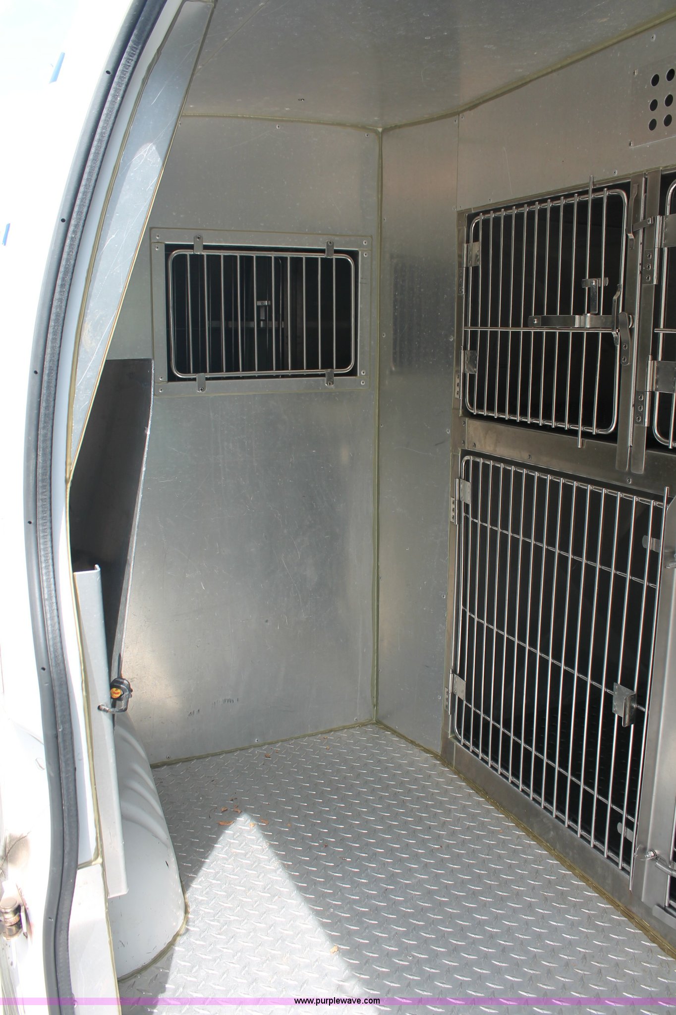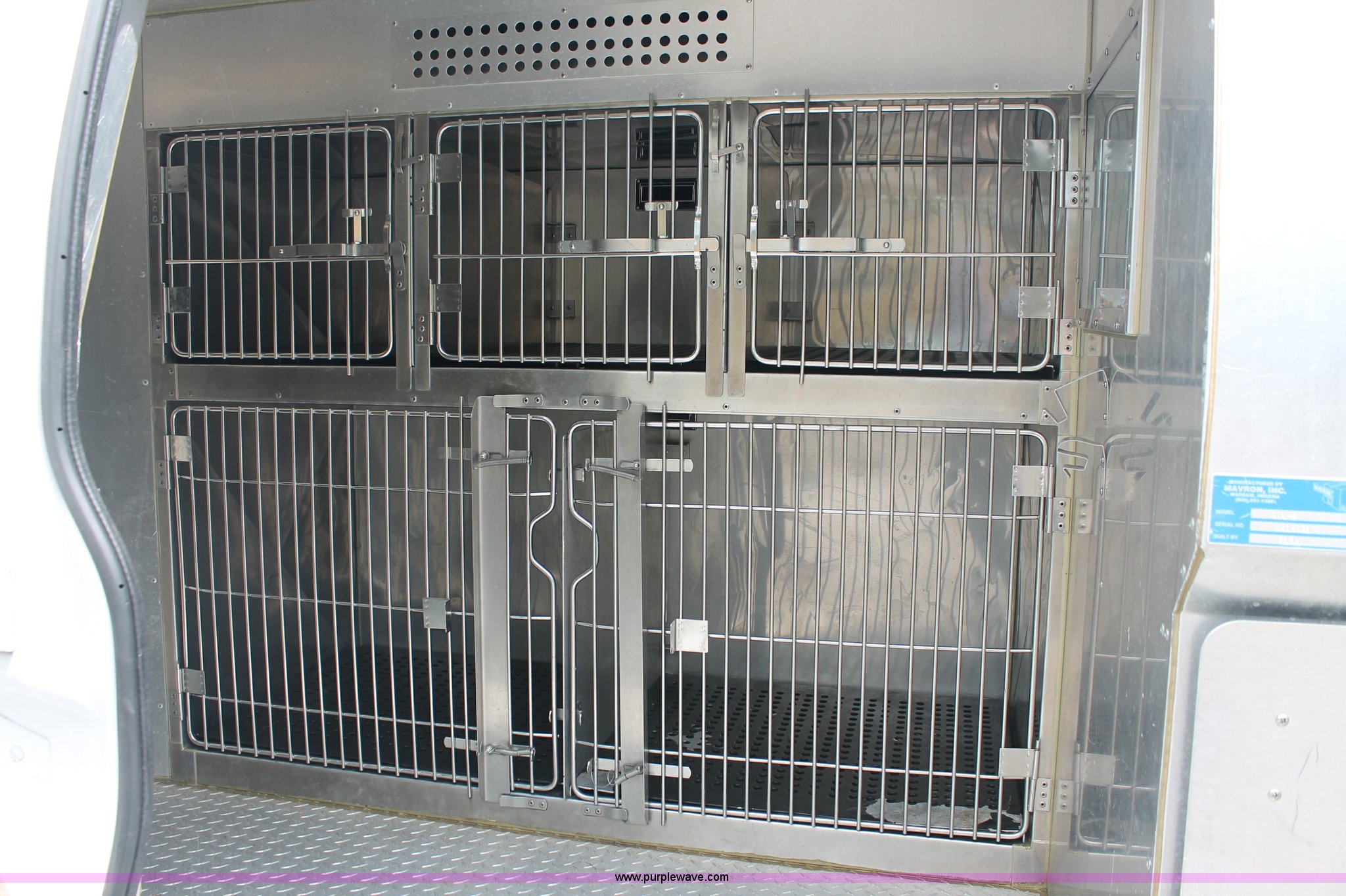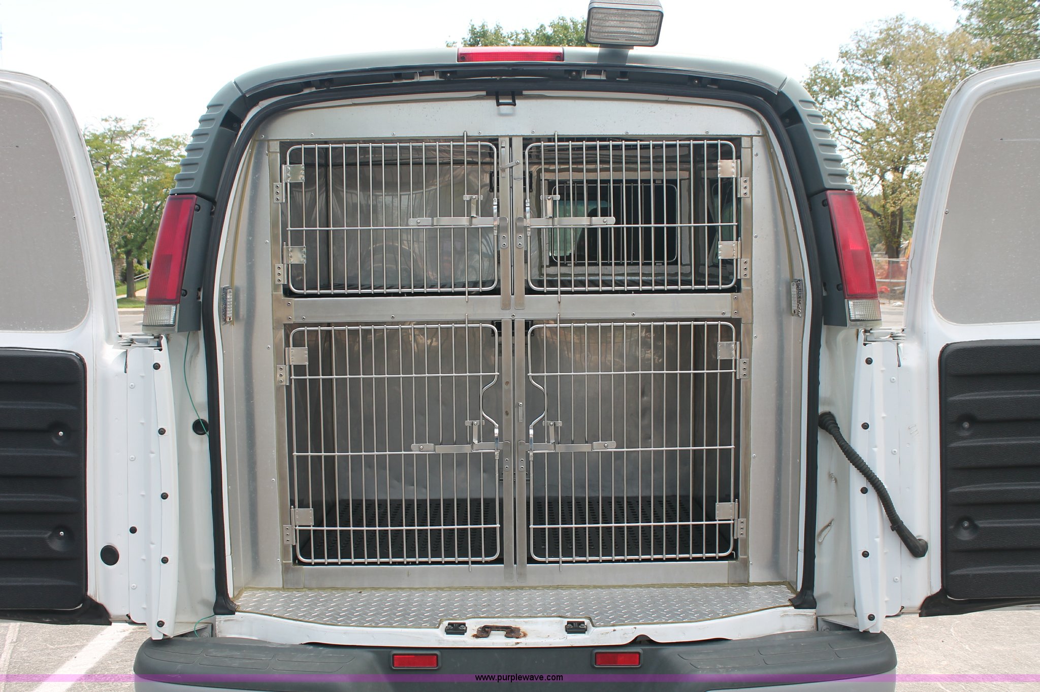2002 Chevrolet G2500 Express cargo van. 129,124 actual miles, 5.7L V8 CPI gas engine, Automatic transmission, AC and heat, Tilt, Cruise, AM/FM, Manual windows and locks, Vinyl interior, Amber warning beacon, Rear AC and heat control, Mauron AVL-9 steel animal kennel (9) cage sections, Serial 0419021, Firestone Transforce 225/75R16 tires, Exterior graphic residue. Title distribution may be delayed up to 14 days from verification of funds. 1GCGG25R621194401. Shipping quotes available. City of Gladstone - Public Safety. 7010 N Holmes. Gladstone, MO 64119