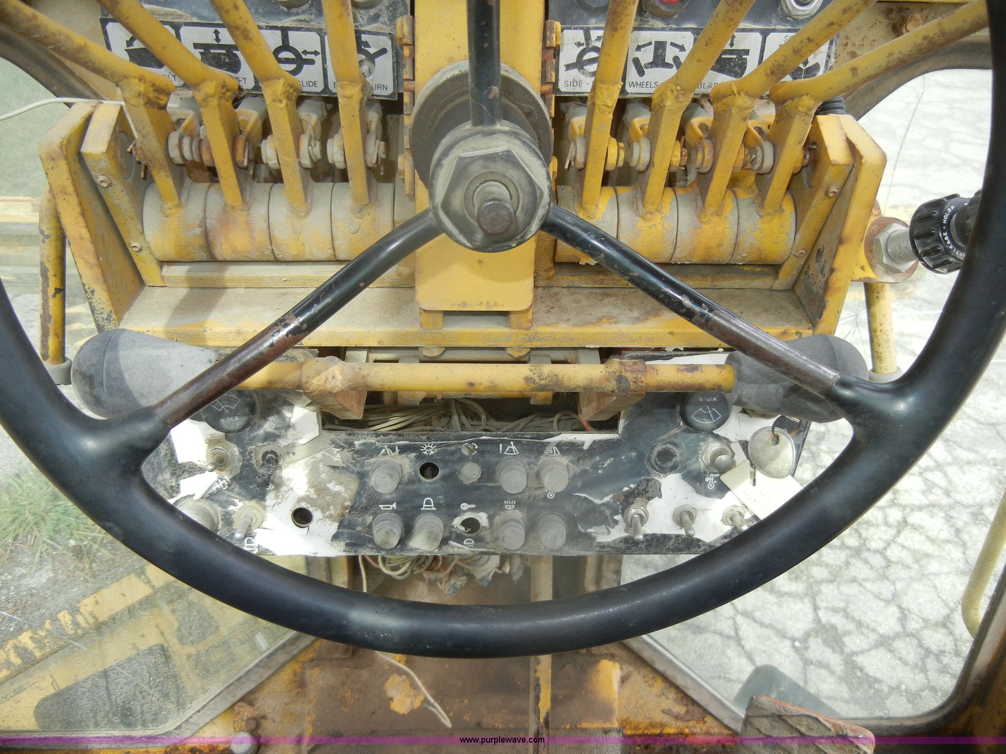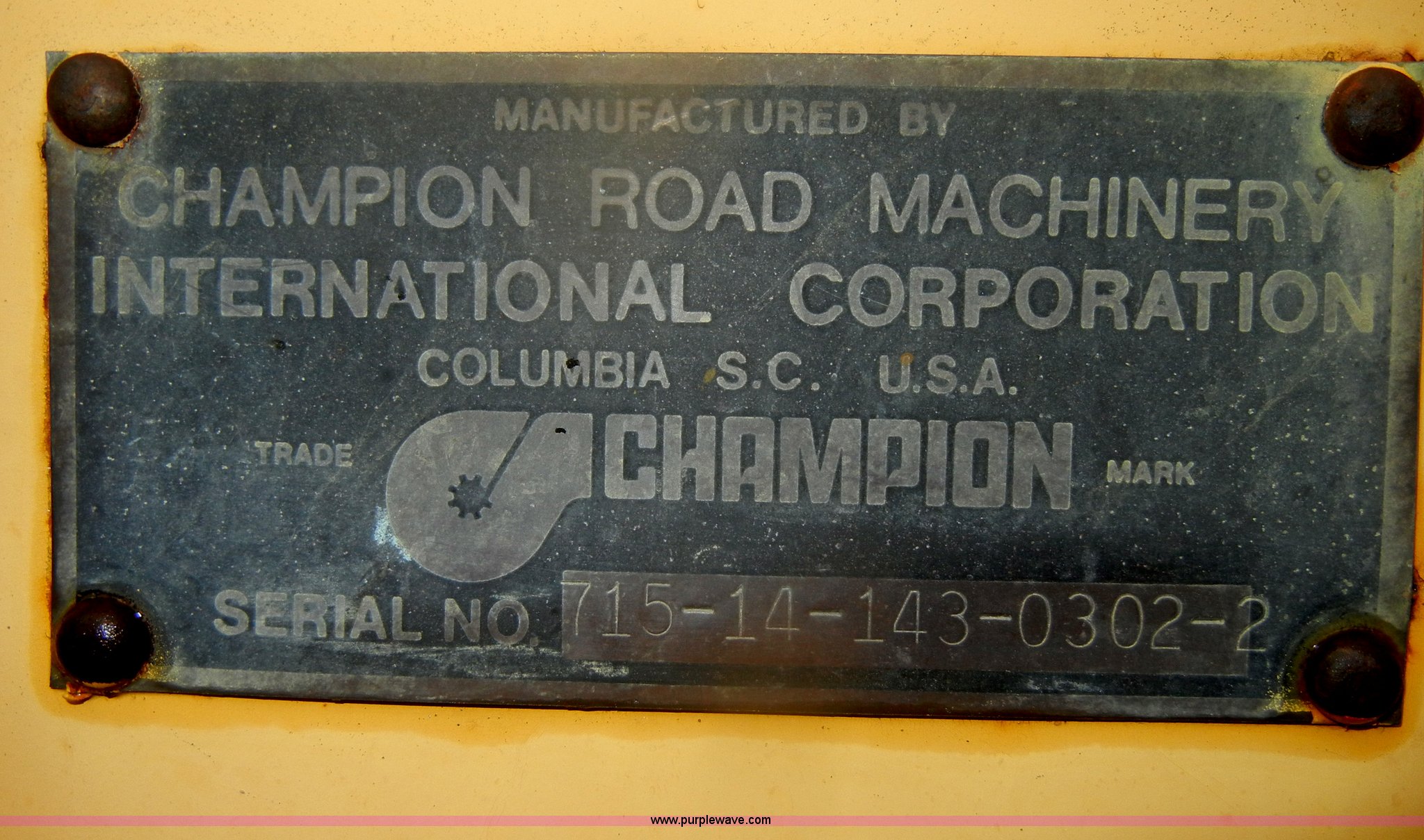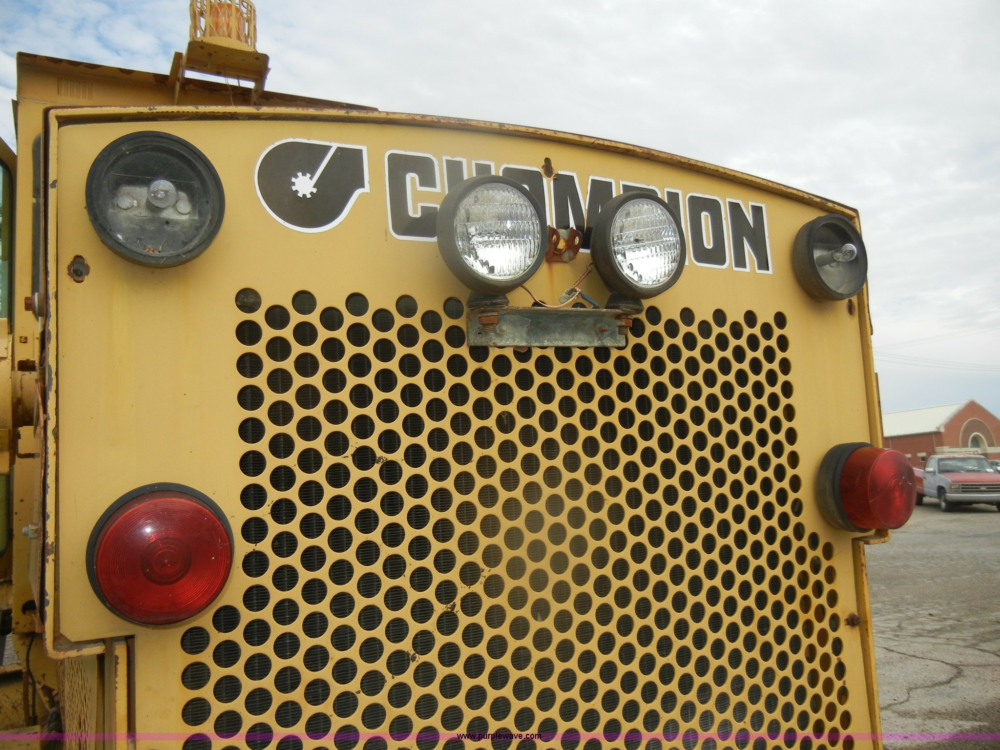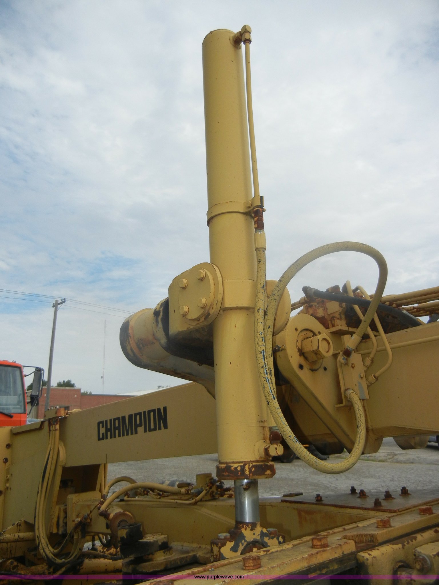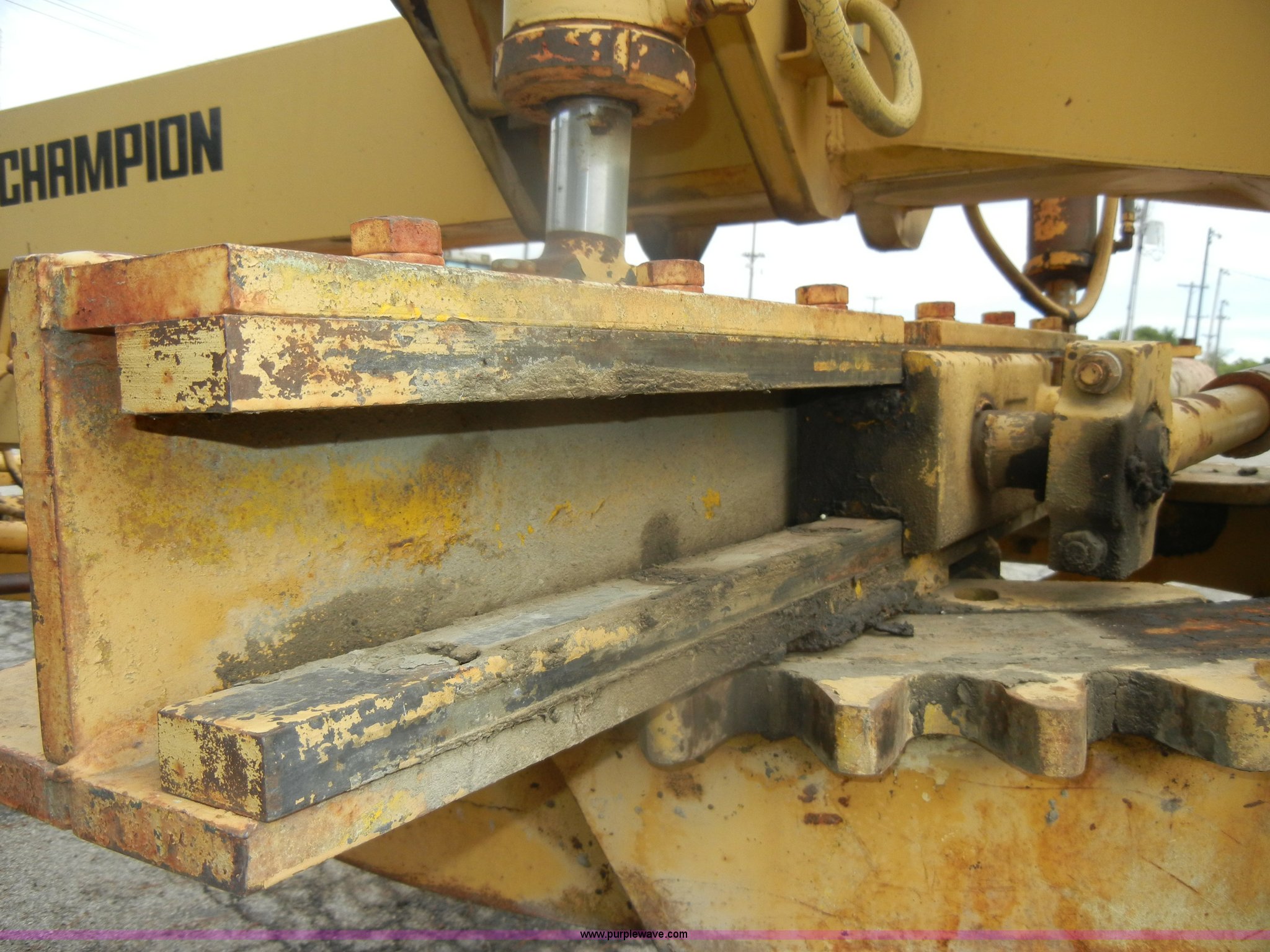 Purple Wave is selling a used Motor Grader in Kansas. This item is a 1979 Champion 715 motor grader with the following: 2,820 hours on meter, Diesel engine, Manual transmission with Hi-Lo, 3F-2R gears, Hi-Lo,, Block heater, ROPS, Model 19655, Serial 0293-2, AM/FM, Suspension seat, Front and rear work lights, 12' blade, Control for scarifier, Scarifier not included, (6) blade control valves, 14.00-24 tires, Cracked lower glass, Serial 7151414303022