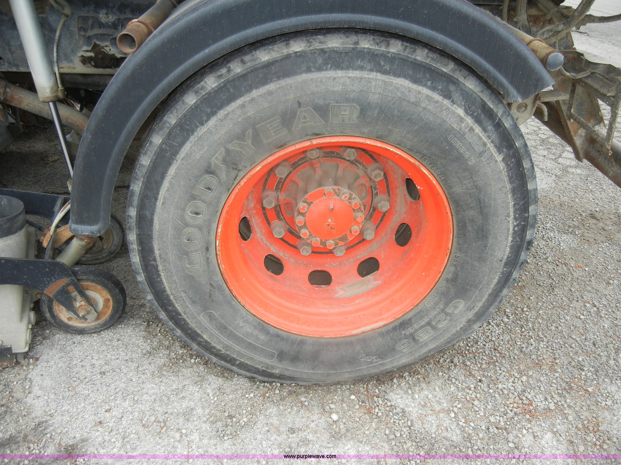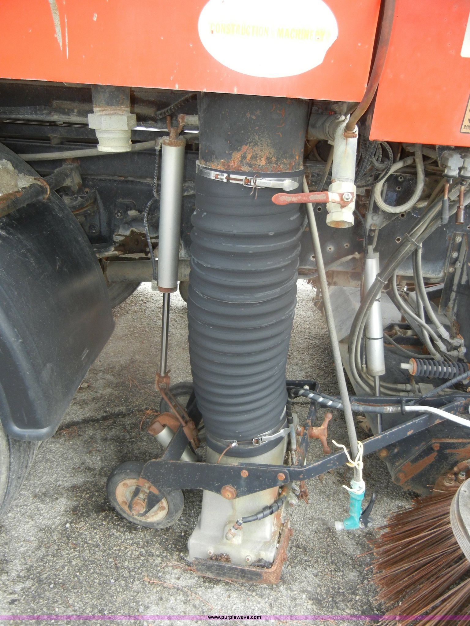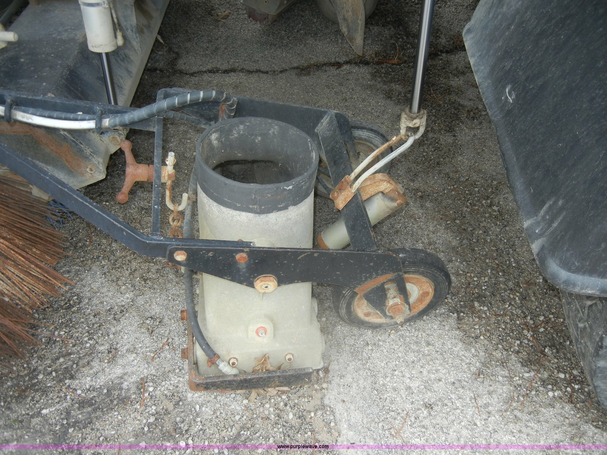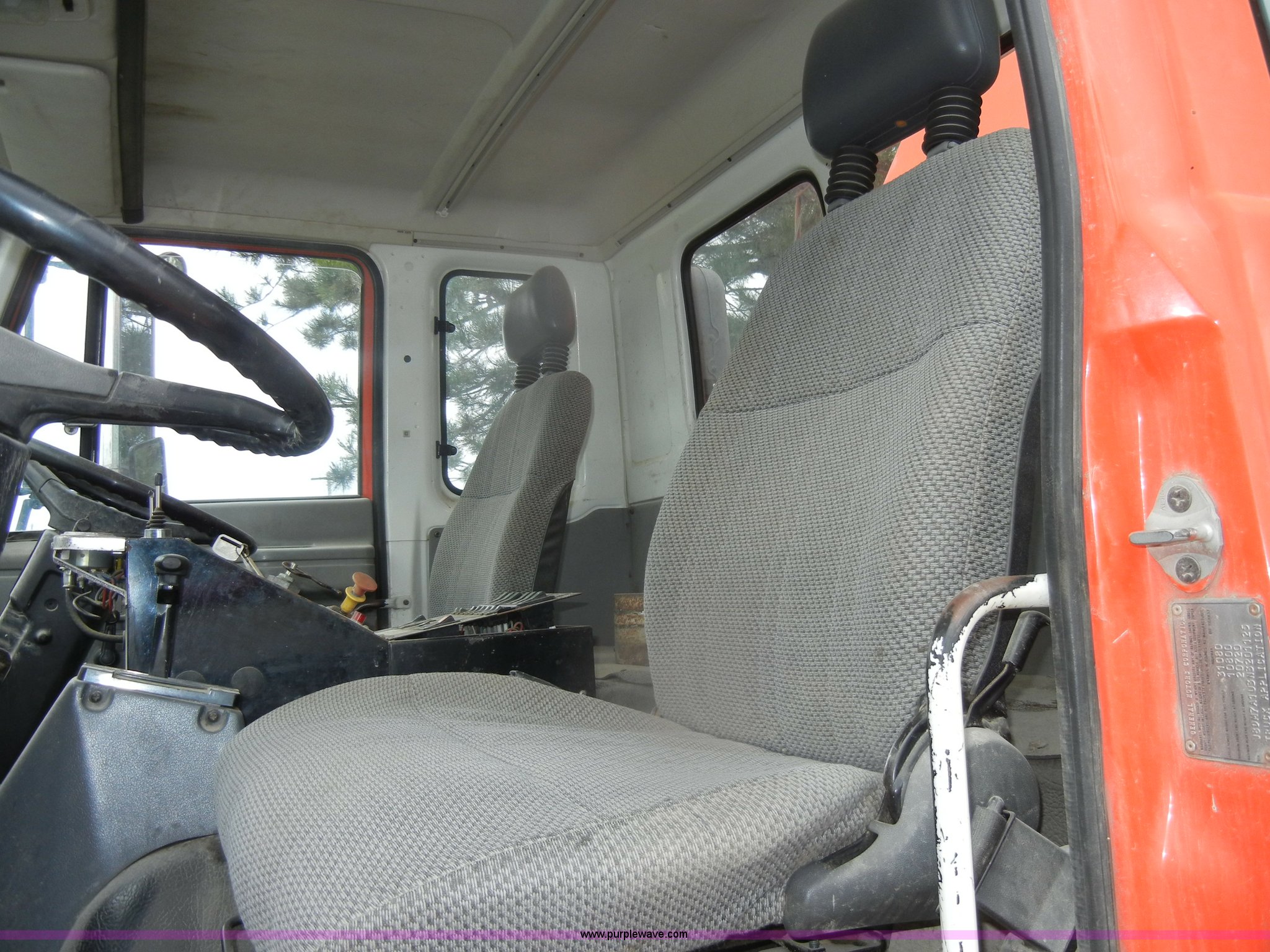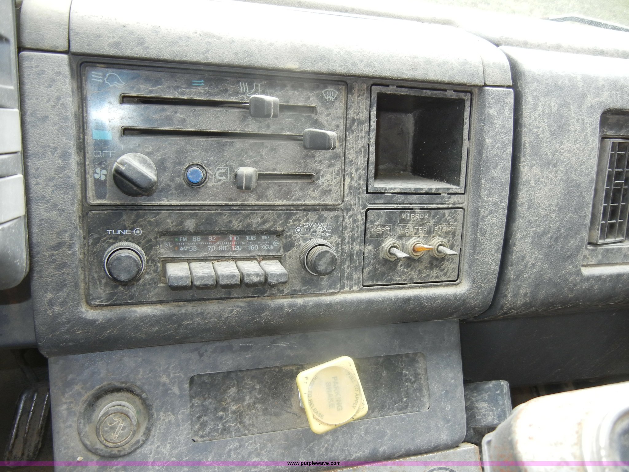 Purple Wave is selling a used Street Sweeper Truck in Kansas. This item is a 1992 GMC Johnston 600 street sweeper with the following: 9,092 hours on meter, 165,254 miles on odometer, Auxiliary diesel engine, Perkins 1004-4, 5,246 hours on meter, Inter-cooled, Automatic transmission, Heat, AM/FM, Power steering, Heated mirrors, Manual windows and locks, Cloth interior, 55" center broom, (2) 18" outer brooms, 2,000 gallon water tank, Air brakes, Spring suspension, Front tow hooks, Chelsea PTO, Backup alarm, 11R22.5 tires, GVWR 31,080 lbs, FAWR 10,800 lbs, RAWR 20,720 lbs, Manual included, Wiper blades need replaced, Interior/exterior cosmetic damage, Side suction hose missing on one unit, Needs ignition switch for rear unit, Must be hot wired to operate
