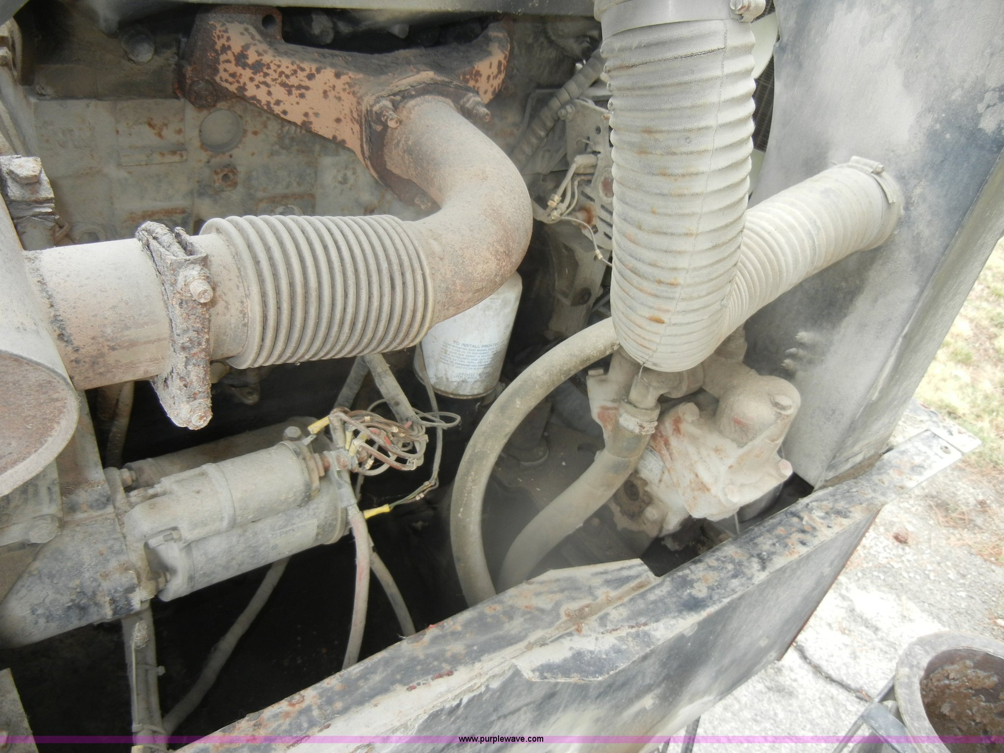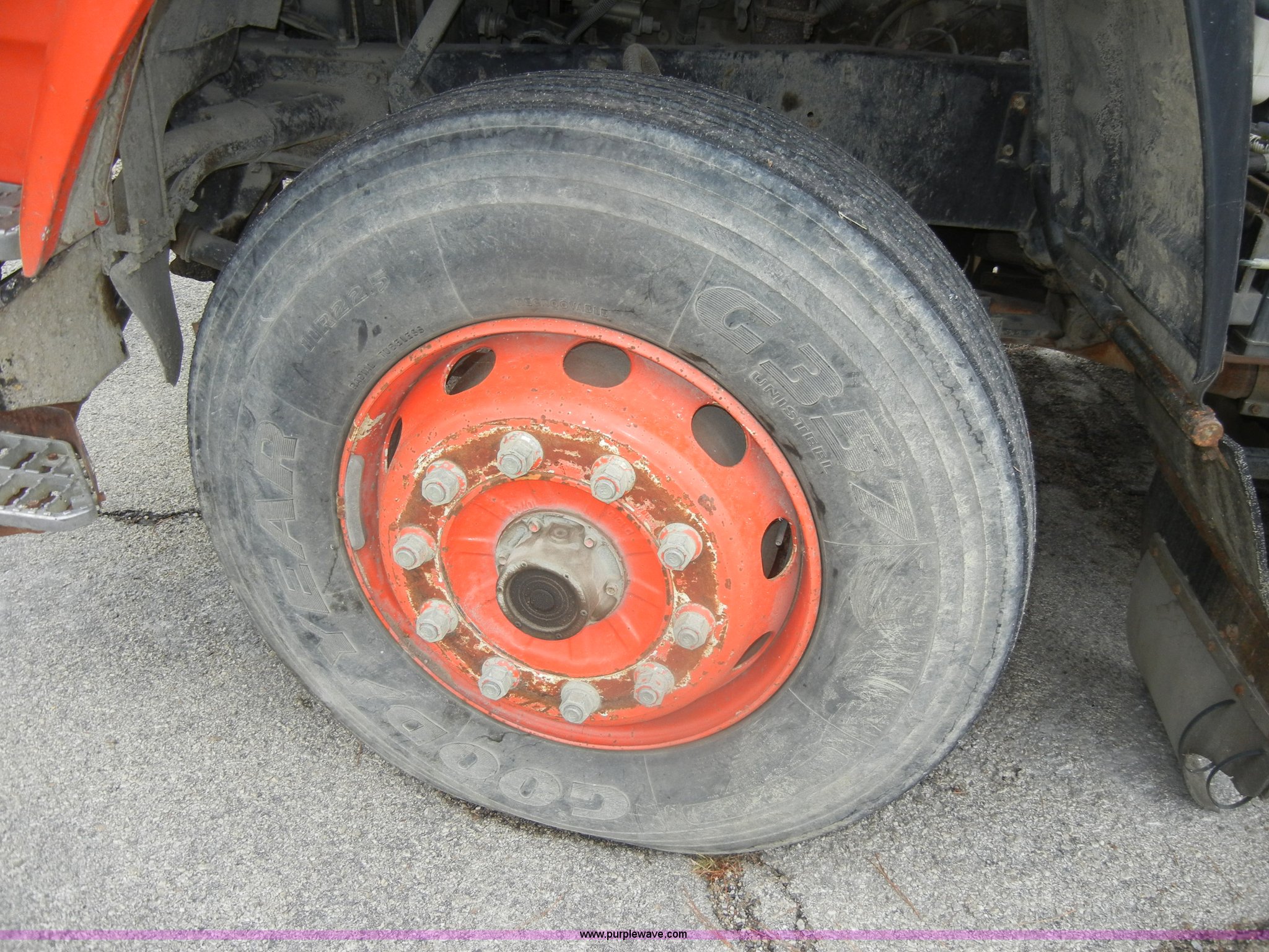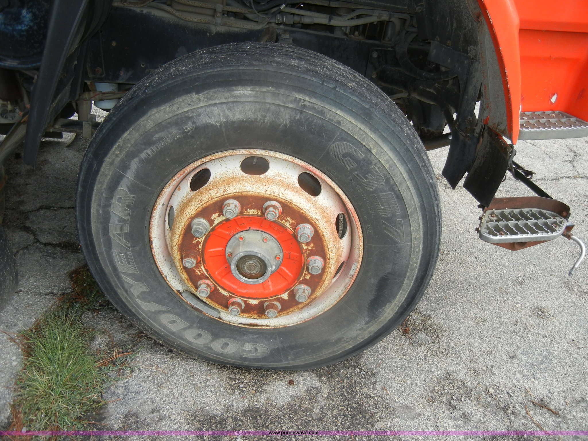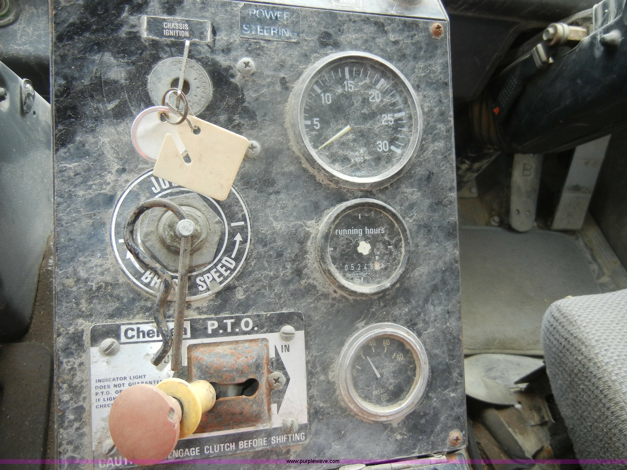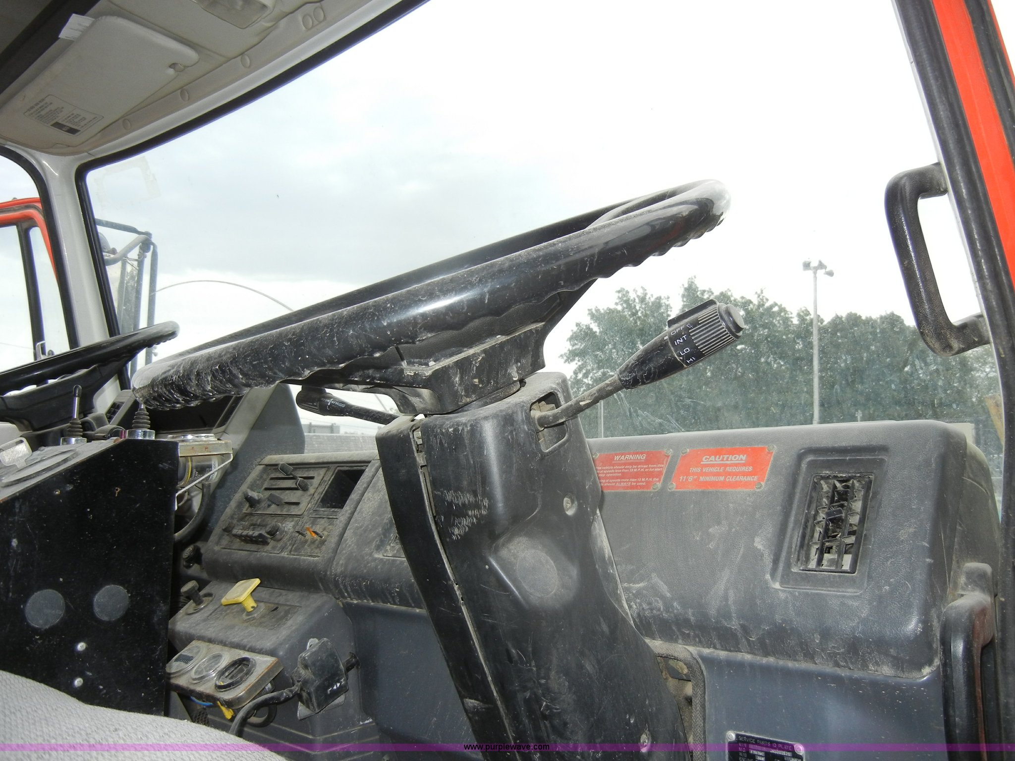 Purple Wave is selling a used Street Sweeper Truck in Kansas. This item is a 1992 GMC Johnston 600 street sweeper with the following: 9,092 hours on meter, 165,254 miles on odometer, Auxiliary diesel engine, Perkins 1004-4, 5,246 hours on meter, Inter-cooled, Automatic transmission, Heat, AM/FM, Power steering, Heated mirrors, Manual windows and locks, Cloth interior, 55" center broom, (2) 18" outer brooms, 2,000 gallon water tank, Air brakes, Spring suspension, Front tow hooks, Chelsea PTO, Backup alarm, 11R22.5 tires, GVWR 31,080 lbs, FAWR 10,800 lbs, RAWR 20,720 lbs, Manual included, Wiper blades need replaced, Interior/exterior cosmetic damage, Side suction hose missing on one unit, Needs ignition switch for rear unit, Must be hot wired to operate