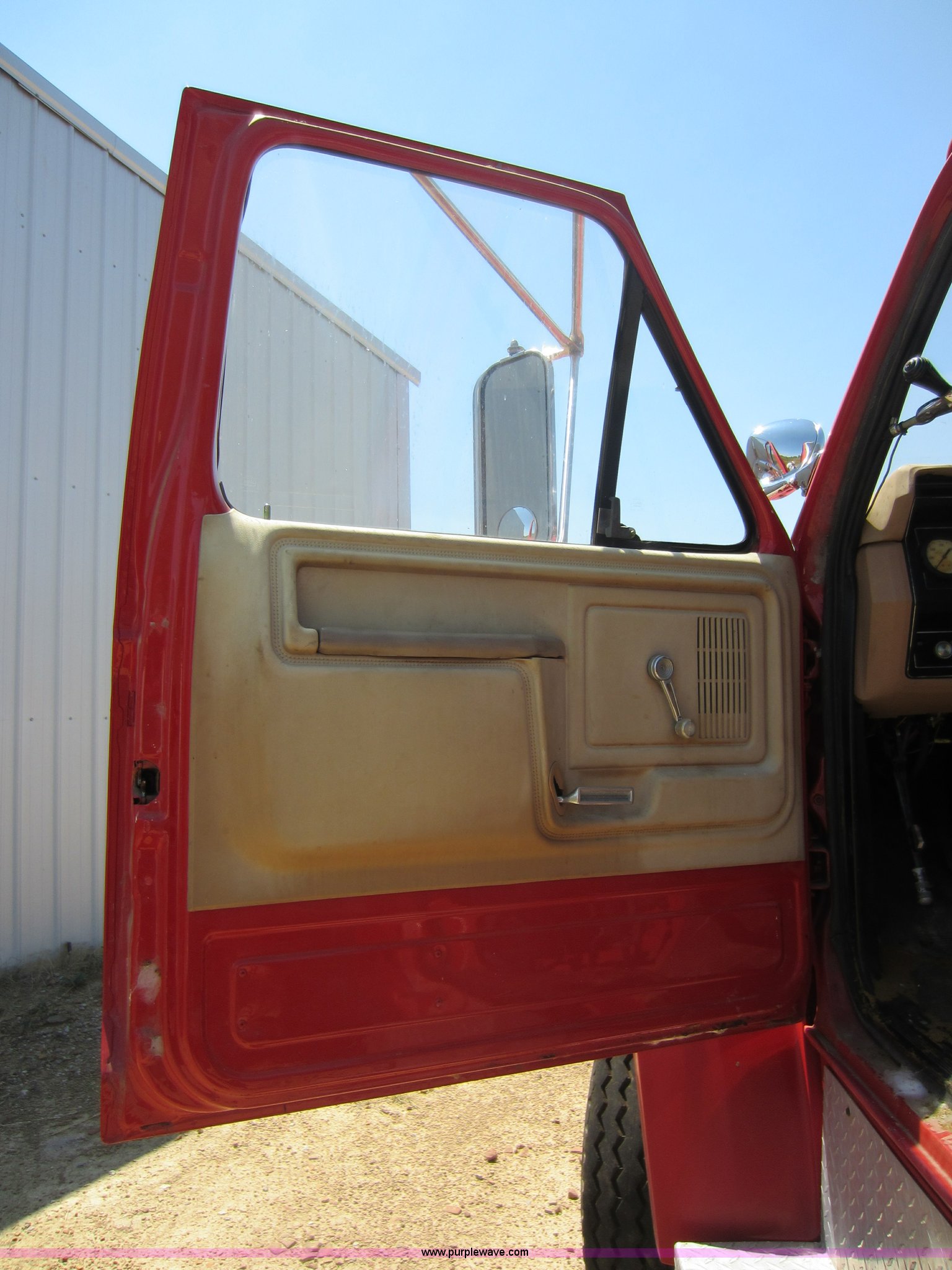 Purple Wave is selling a used Truck Chassis in Oklahoma. This item is a 1983 Ford F700 truck cab and chassis with the following: 16,343 actual miles, No engine, Spare engine will be included, Five speed transmission, Two speed rear end, Heat, GVWR 27,500 lbs