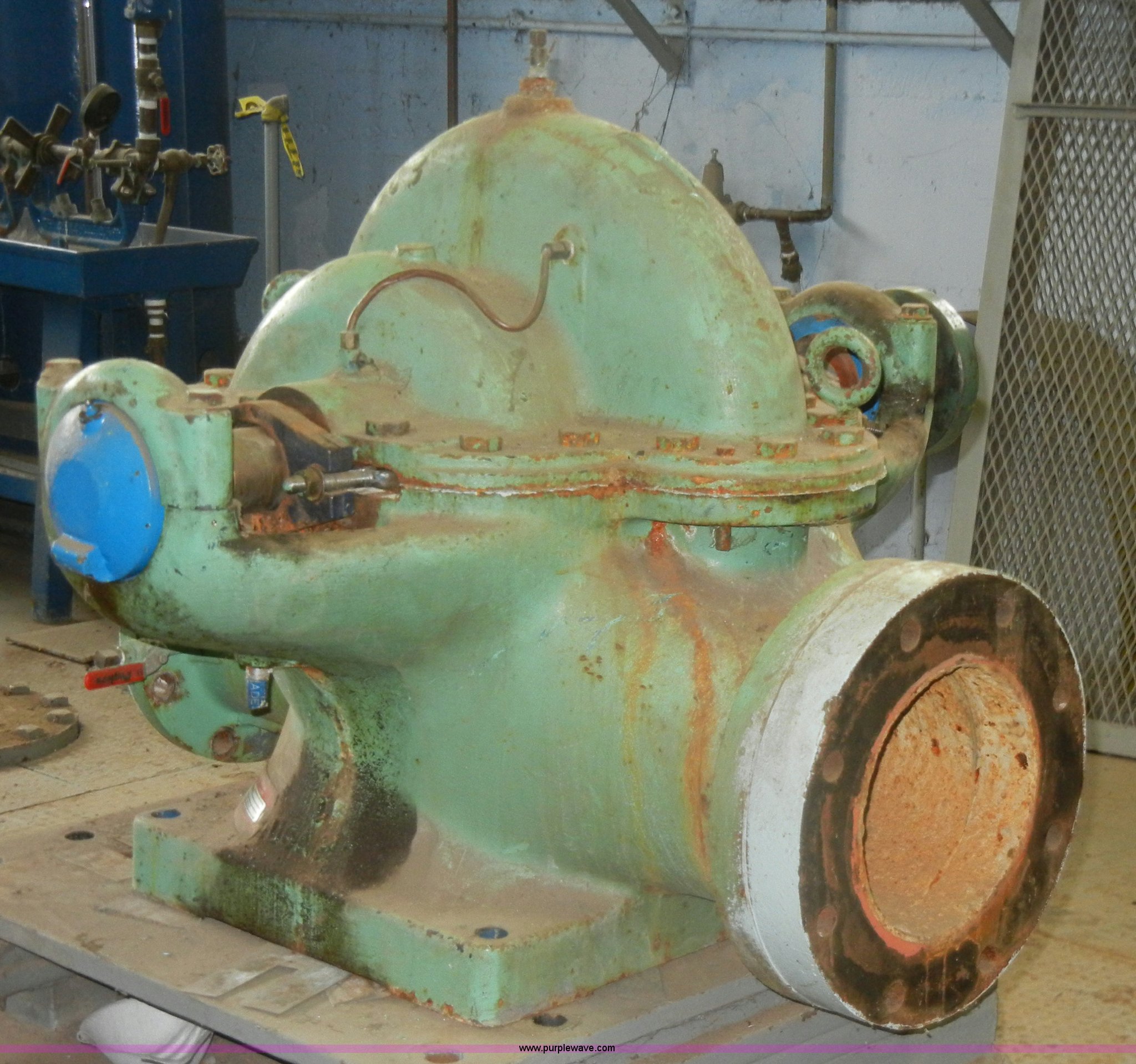 Purple Wave is selling a used Pump in Kansas. This item is a 1953 Fairbanks Morse 5823 centrifugal split case water pump with the following: 8" suction inlet, 6" discharge outlet, 2,300 gpm at 134' of head at 1,750 rpm, Basic standard fitted HSC pump with mechanical seals, impeller, and casing wear rings, Was used with 100 HP motor, Serial K3T1-059578-0