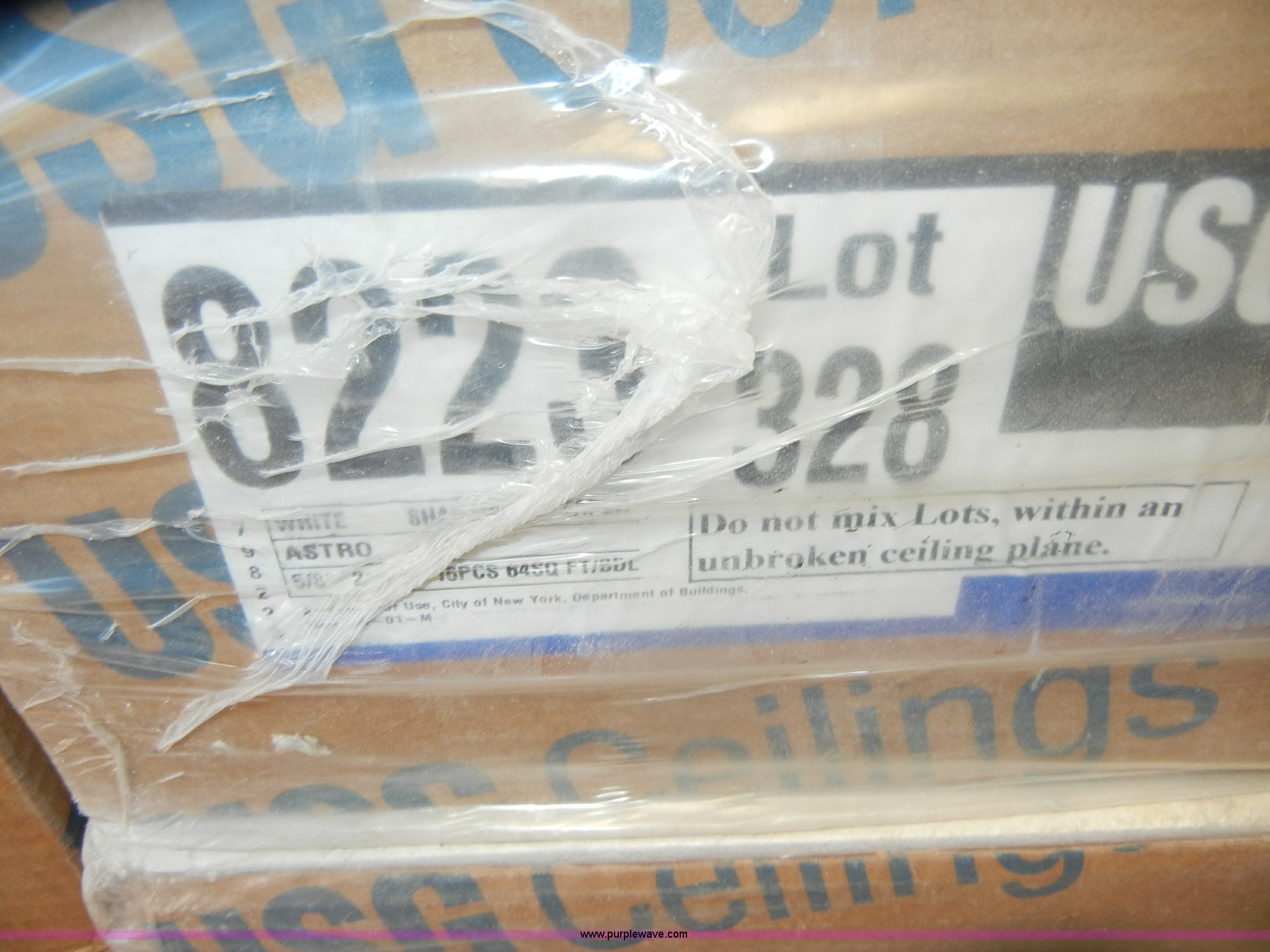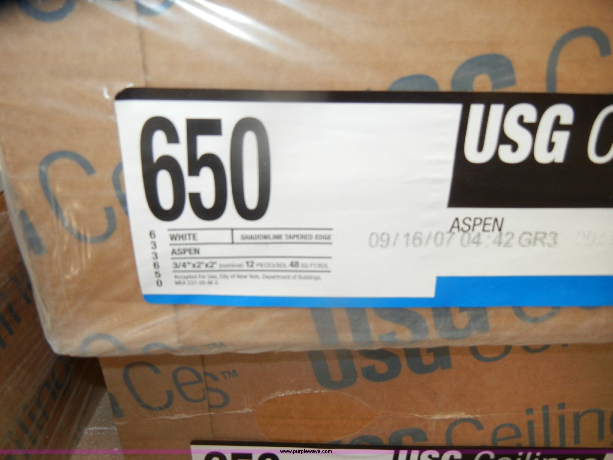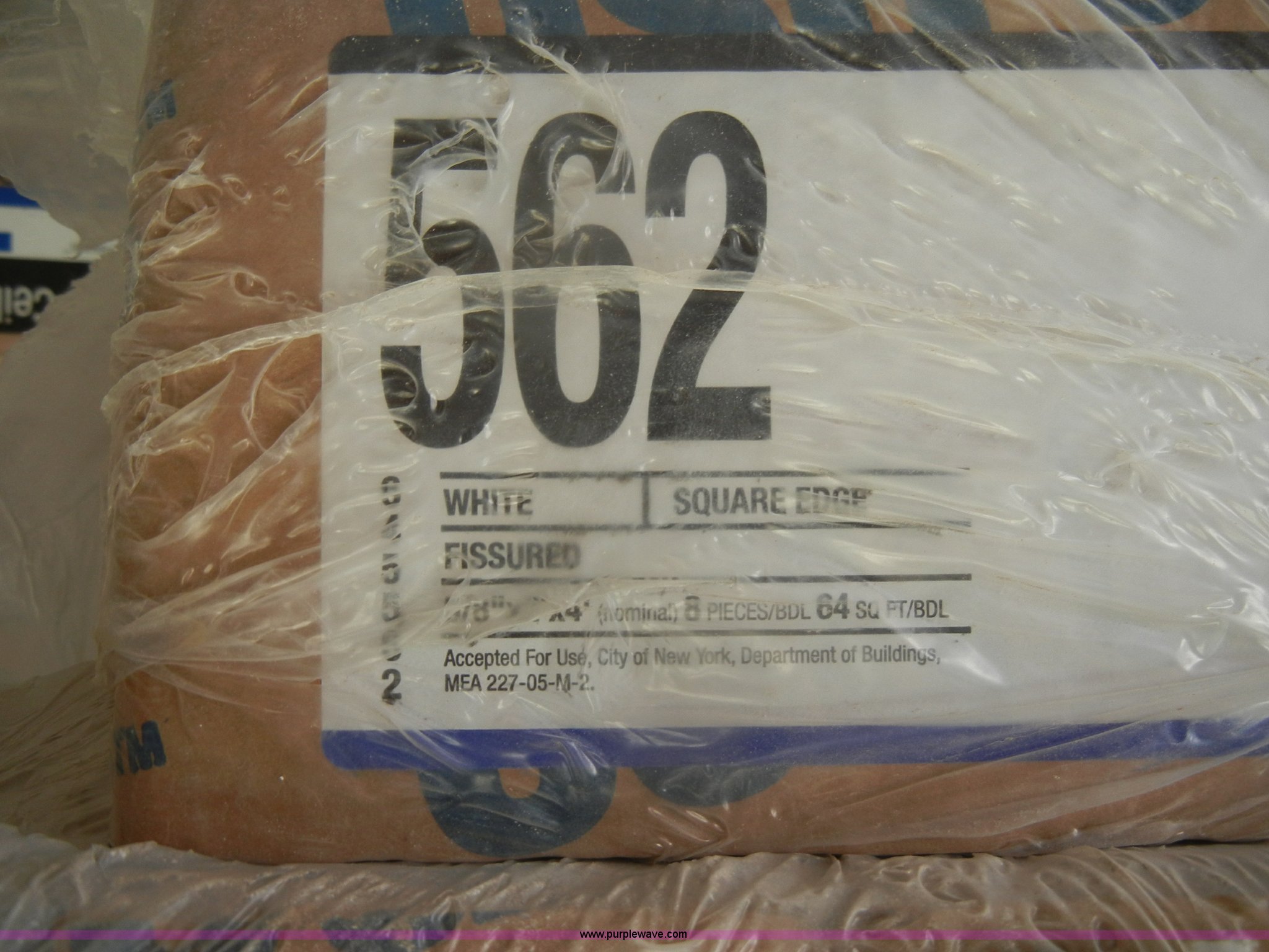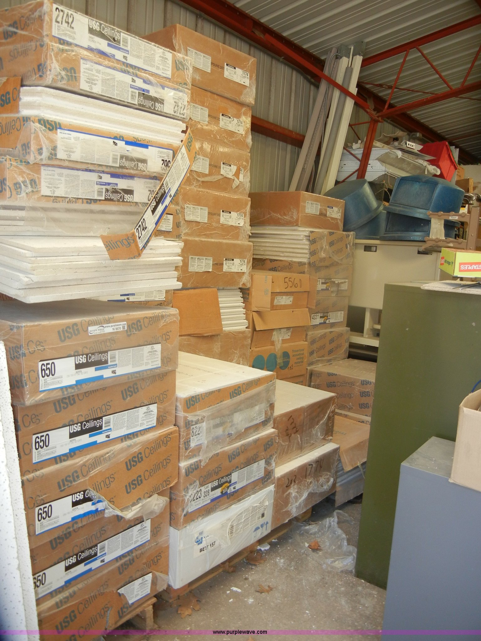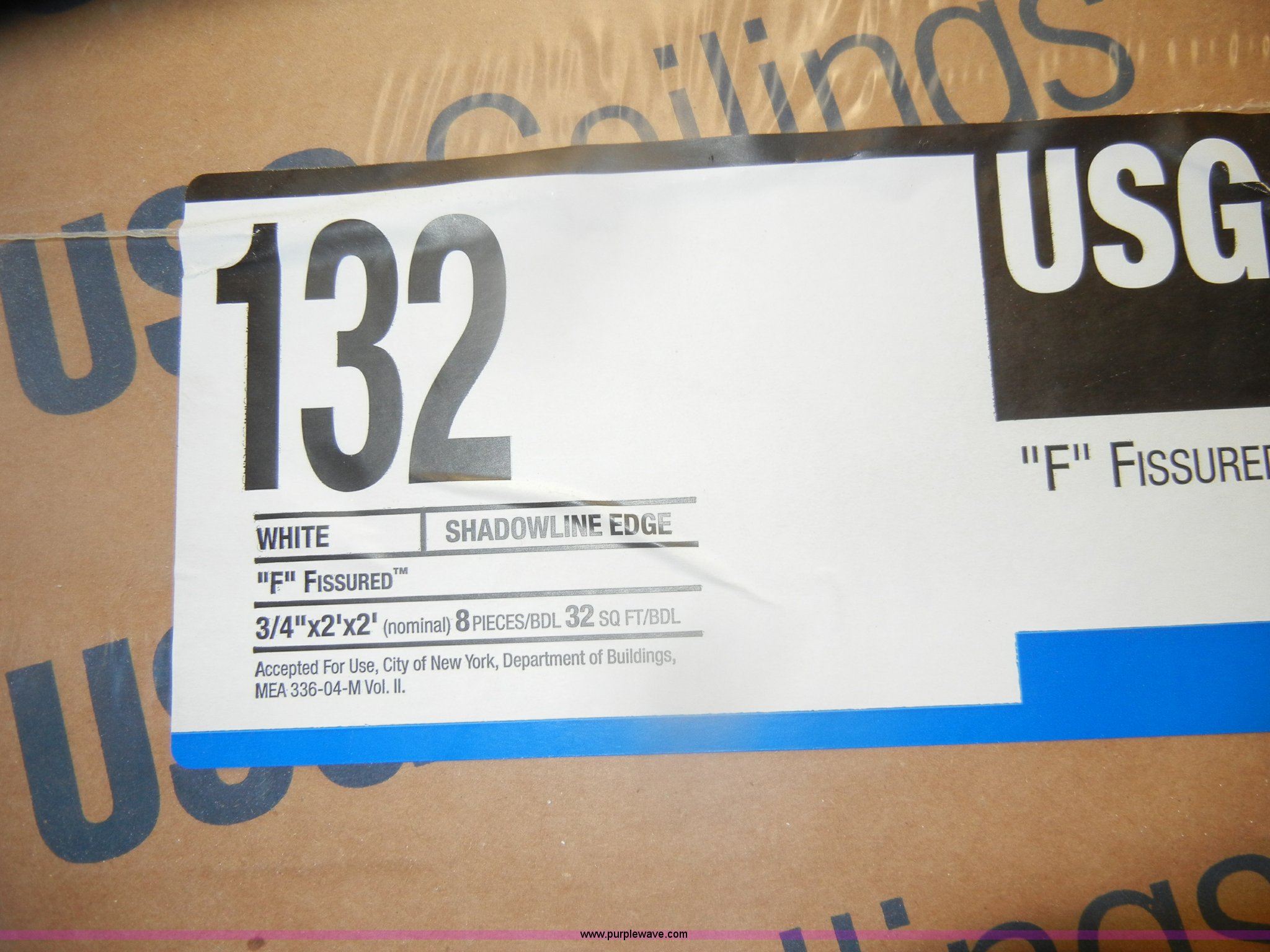 Purple Wave is selling a used Home Improvement in Kansas. This item is a Assorted boxes of ceiling tile with the following: USG, 2' x 2' x 5/8", (15) cases, 16/case, 2' x 2' x 3/4", (17) cases, 12/case,, Celotex, 2' x 2' x 5/8", (5) cases, 16/case,, Armstrong, 2' x 2' x 5/8", (11) cases, 16/case, 2' x 2' x 7/8", (6) cases, 10/case,