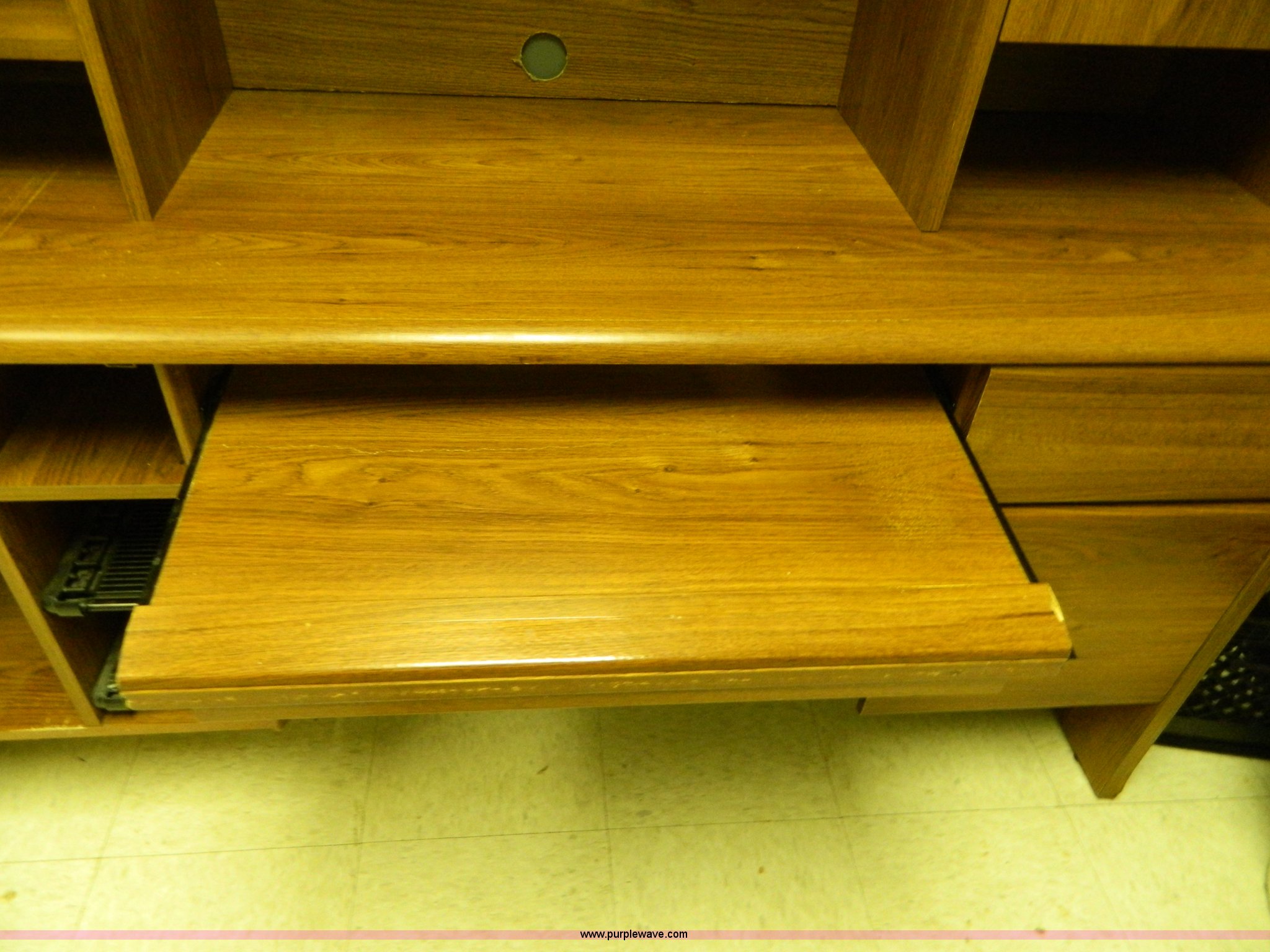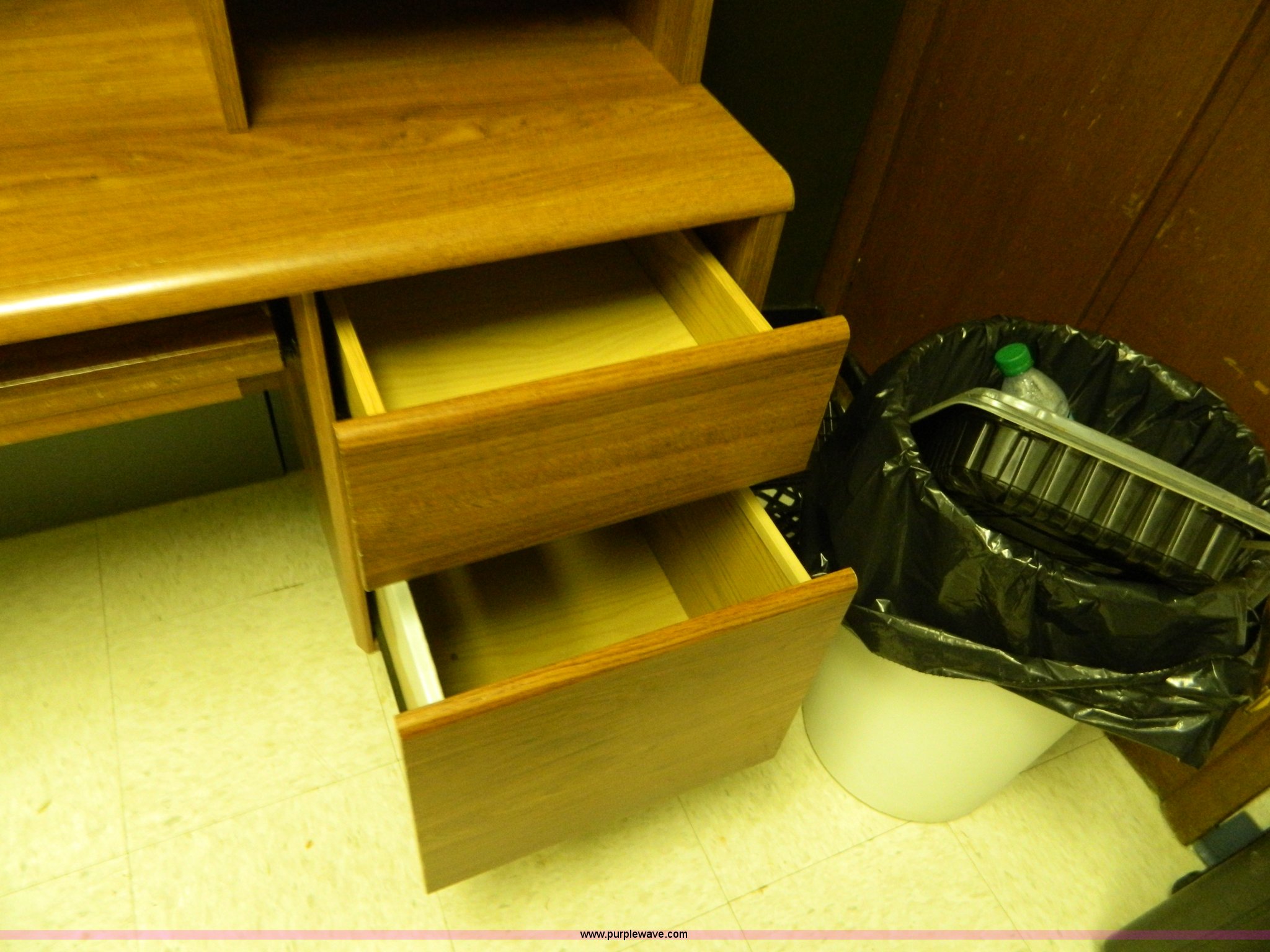 Purple Wave is selling a used Furniture in Kansas. This item is a Pressed wood computer desk with the following: Key included