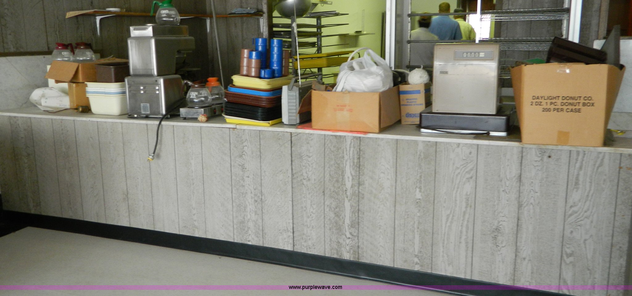 L-shape marble counter top. 26'L, 50" return, Contents not included. Shipping quotes available. City of Hoisington. 109 E 1st St. Hoisington, KS 67544