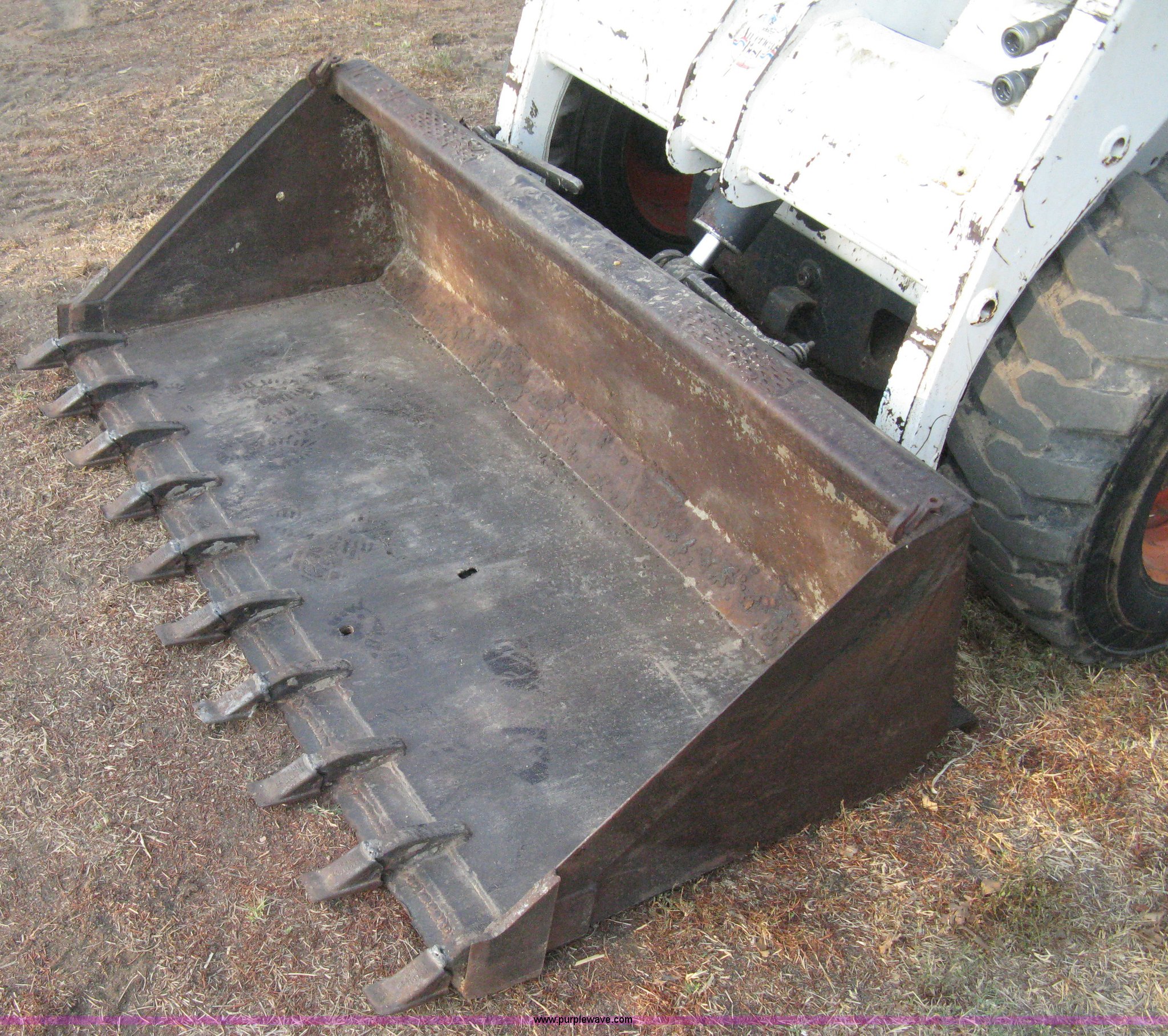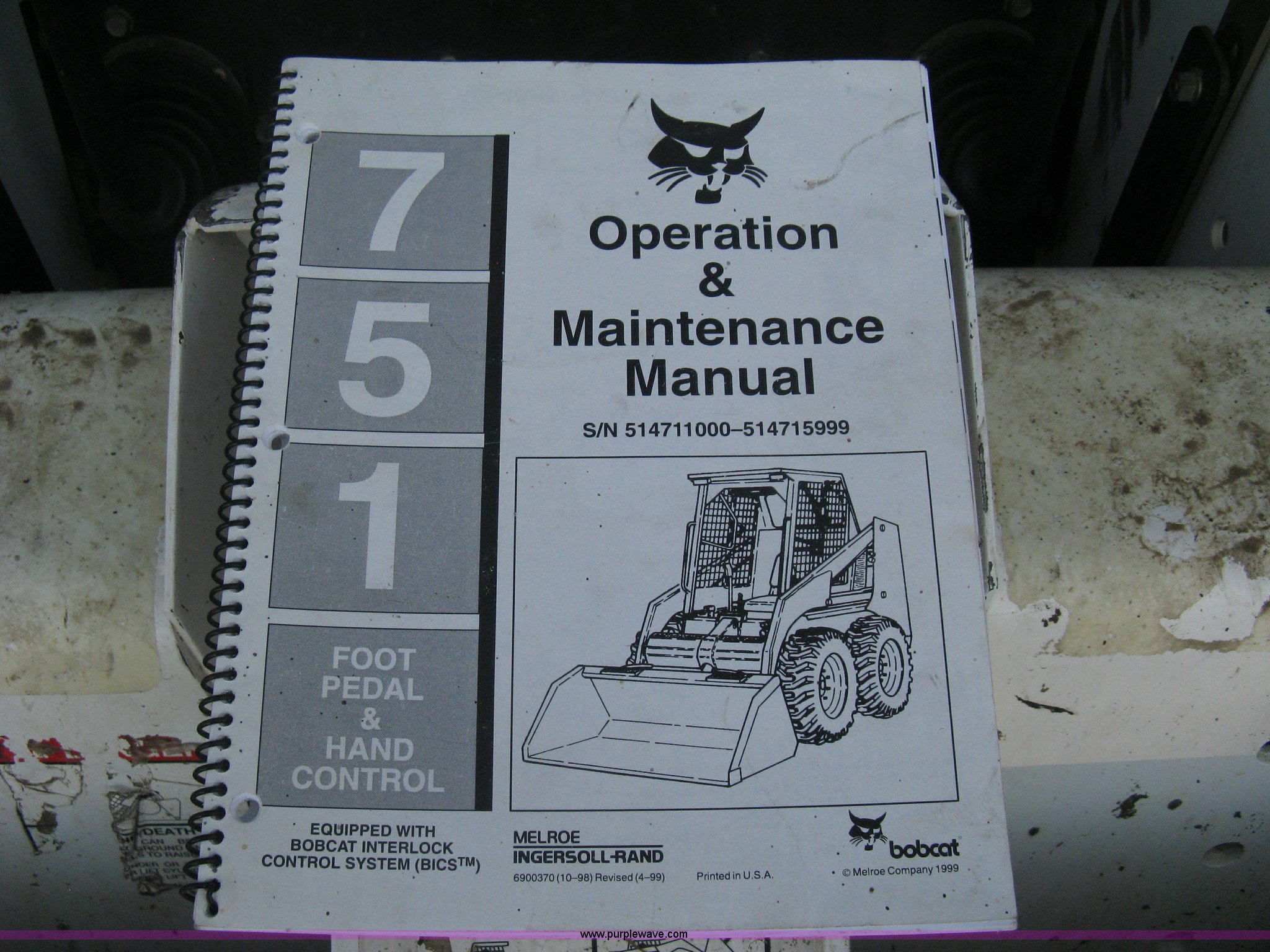 Purple Wave is selling a used Skid Steer Loader in Kansas. This item is a 1995 Bobcat 751C skid steer with the following: 1,982 hours on meter, Four cylinder diesel engine, Hydrostatic transmission, OROPS, Foot pedal loader control, Auxiliary hydraulics, Quick attach loader, 62" toothed bucket, Work lights, 10-16.5NHS tires, 4,710 lbs. base operating weight, Manual included, Recently replaced battery, Serial 514711289