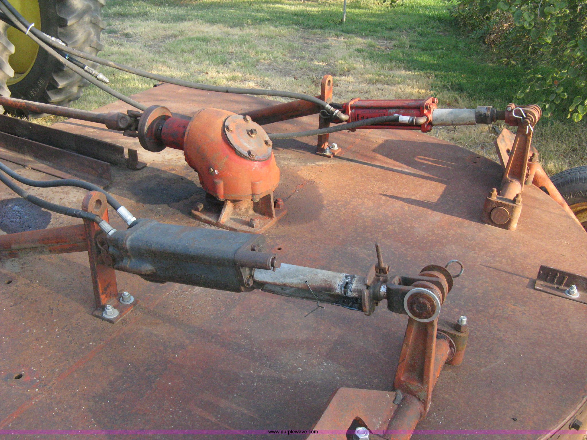 Purple Wave is selling a used Mower, Cutter, Shredder in Kansas. This item is a Servis Gyro-84 rotary mower with the following: 7'W cut, 87"W deck, Converted to hydraulic lift, 540 PTO, (2) dolly wheels, 14" wheels, five lug, Manuals, Original hand crank included