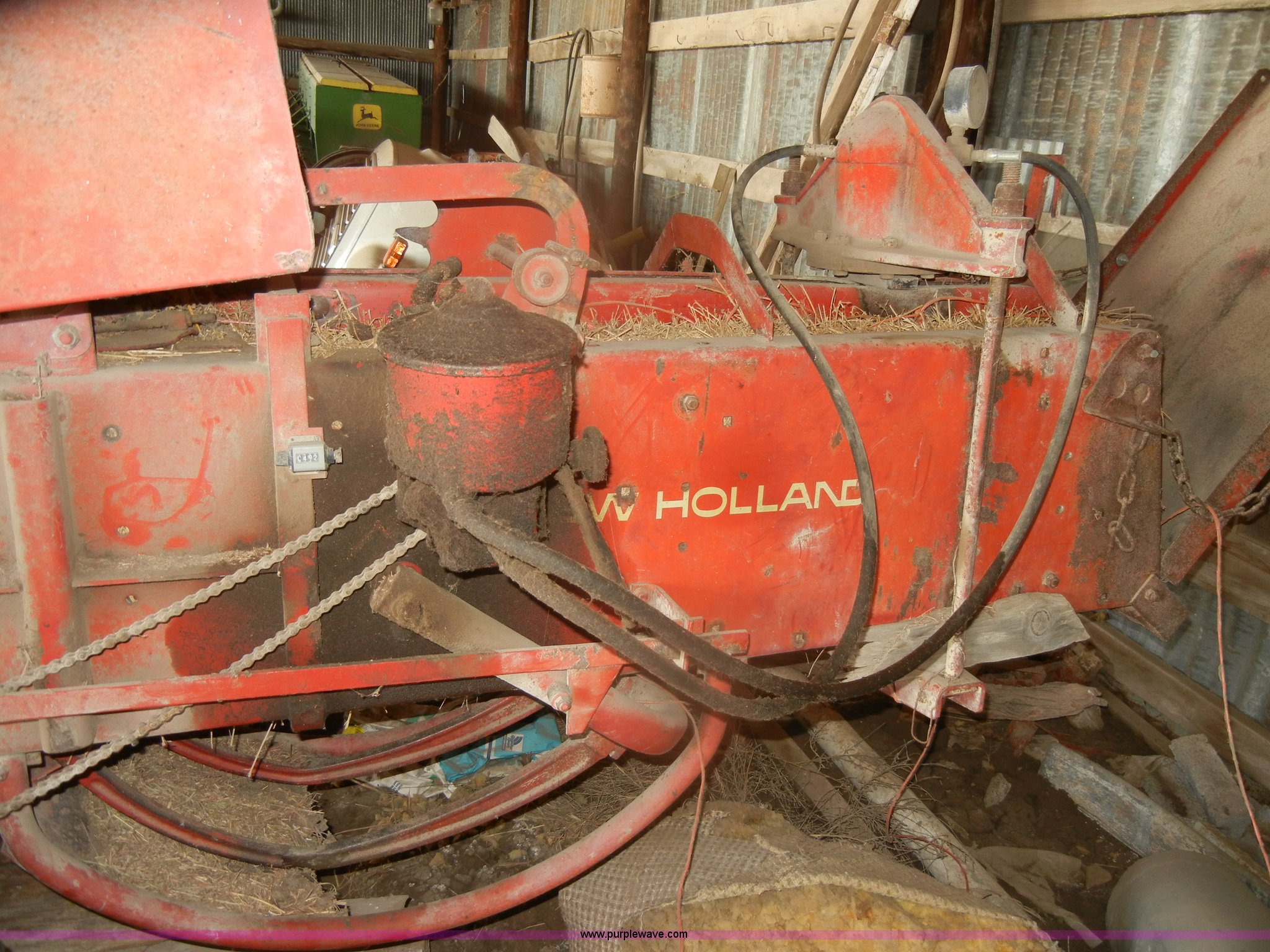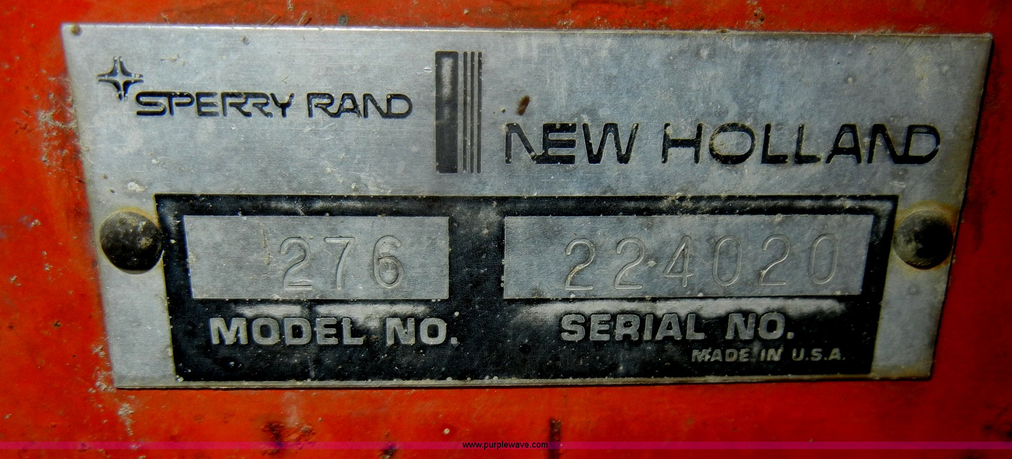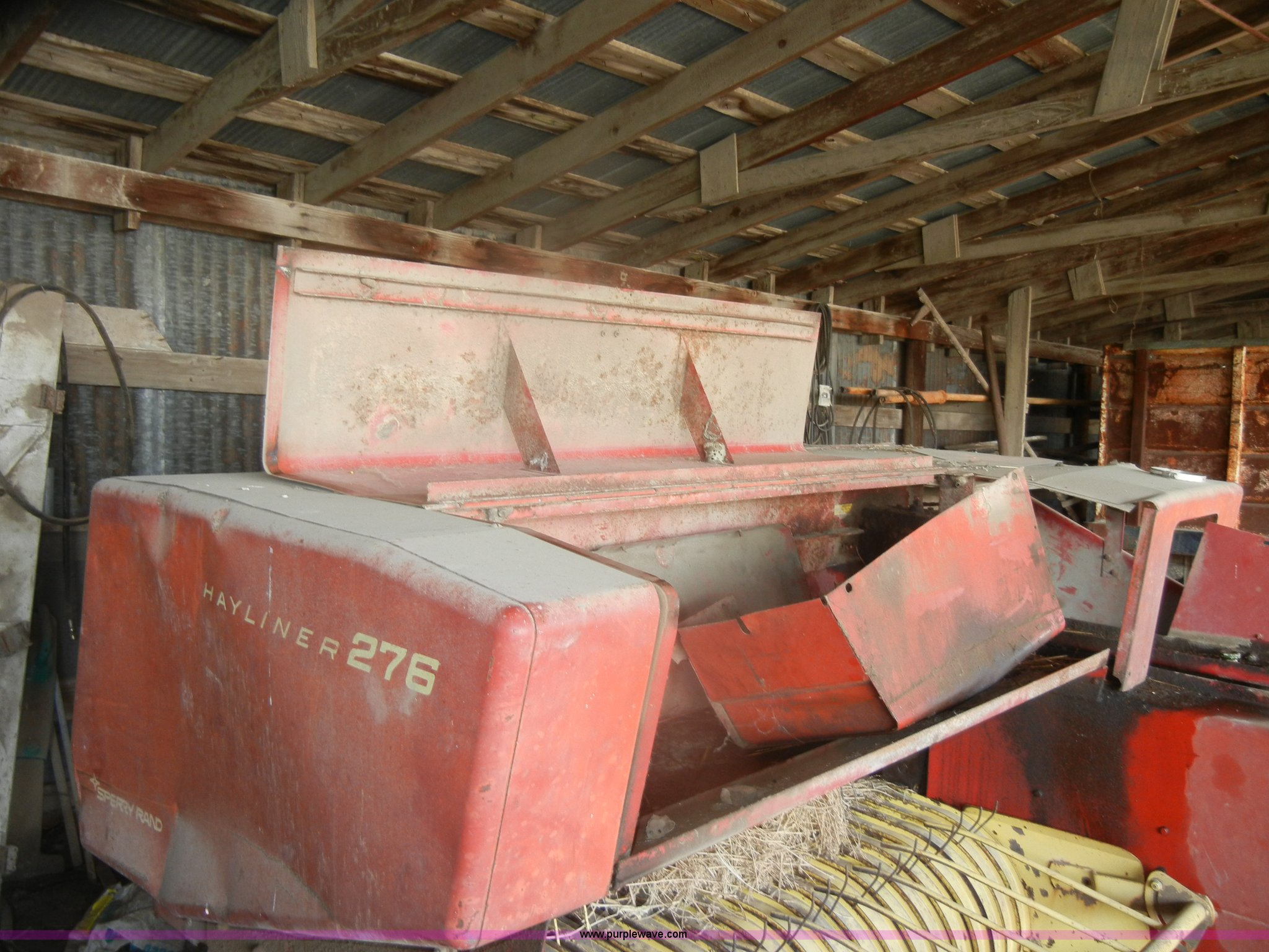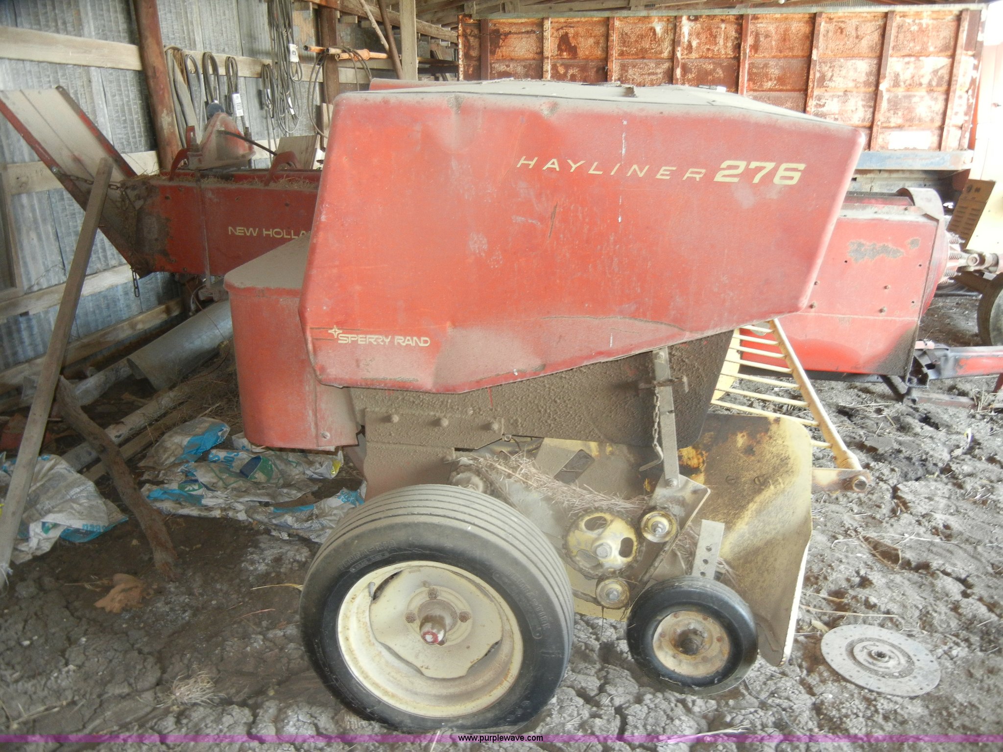 Purple Wave is selling a used Square Baler in Kansas. This item is a New Holland 276 small square baler with the following: 540 PTO, Pin hitch, Hydraulic tightener, (4) twine bays, 15" tires, Knotters rebuilt 800 bales ago, Not used in two years, Main gearbox seal seeps, Some covers missing, Serial 224020