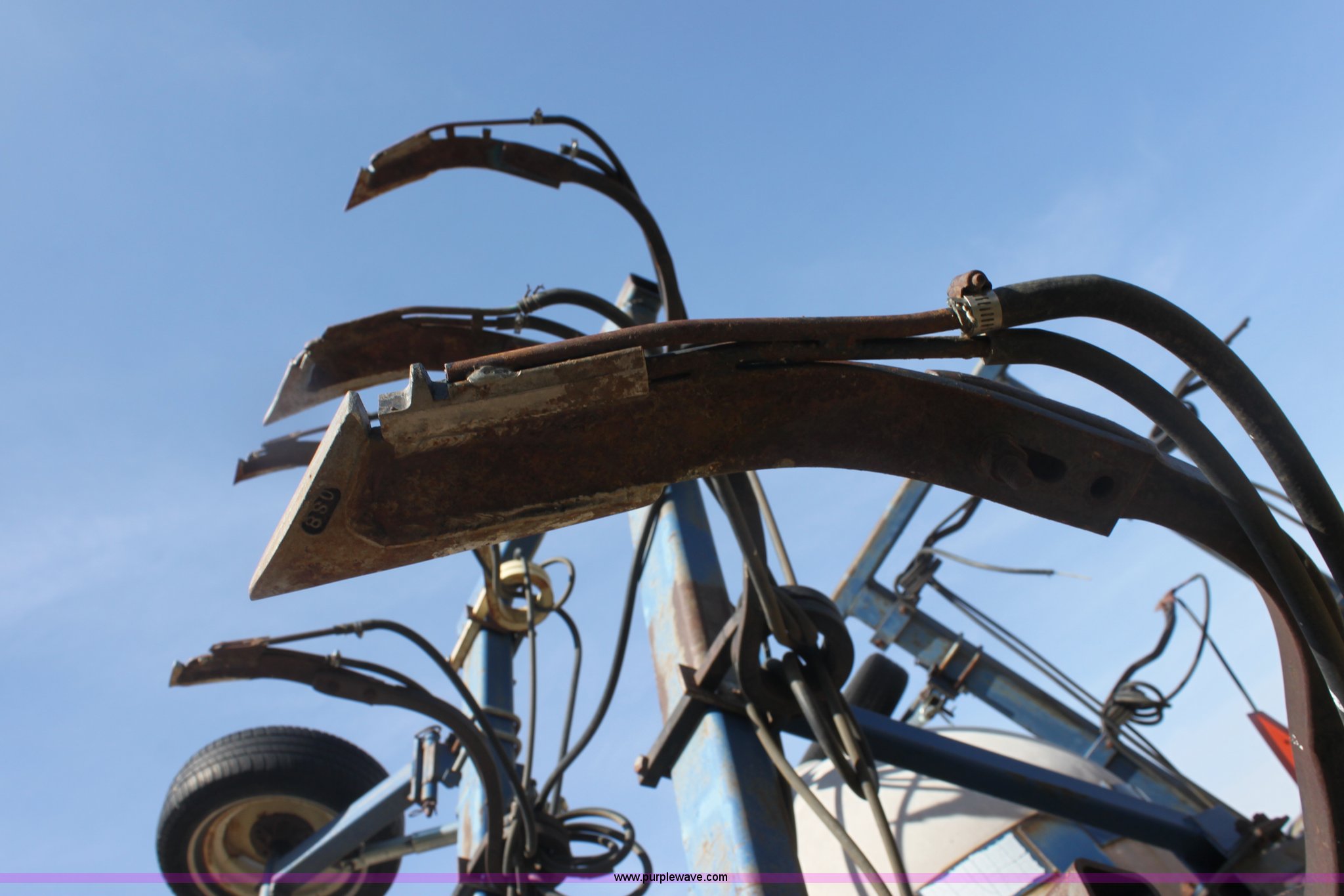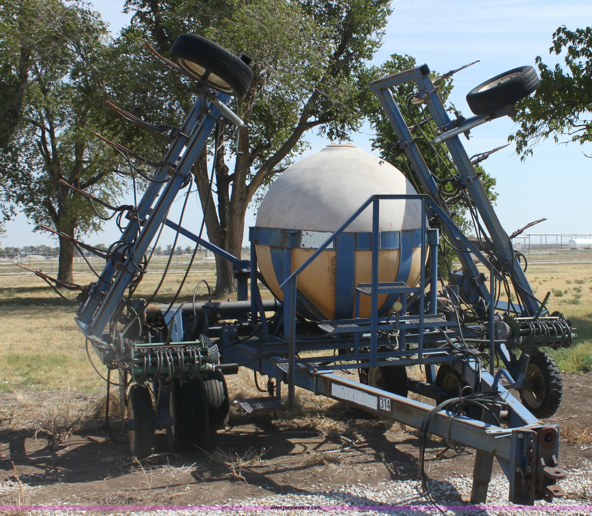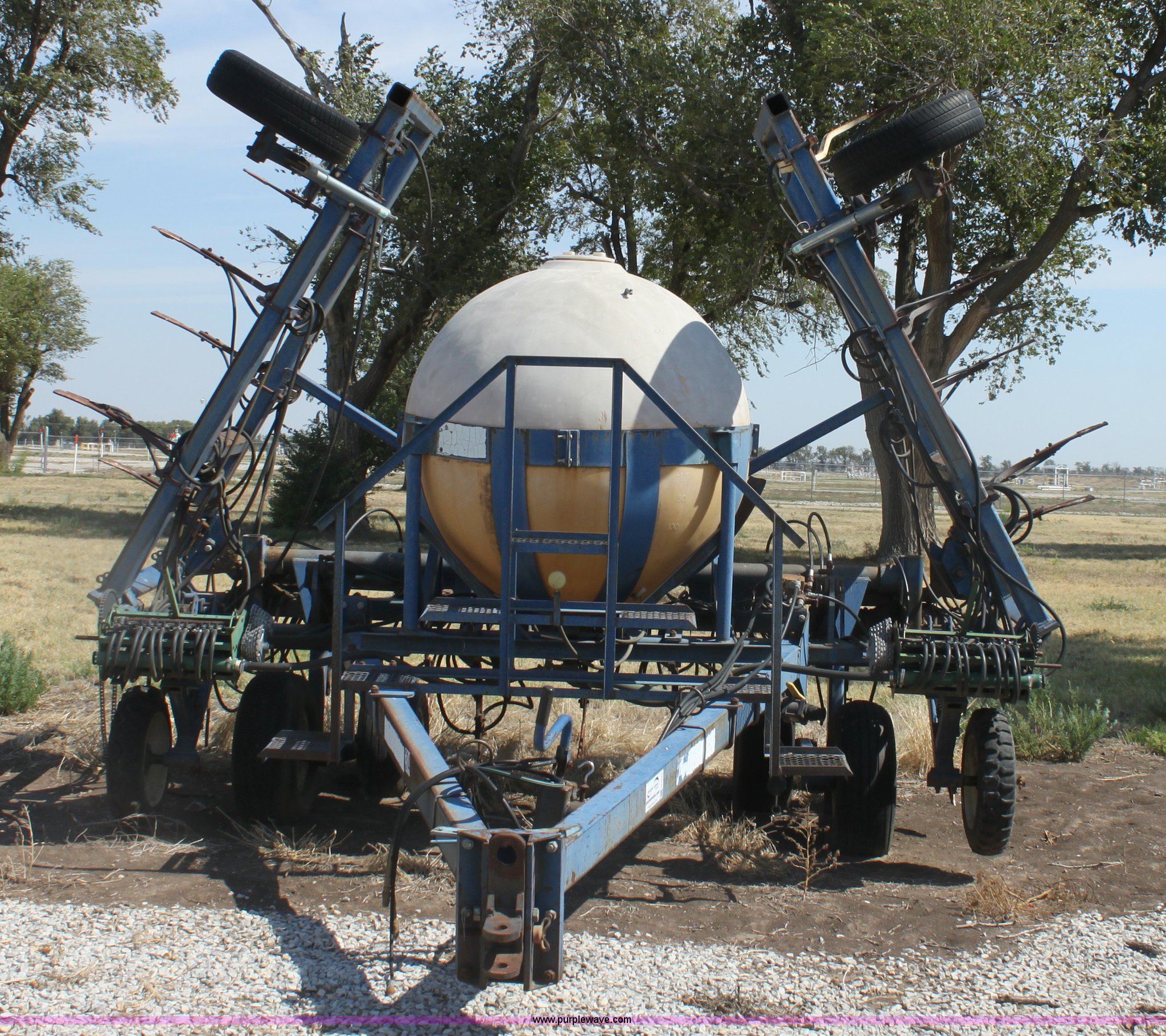 Purple Wave is selling a used Applicator Pull Type in Kansas. This item is a Land Walker Blu-Jet anhydrous ammonia applicator with the following: 32'W, Hydraulic folding wings, Hydraulic height adjustment, 14" knives, 500 gallon tank, Adjustable pin hitch, 11L-15 tires