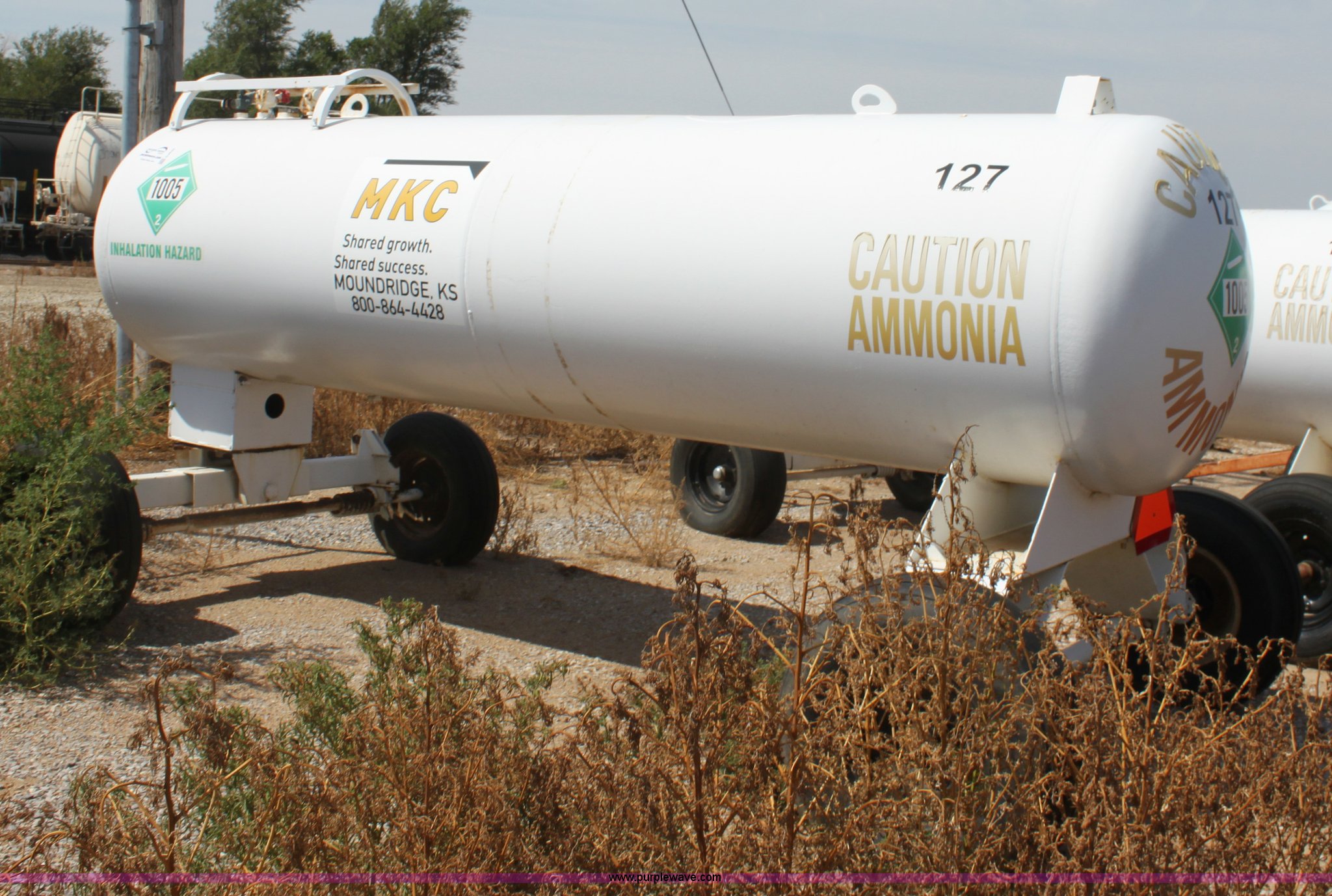 1,000 gallon anhydrous ammonia tank. Top mount valves, Pin hitch, 11L-15 tires, Unit did not pass DOT inspection. Shipping quotes available. Mid Kansas Coop. 1361 Conway Trail. Conway, KS 67460