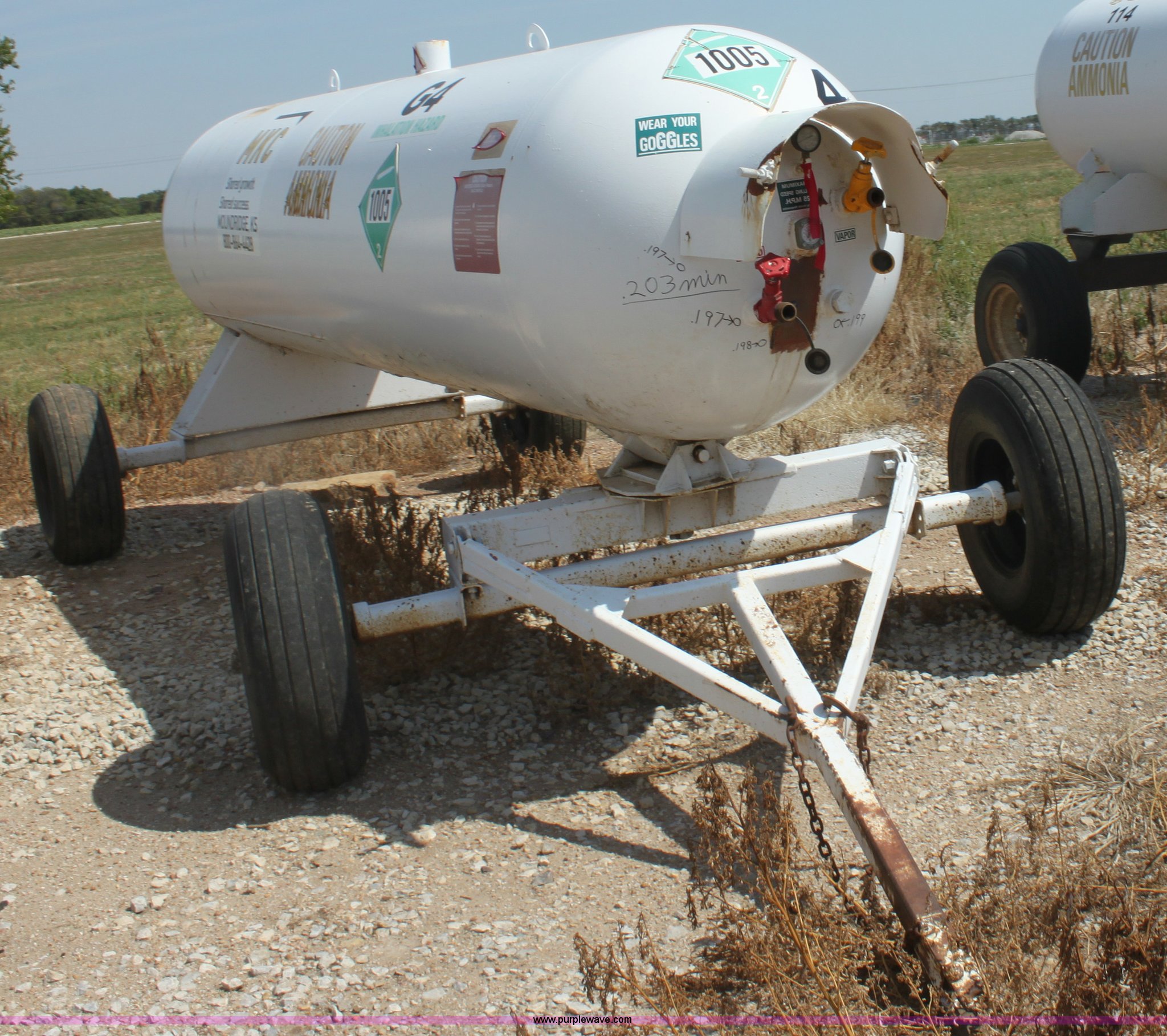 Purple Wave is selling a used Applicator Attach. in Kansas. This item is a 1,000 gallon anhydrous ammonia tank with the following: Front mount valves, Pin hitch, 11L-15 tires, Unit did not pass DOT inspection