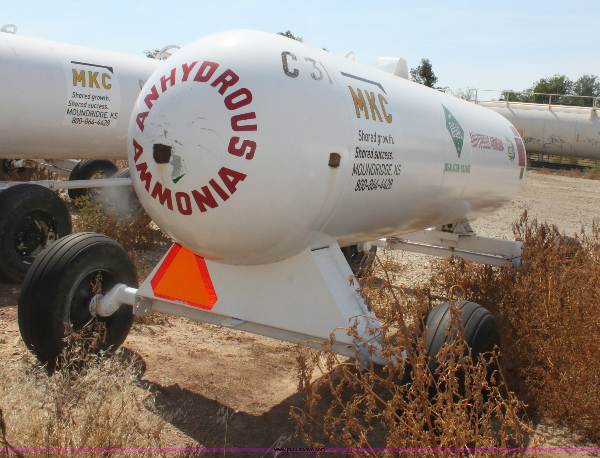 1,000 gallon anhydrous ammonia tank. Front mount valves, Pin hitch, 11L-15 tires, Unit did not pass DOT inspection. Shipping quotes available. Mid Kansas Coop. 1361 Conway Trail. Conway, KS 67460