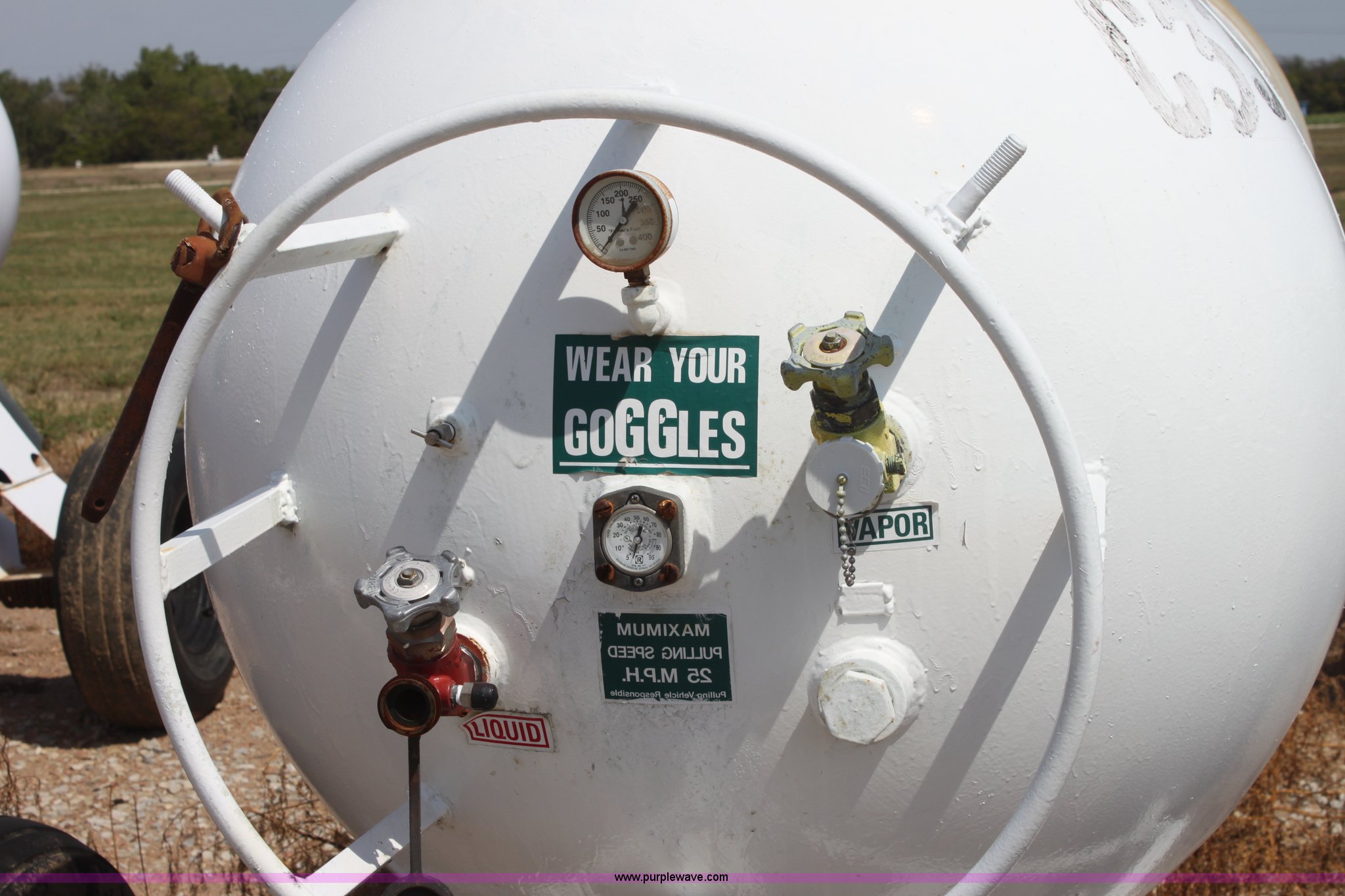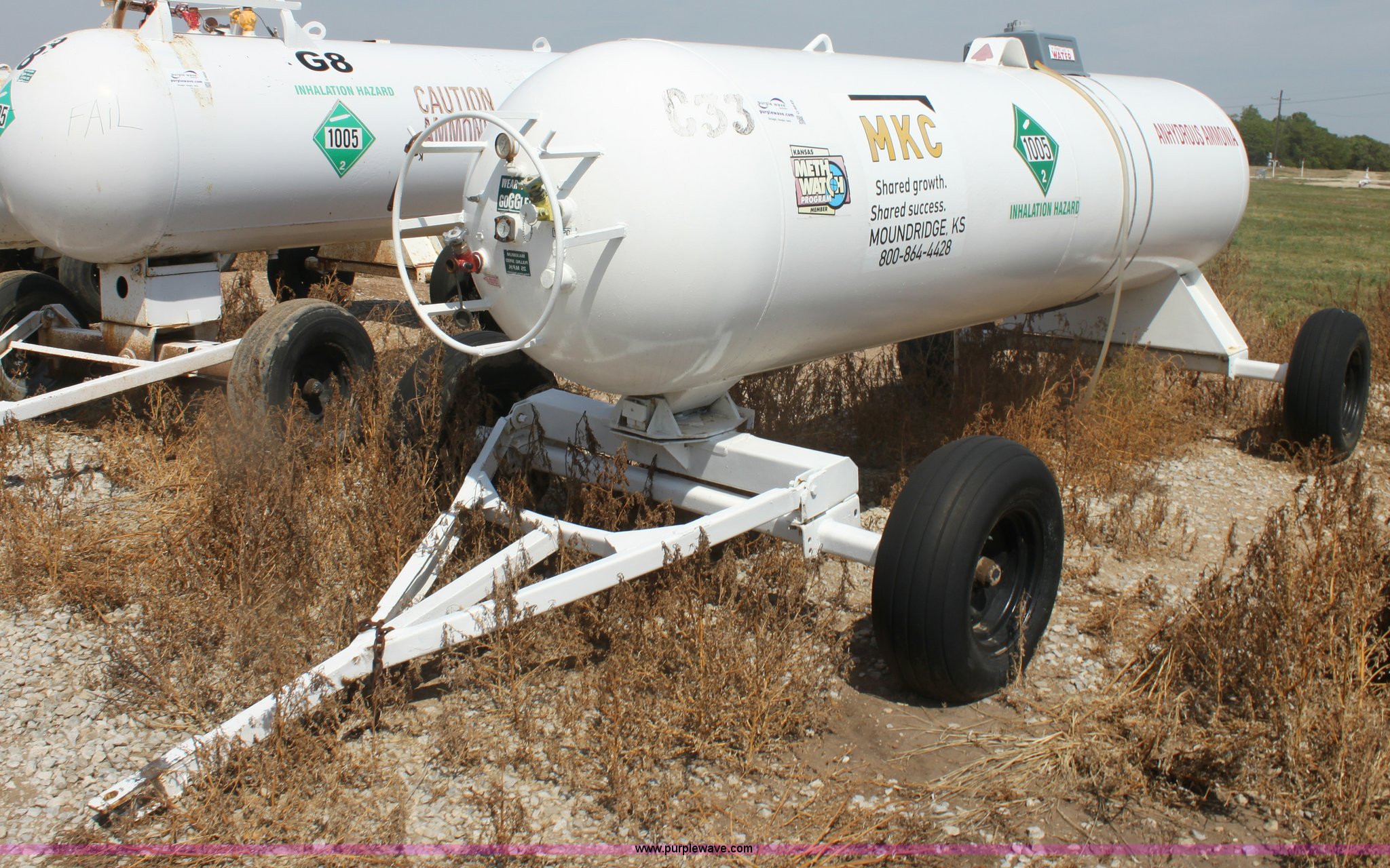 Purple Wave is selling a used Applicator Attach. in Kansas. This item is a 1,000 gallon anhydrous ammonia tank with the following: Front mount valves, Pin hitch, 11L-15 tires, Unit did not pass DOT inspection