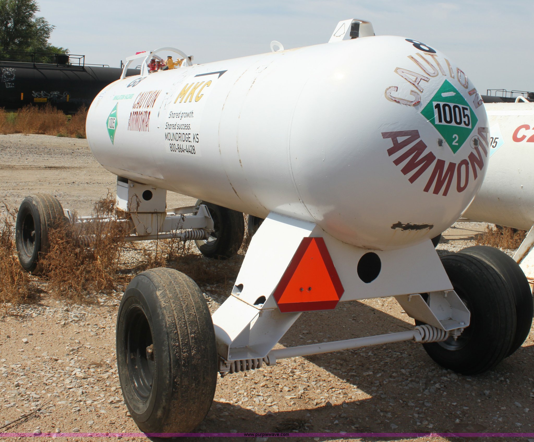 Purple Wave is selling a used Applicator Attach. in Kansas. This item is a 1,000 gallon anhydrous ammonia tank with the following: Top mount valves, Pin hitch, 11L-15 tires, Unit did not pass DOT inspection