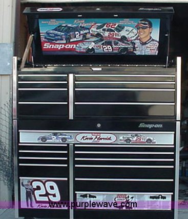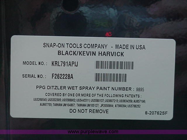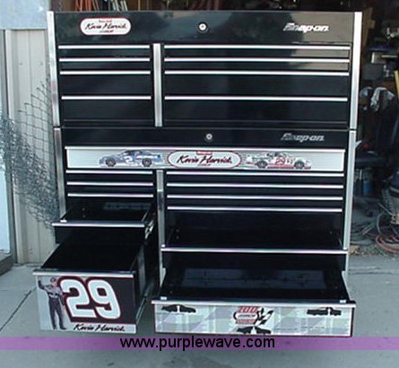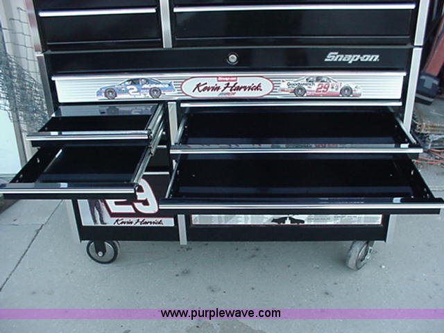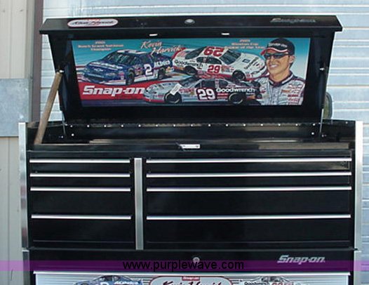 Purple Wave is selling a used Tools in Kansas. This item is a Snap-On top box double bank toolbox with the following: Model KRL761BP1J, Classic series 78, Kevin Harvick, (8) drawers, Flip up lid, 54.5"W x 24"L x 28"H, Approx. 360 lbs, Drawer liner kit, Gas struts are weak, Will be replaced, Serial F270583A