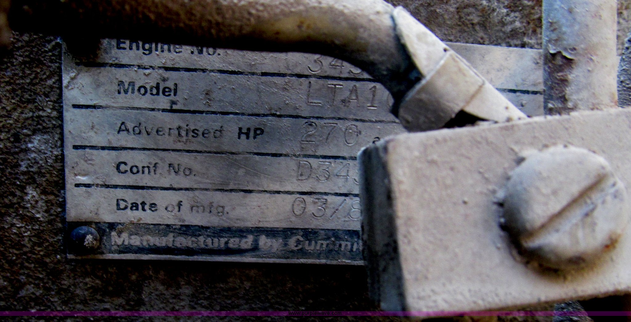 Purple Wave is selling a used Construction Dump Truck in Nebraska. This item is a 1989 Ford L9000 tandem axle dump truck with the following: 60,549 miles on odometer, 2,559 hours on meter, Cummins LTA10 10.0L L6 diesel engine, 270 HP, Road Ranger nine speed transmission, Model RT0-11707LL, Differential lock, National air ride seat, Push button start, 50 gallon fuel tank, Reiter Industries barrel dump bed, Model 1512DH, Serial 4884, Approx. 15'4"L, Custom hoist, Model 74-401-156, Single three-stage cylinder, Serial 493788, Plastic/rubber box with bolt-in liner, Air controlled Chelsea PTO, Approx. 36.5" x 20.75" x 15.25" hydraulic tank, Clearance lights, Rear exhaust stack, Air brakes, Mixer truck chassis, 222" wheelbase, Yokohama 425/65R22.5 front tires, 11R22.5 rear tires, GVWR 56,500 lbs, Interior/exterior cosmetic damage, Cracks and patches in box, Crack in box front cross-member, Front grille guard damage, EIN 2435