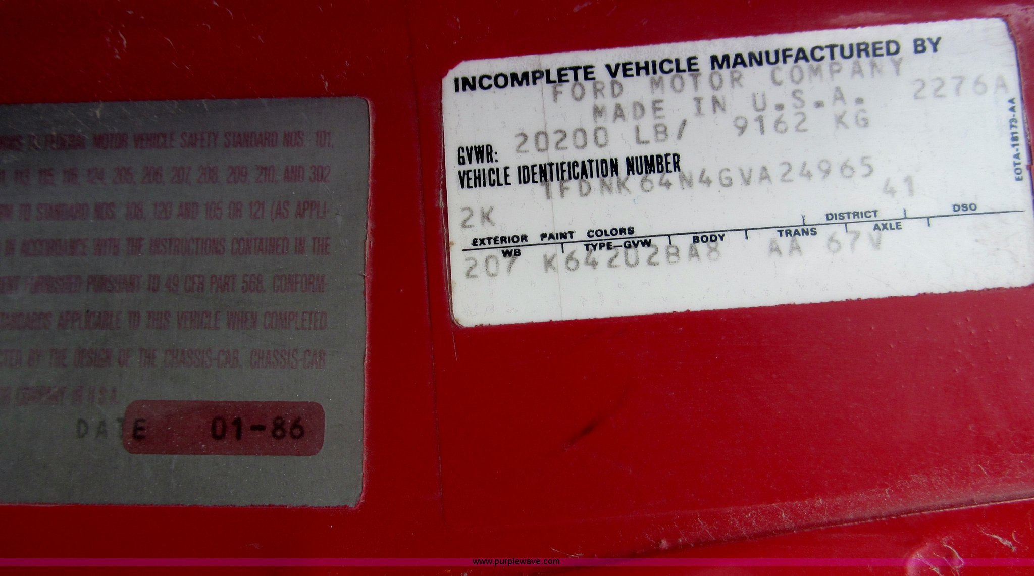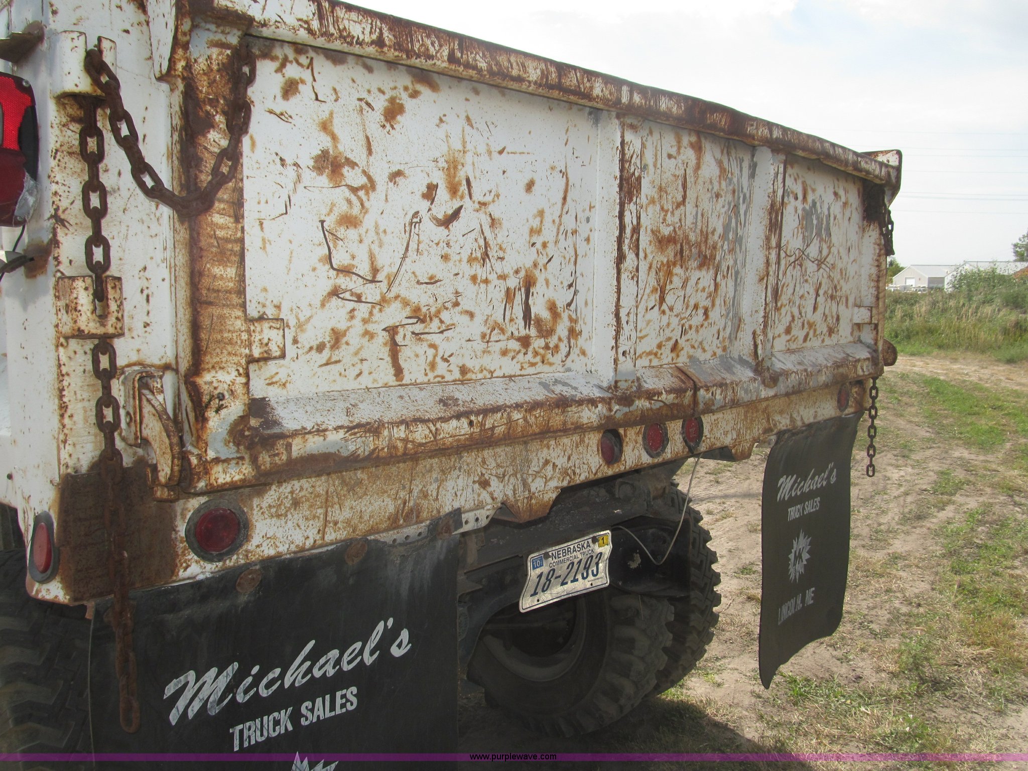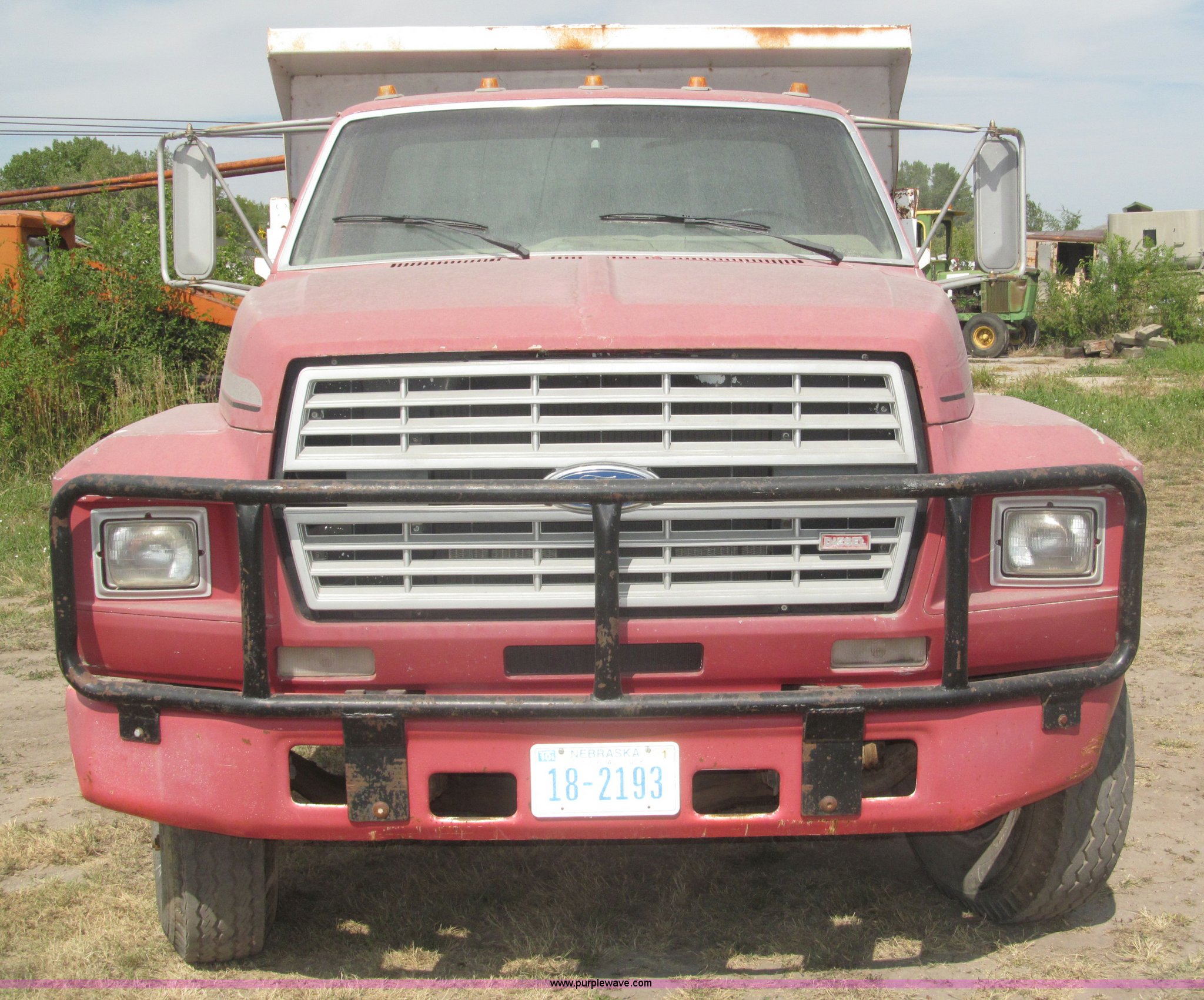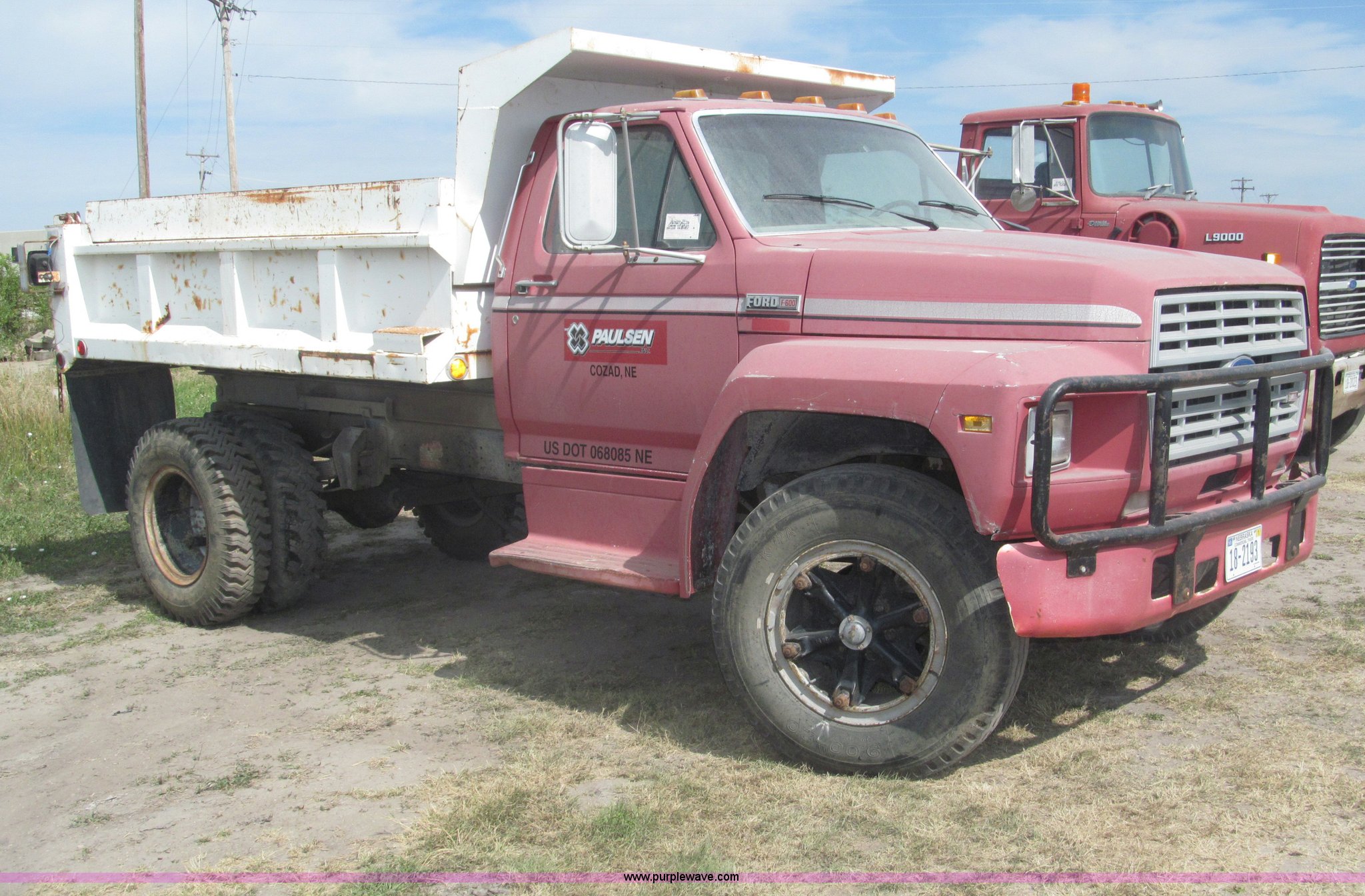Purple Wave is selling a used Construction Dump Truck in Nebraska. This item is a 1986 Ford F600 dump truck with the following: 125,033 miles on odometer, 8.2L V8 diesel engine, Automatic transmission, Heat, Manual windows, seat, and mirrors, Vinyl interior, Backup alarm, 10' dump box, 5 cu. yd. capacity, PTO, Clearance lights, 50 gallon fuel tank, Rockwell F rear axle, 3.29 gear ratio, Serial 106BNX41, 207" wheelbase, 9.00-20 tires, EIN 2621