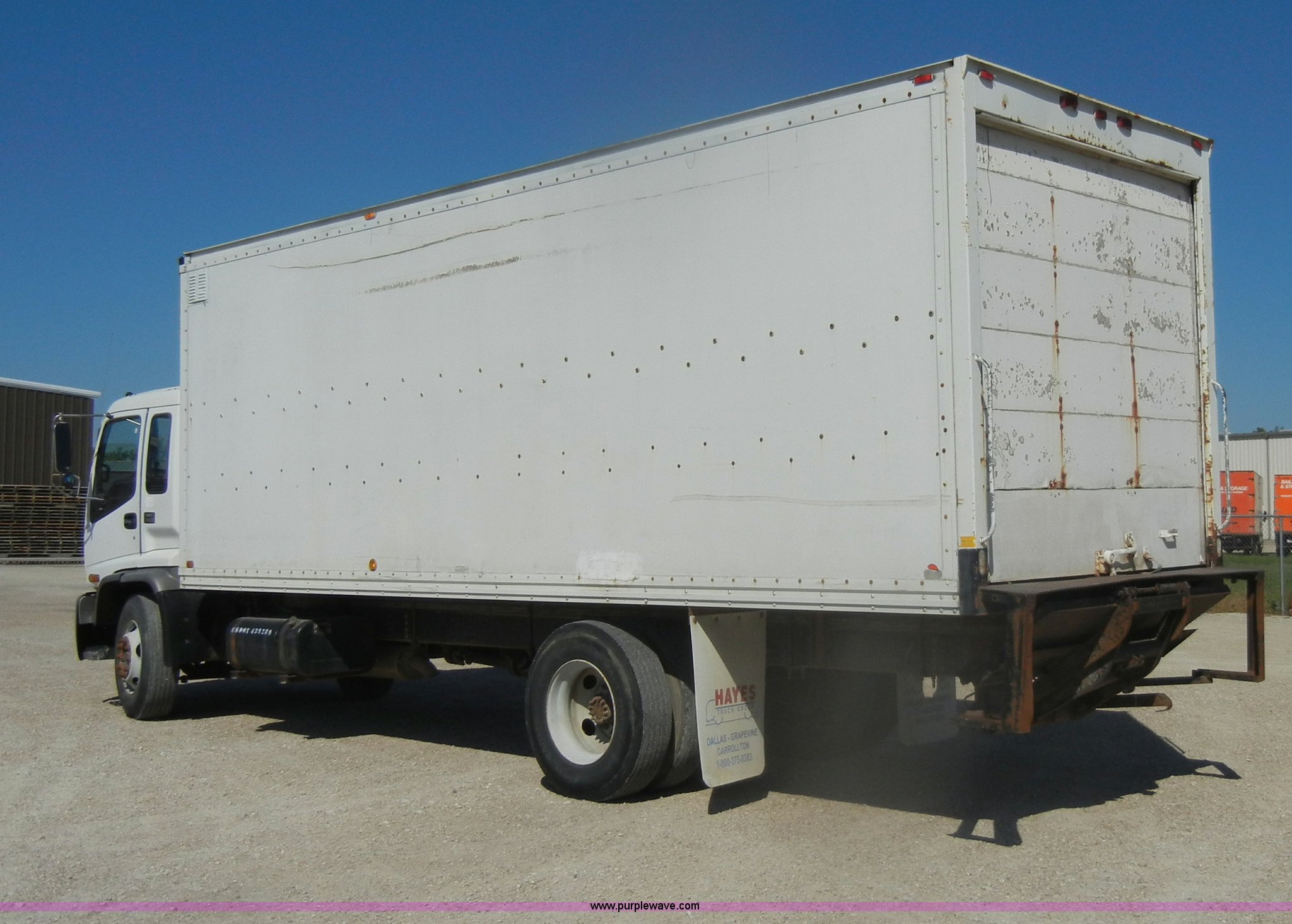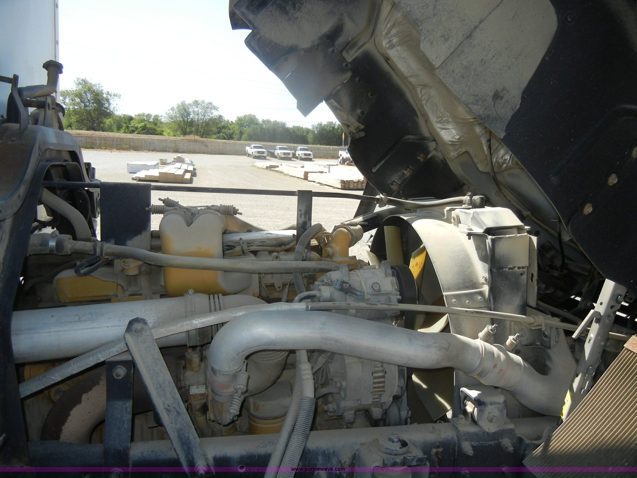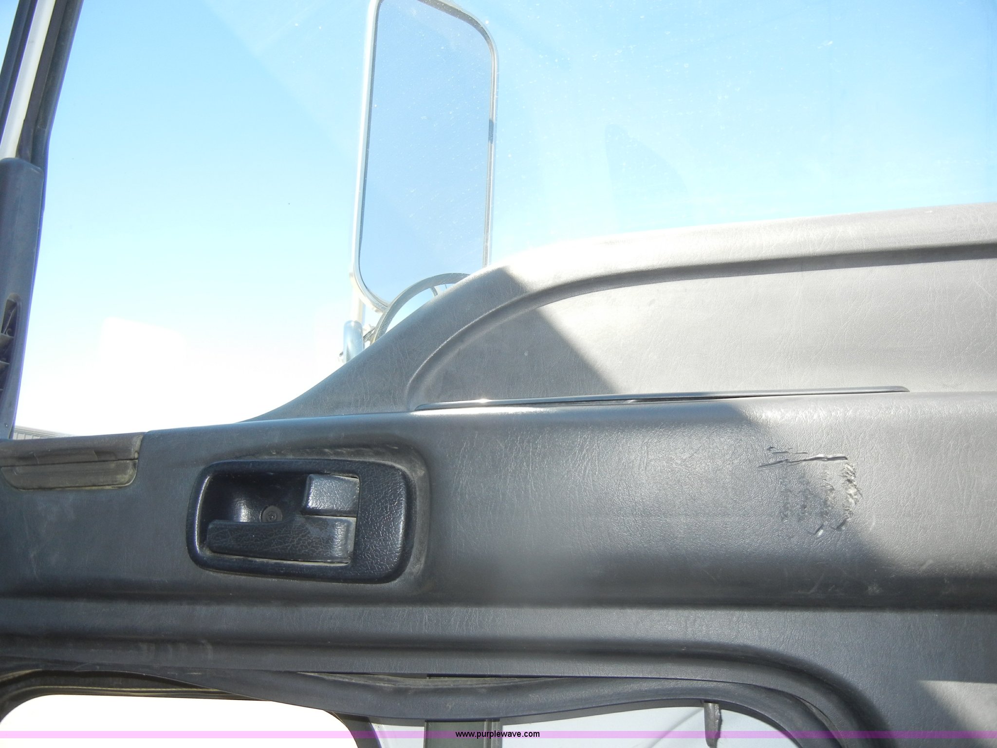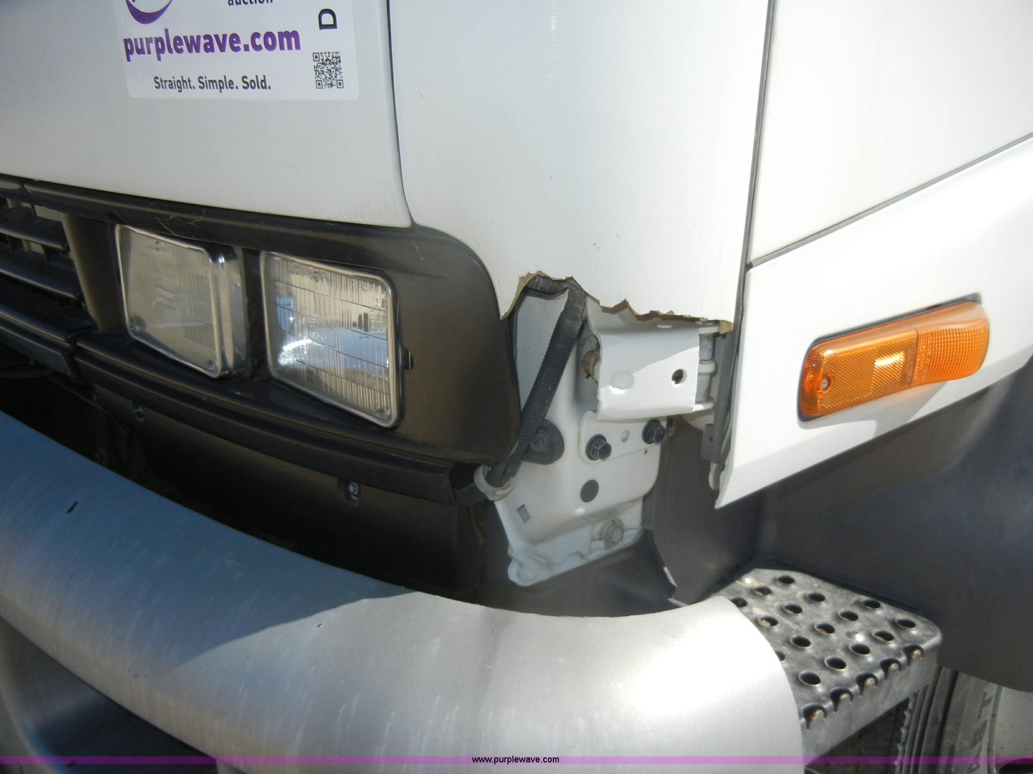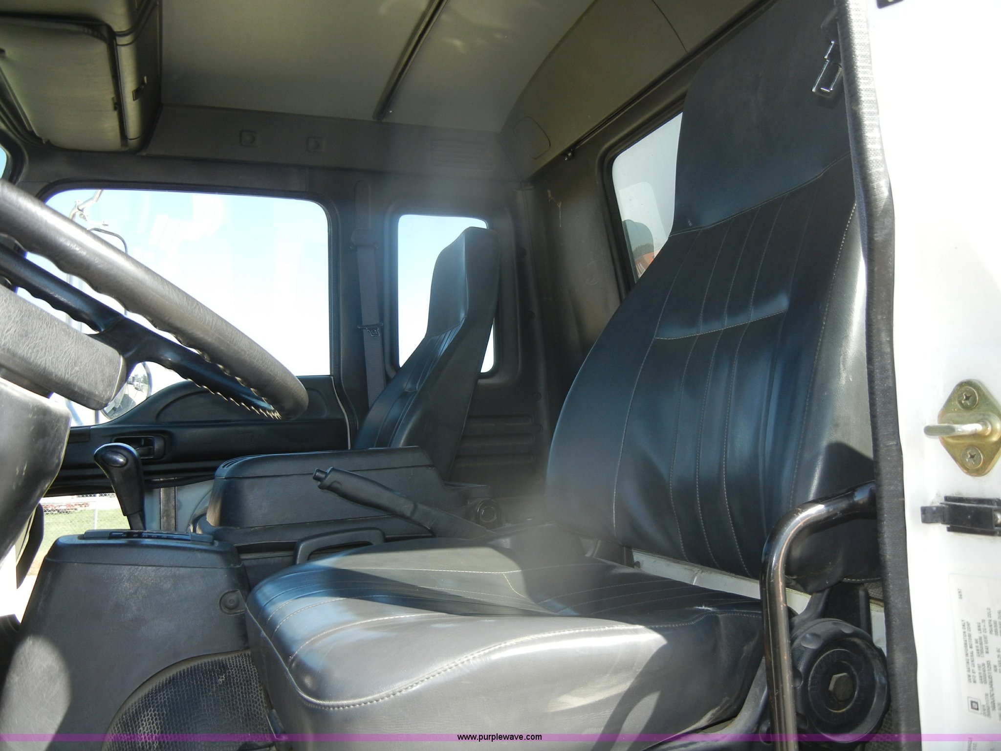 Purple Wave is selling a used Box Truck in Kansas. This item is a 1997 GMC T6500 box truck with the following: 114,946 miles on odometer, Caterpillar 3116 6.6L six cylinder diesel engine, 275 HP, Automatic transmission, AC and heat, Tilt, AM/FM, Manual windows and locks, Passenger daylight window, Vinyl interior, Brown cargo box, Model 800W2493 1/2, Serial S533787, 292" x 95", Rear roll up door, 2,000 lb lift, Wood flooring, Interior lights, Single side entry door, Damaged,, Dual 50 gallon fuel tanks, Spring suspension, Hydraulic brakes, 11R22.5 tires, GVWR 25,950 lbs, FAWR 10,000 lbs, RAWR 17,850 lbs, Passenger side mirror cracked, Interior/exterior cosmetic damage, Damage to hood